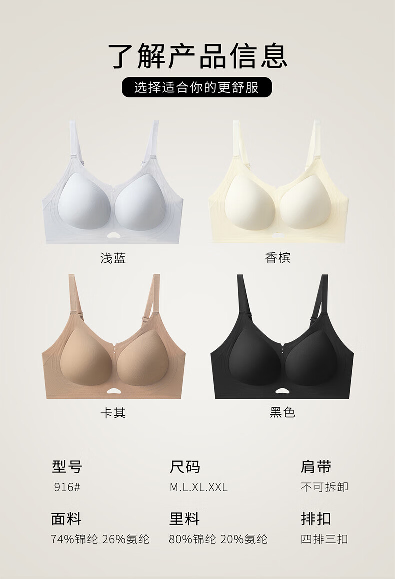 甜蜜邂逅2件装文胸女美背无痕运动内衣前扣式胸罩调整型无钢圈聚拢收副乳 2件装(黑+肤) 3XL=90BCD(140-160斤)