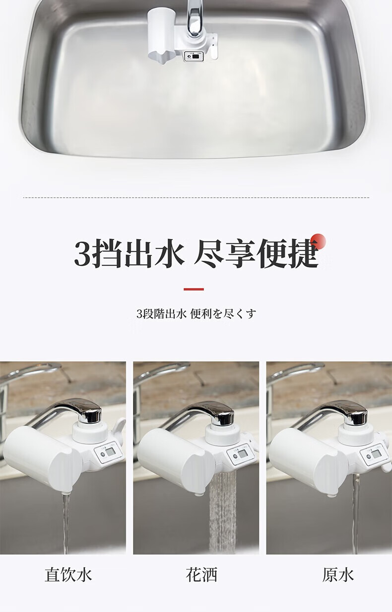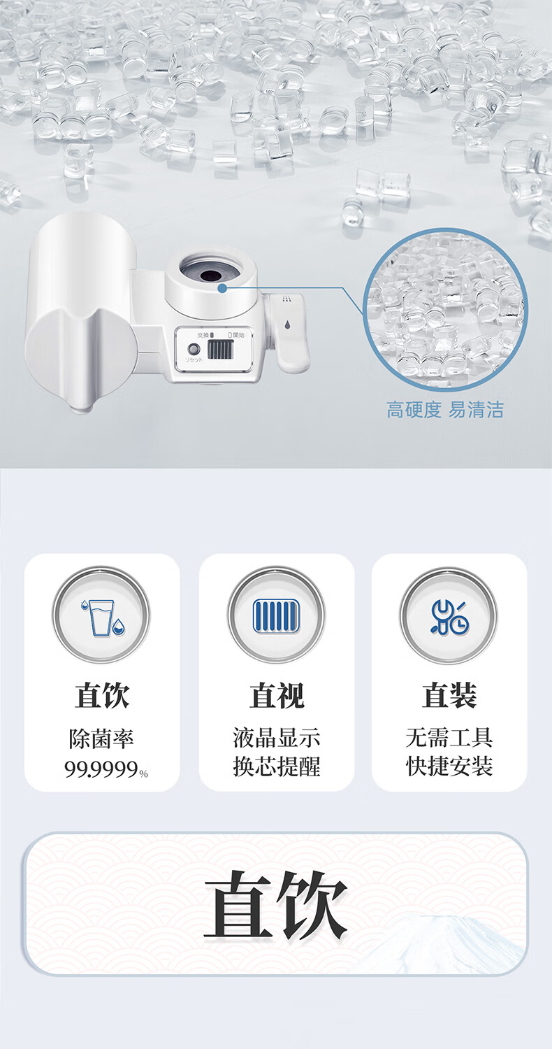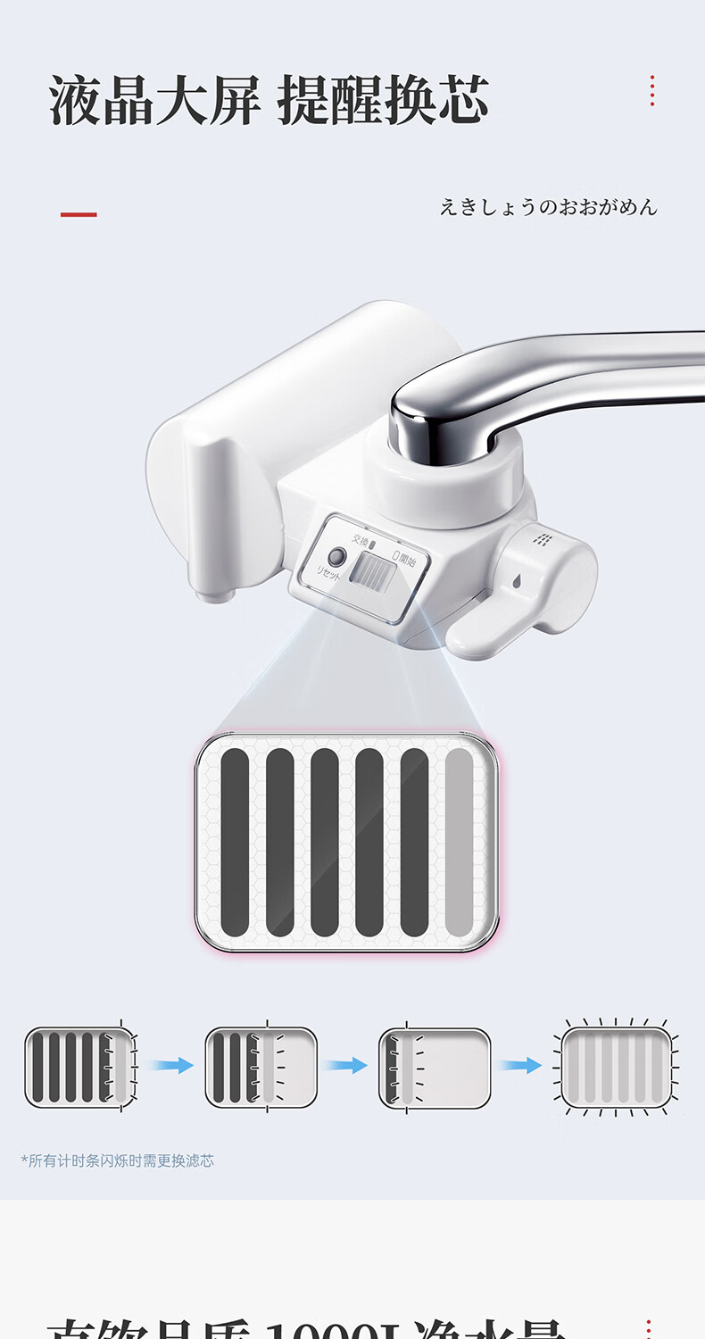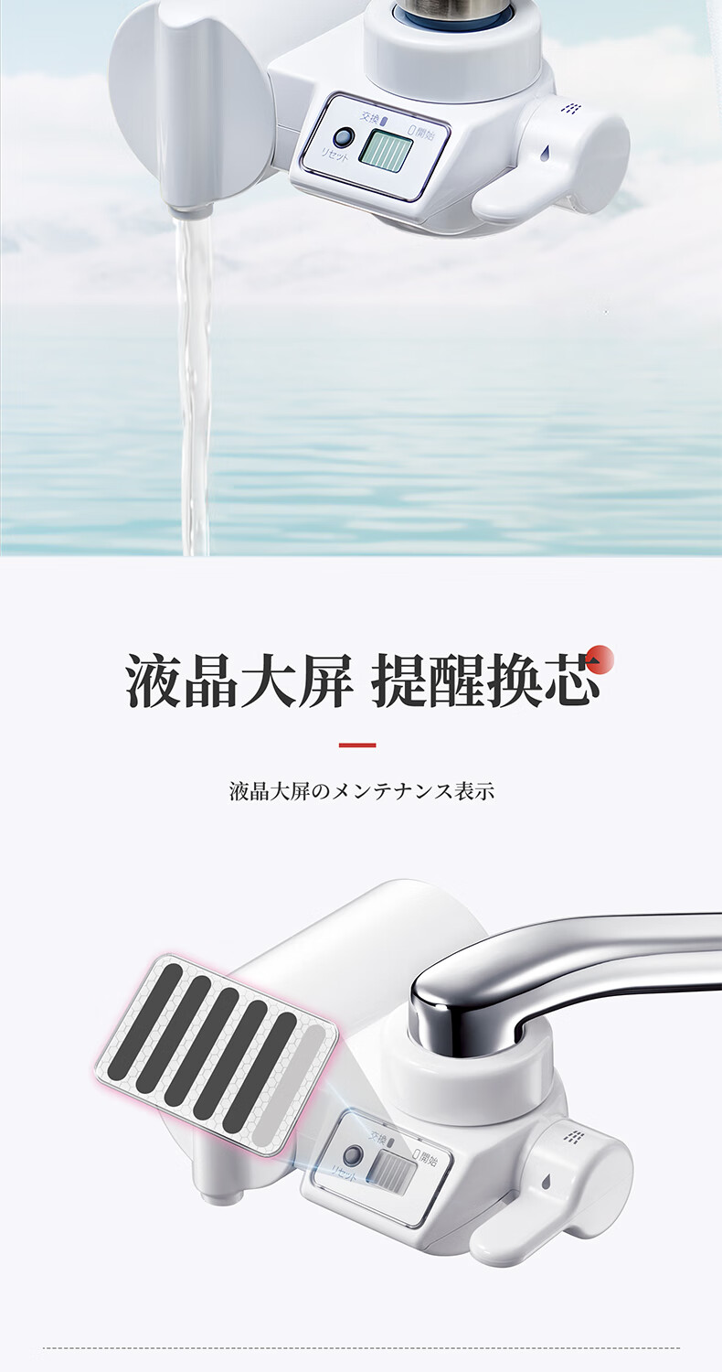 可菱水 水龙头净水器 家用自来水过滤器直饮滤水器智能液晶换芯提醒超滤机前置过滤器CB073 日本原装进口 【日本制】五芯装-约用两年半