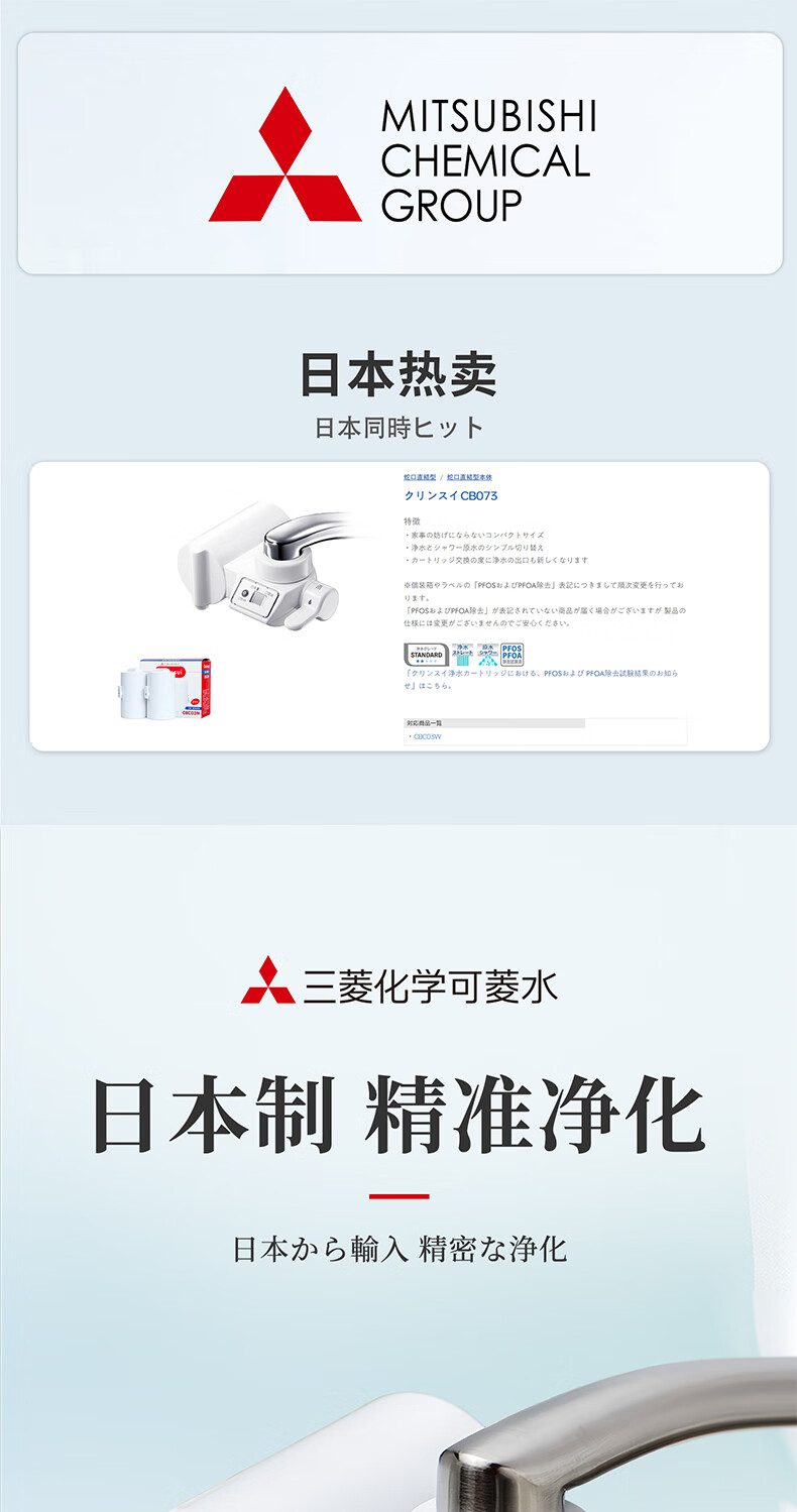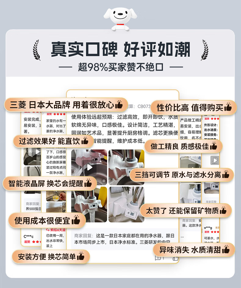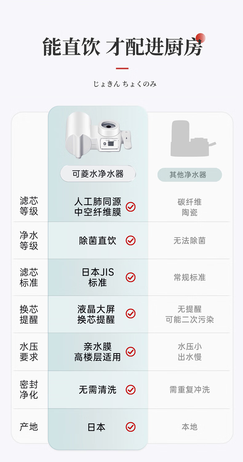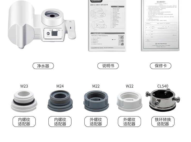 可菱水 水龙头净水器 家用自来水过滤器直饮滤水器智能液晶换芯提醒超滤机前置过滤器CB073 日本原装进口 【日本制】五芯装-约用两年半