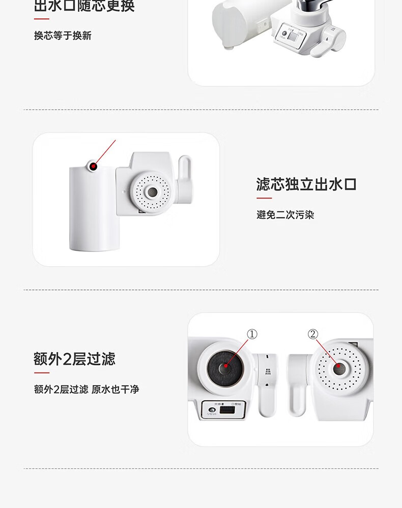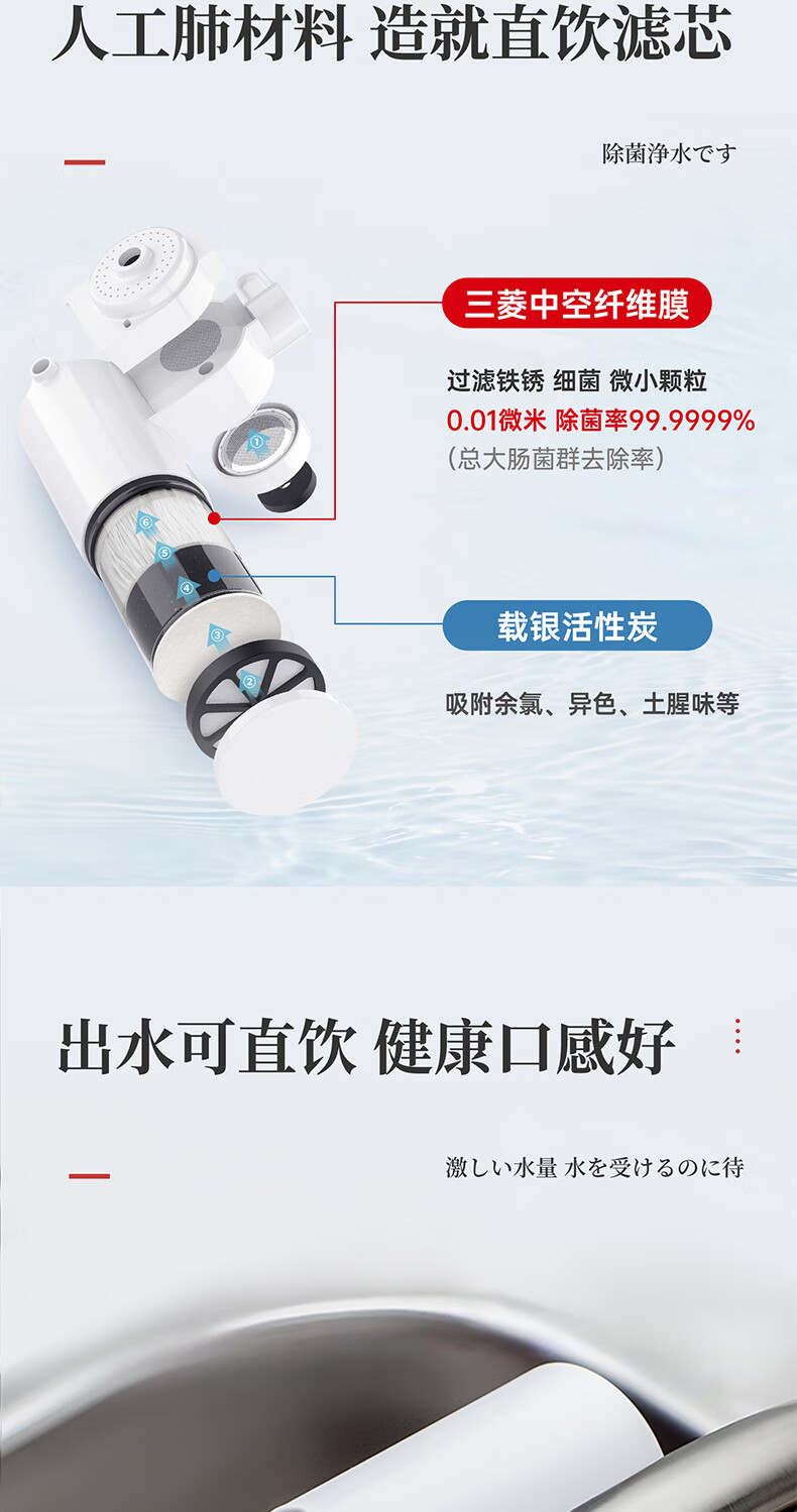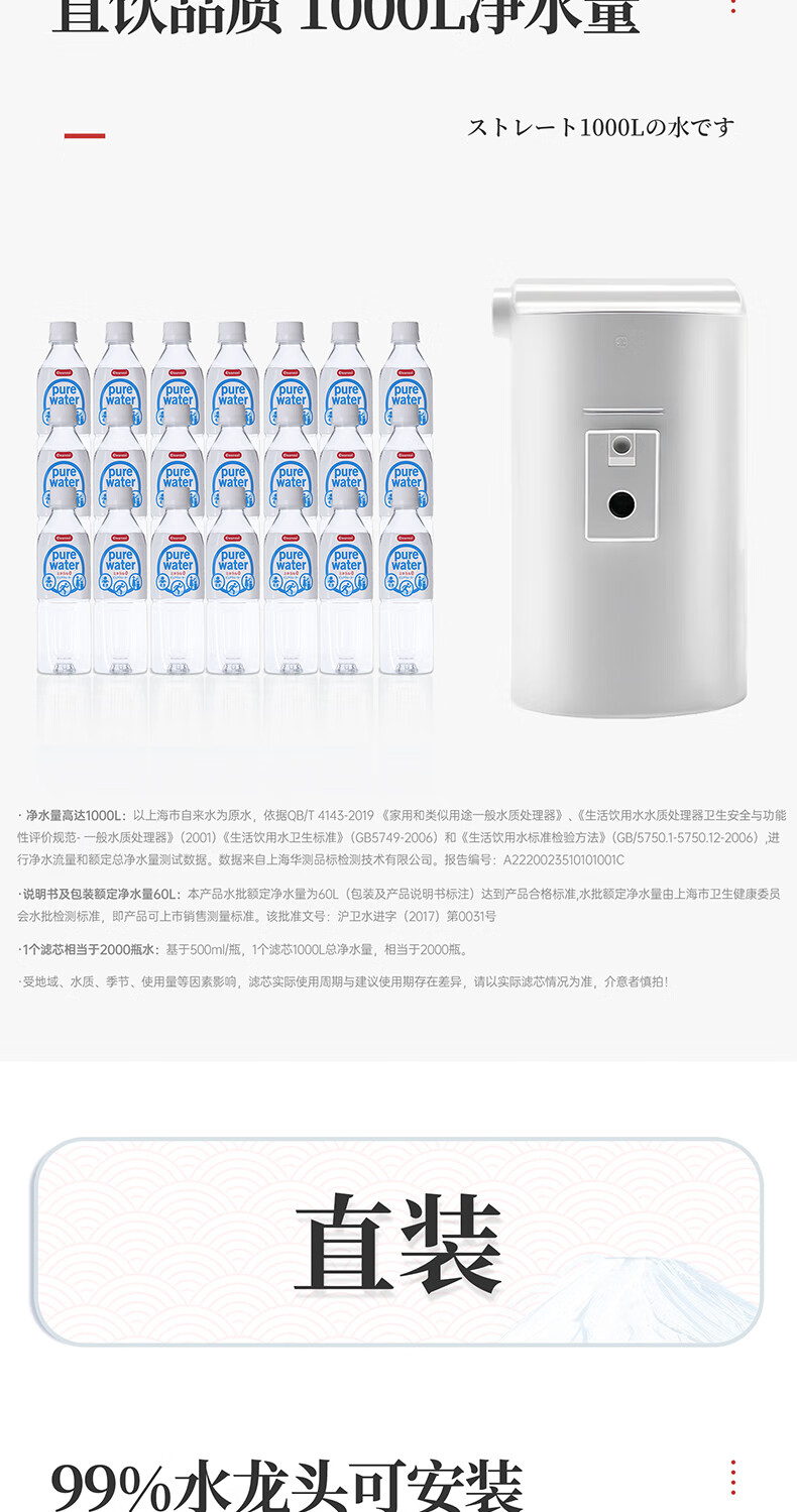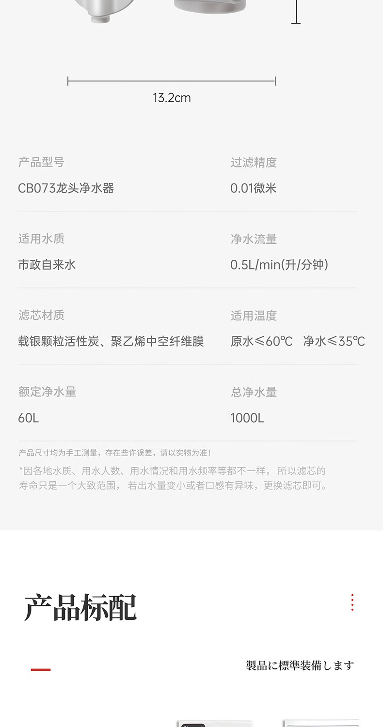 可菱水 水龙头净水器 家用自来水过滤器直饮滤水器智能液晶换芯提醒超滤机前置过滤器CB073 日本原装进口 【日本制】五芯装-约用两年半