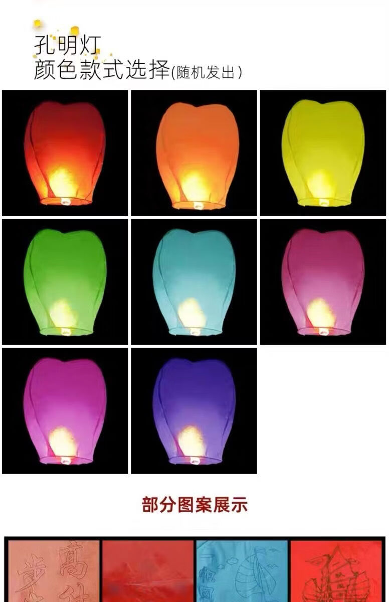 小红书同款阻燃款2026AA 孔明灯-经典款混装-颜色图案随机 5个装