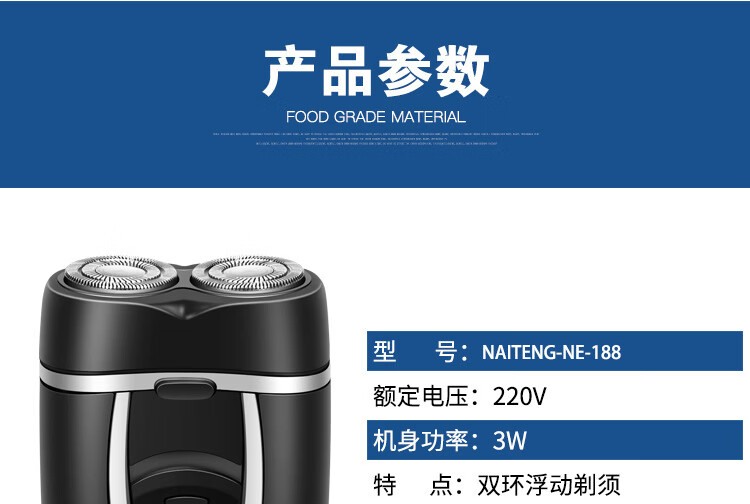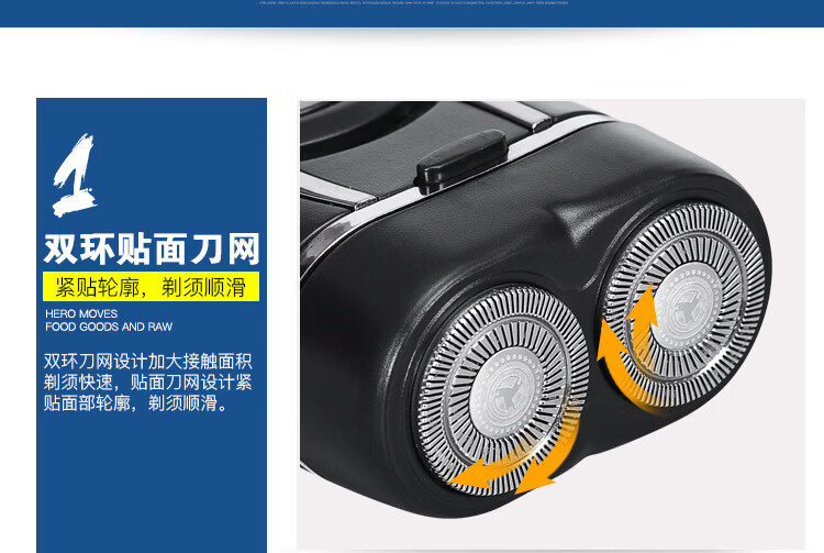 【精选】直销新款男士直充双头剃须刀黑色大气独立浮动刮胡刀毛刀 黑色双头188