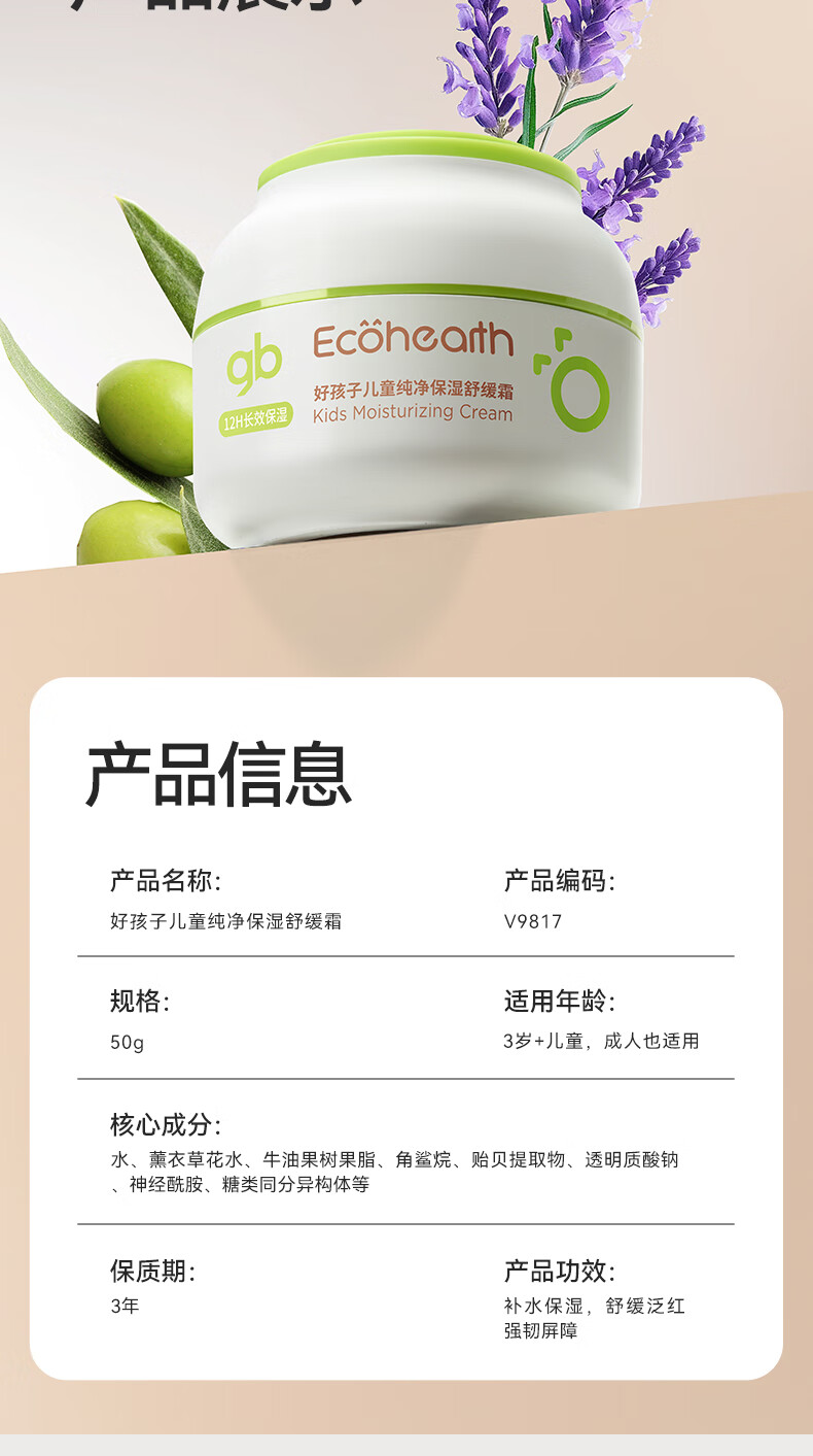 好孩子益森元系列儿童补水保湿修复舒缓面霜 洗发露300ml