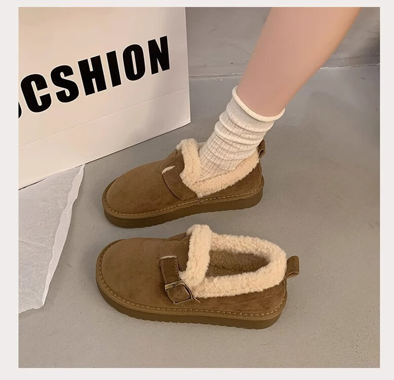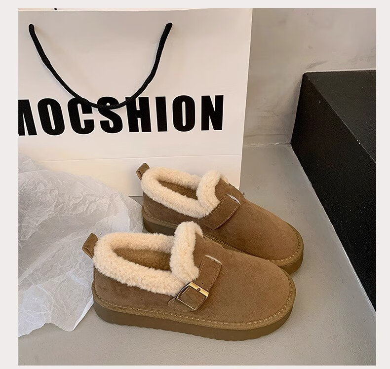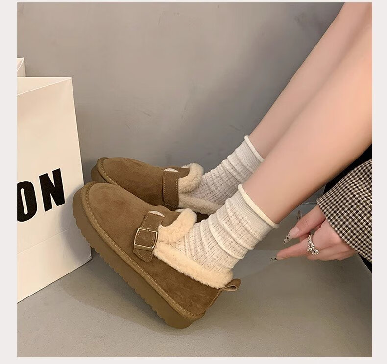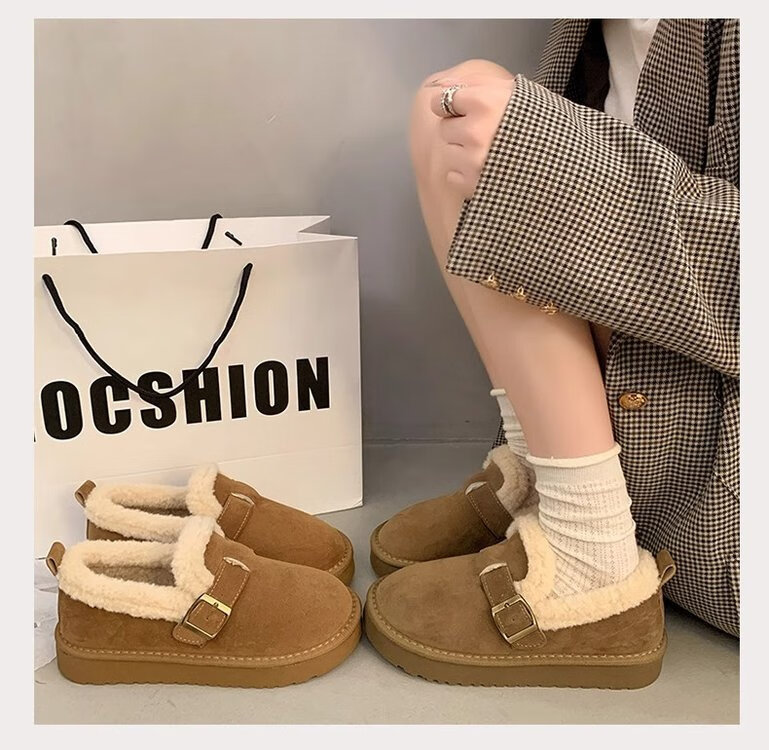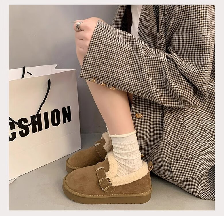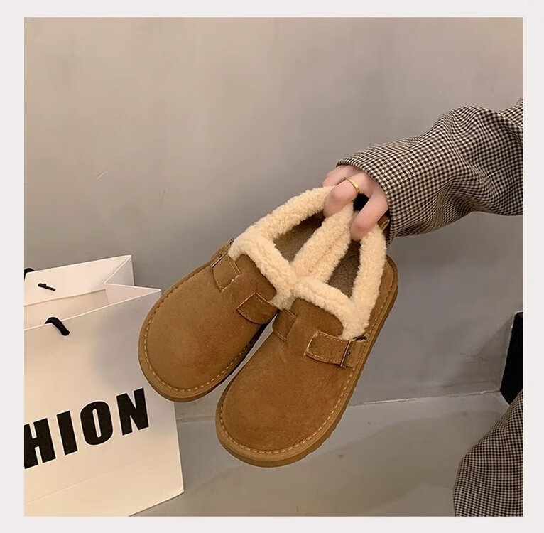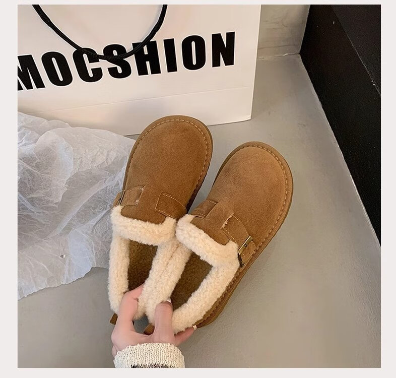 千梦彤加绒勃肯鞋女2025秋冬新款网红超火平底一脚蹬乐福鞋毛毛保暖棉鞋 棕色 升级款 38
