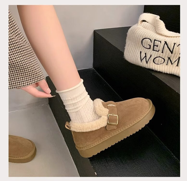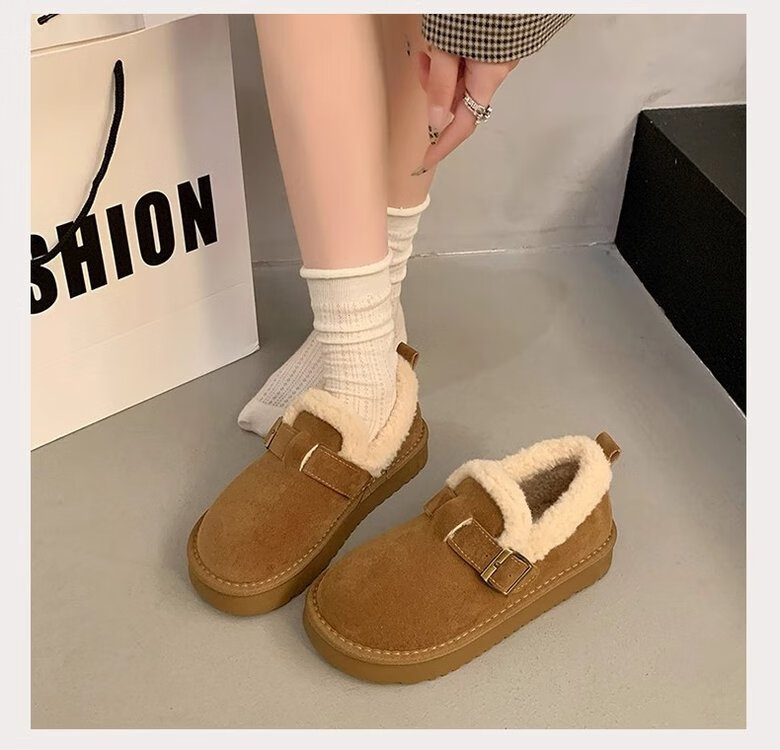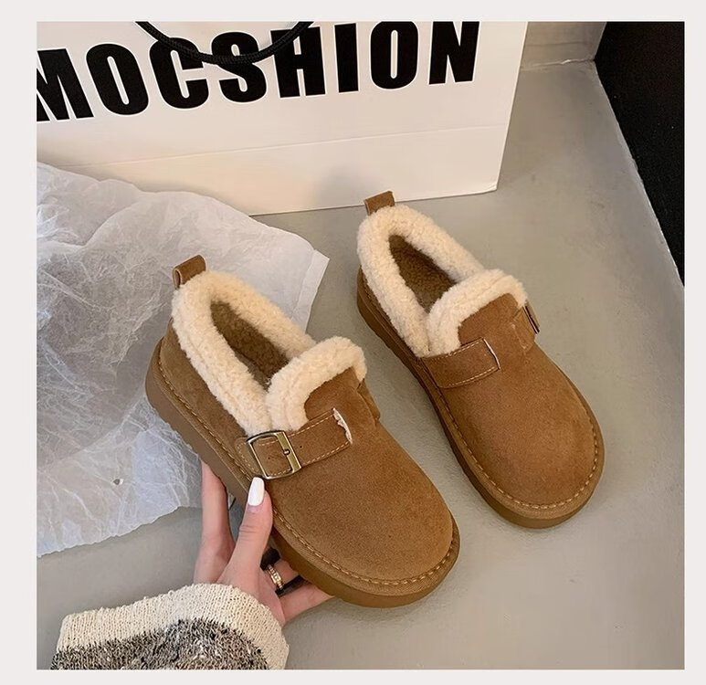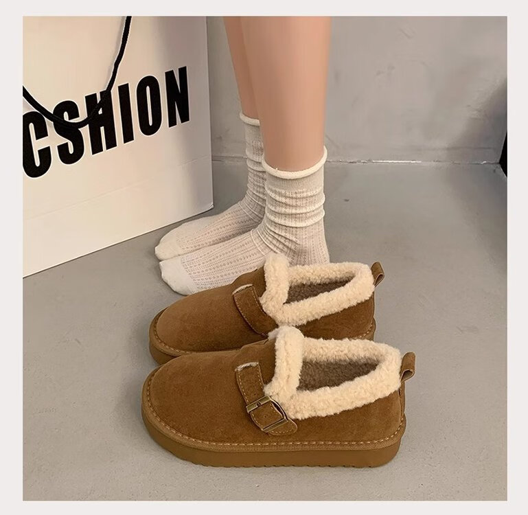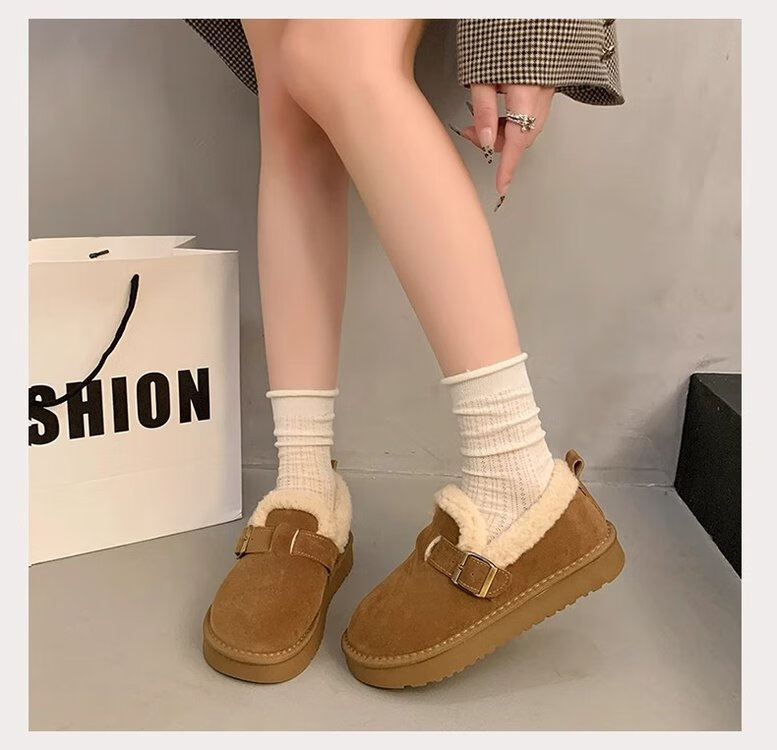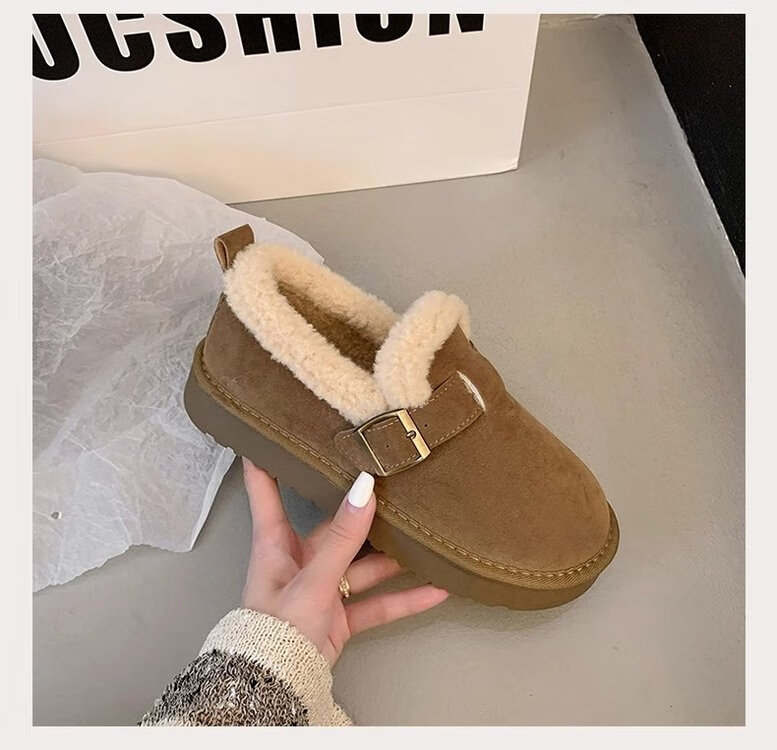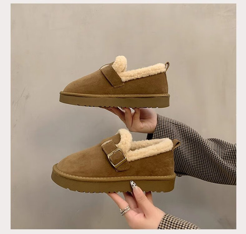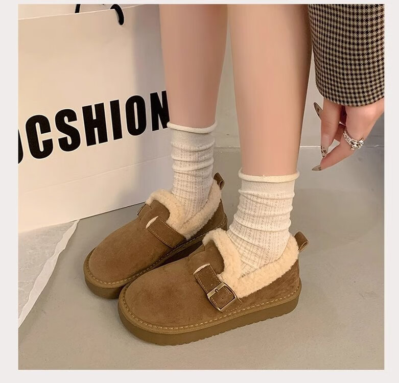 千梦彤加绒勃肯鞋女2025秋冬新款网红超火平底一脚蹬乐福鞋毛毛保暖棉鞋 棕色 升级款 38
