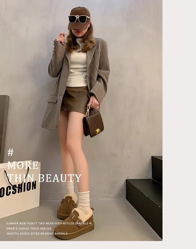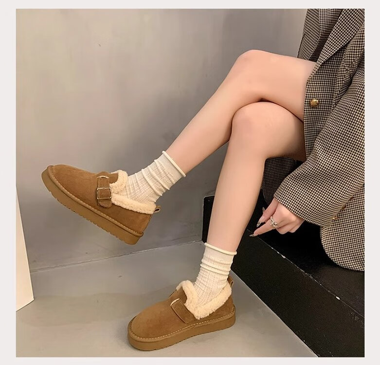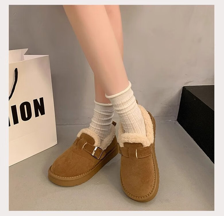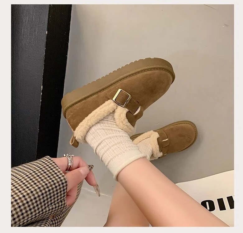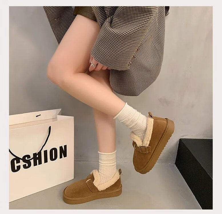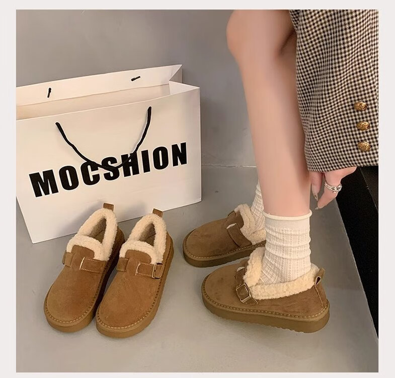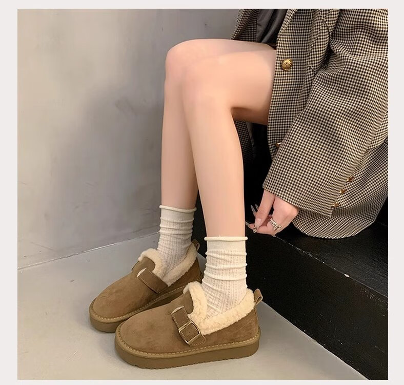 千梦彤加绒勃肯鞋女2025秋冬新款网红超火平底一脚蹬乐福鞋毛毛保暖棉鞋 棕色 升级款 38