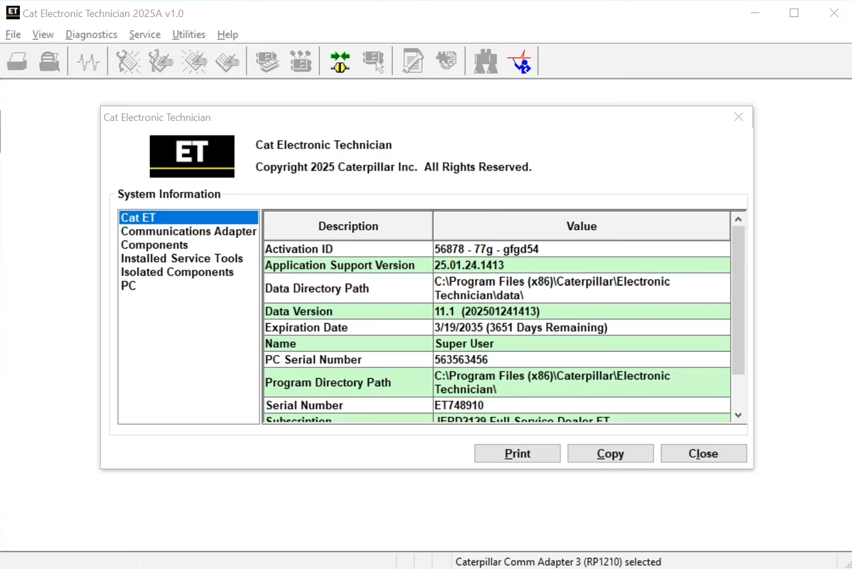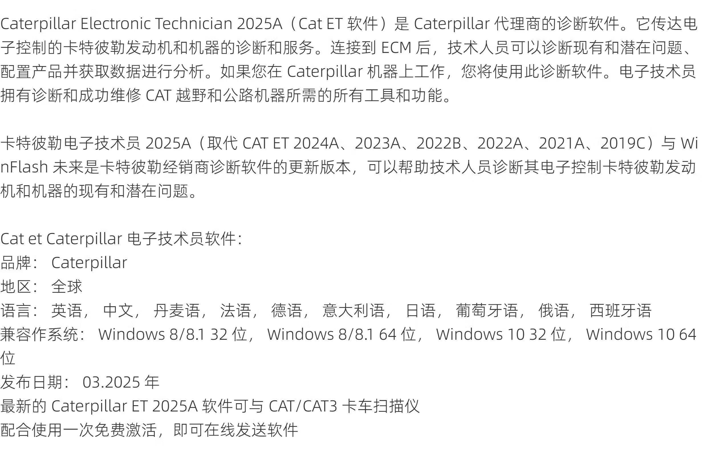 卡特 ET 2025A CAT ET 2025A 卡特挖掘机发动机电子诊断软件 卡特2025A