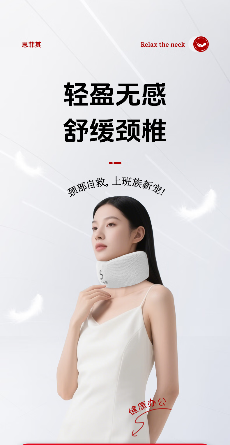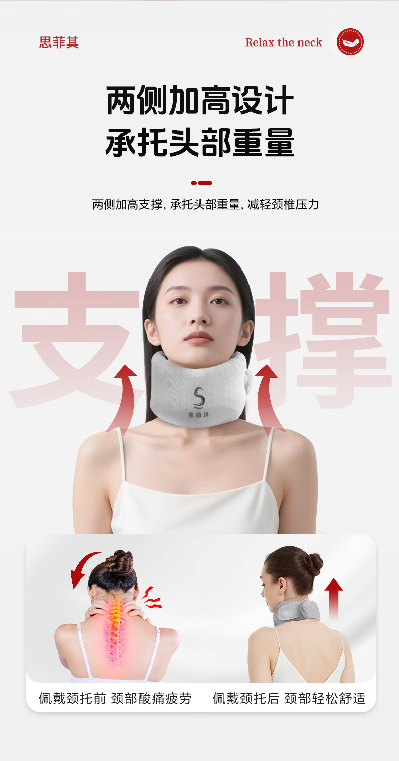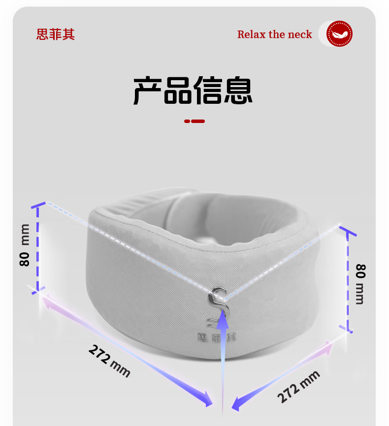 思菲其护颈枕U型枕办公室TPE护颈舒适透气脖套颈托防低头支撑颈部 TPE新款脖套-灰色
