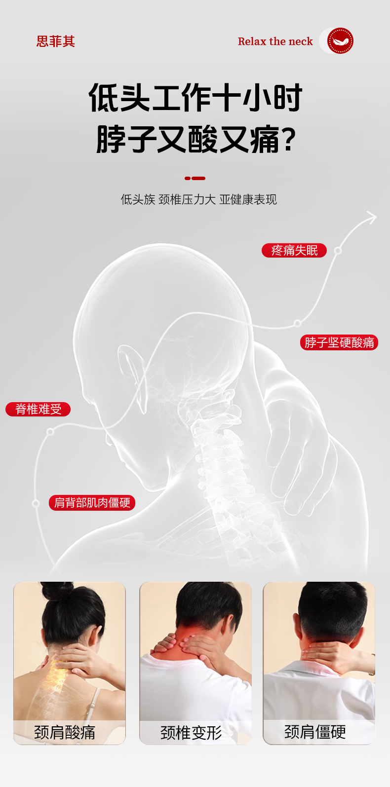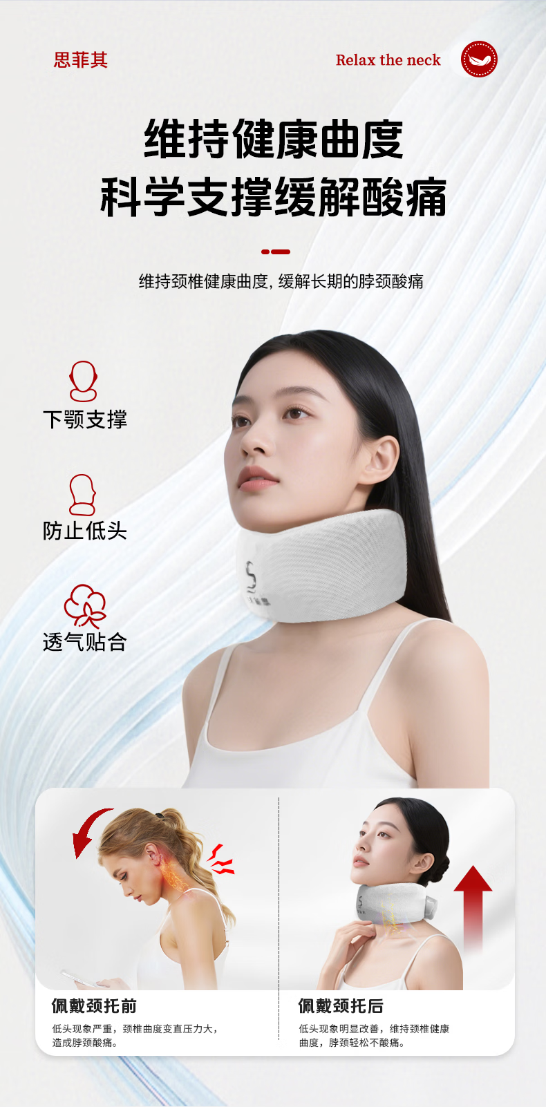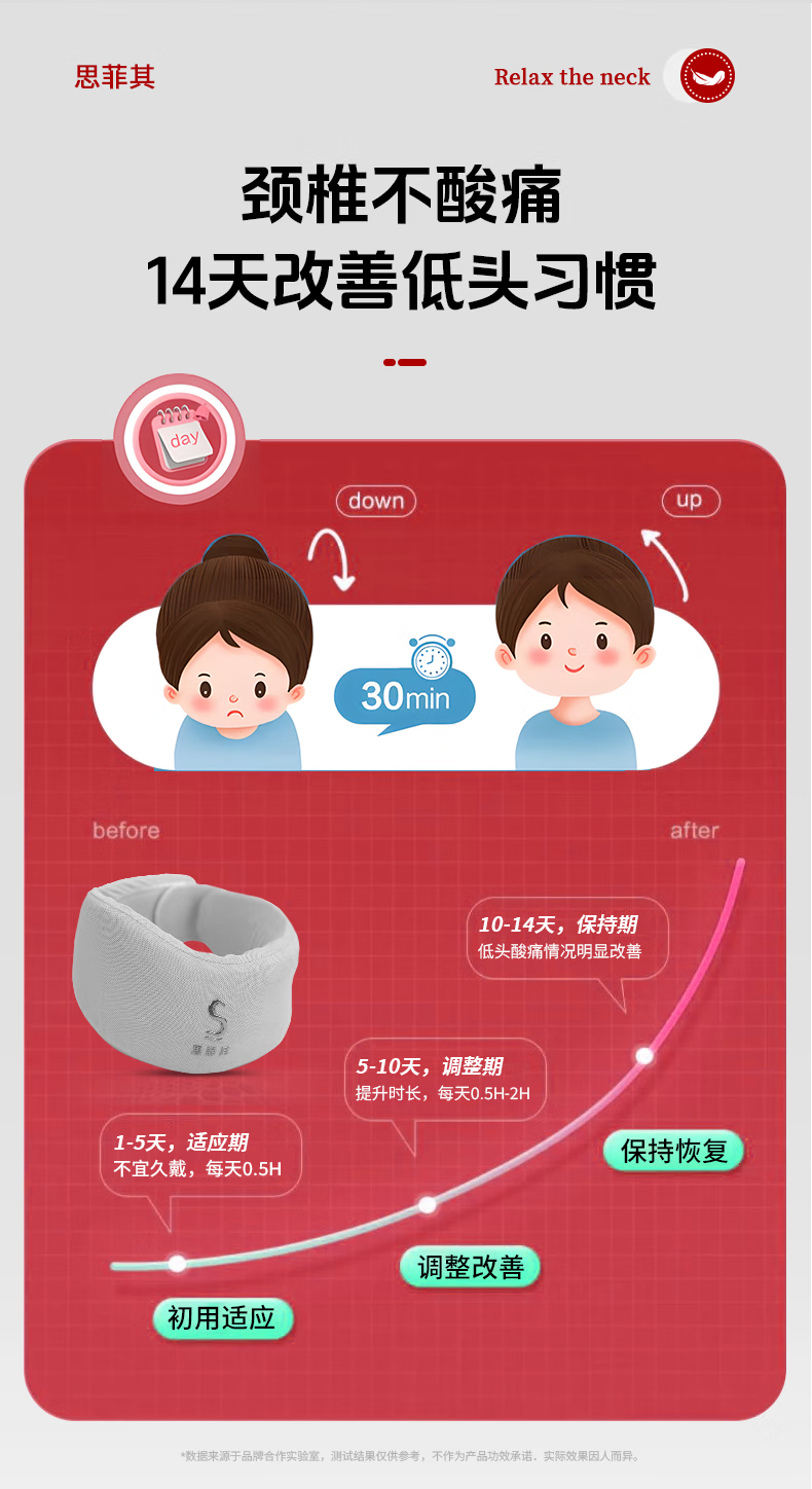 思菲其护颈枕U型枕办公室TPE护颈舒适透气脖套颈托防低头支撑颈部 TPE新款脖套-灰色