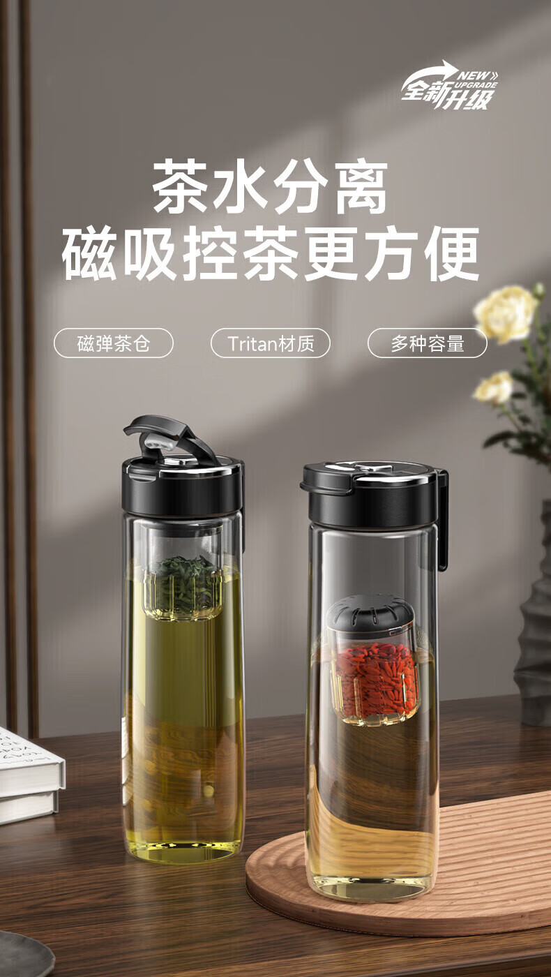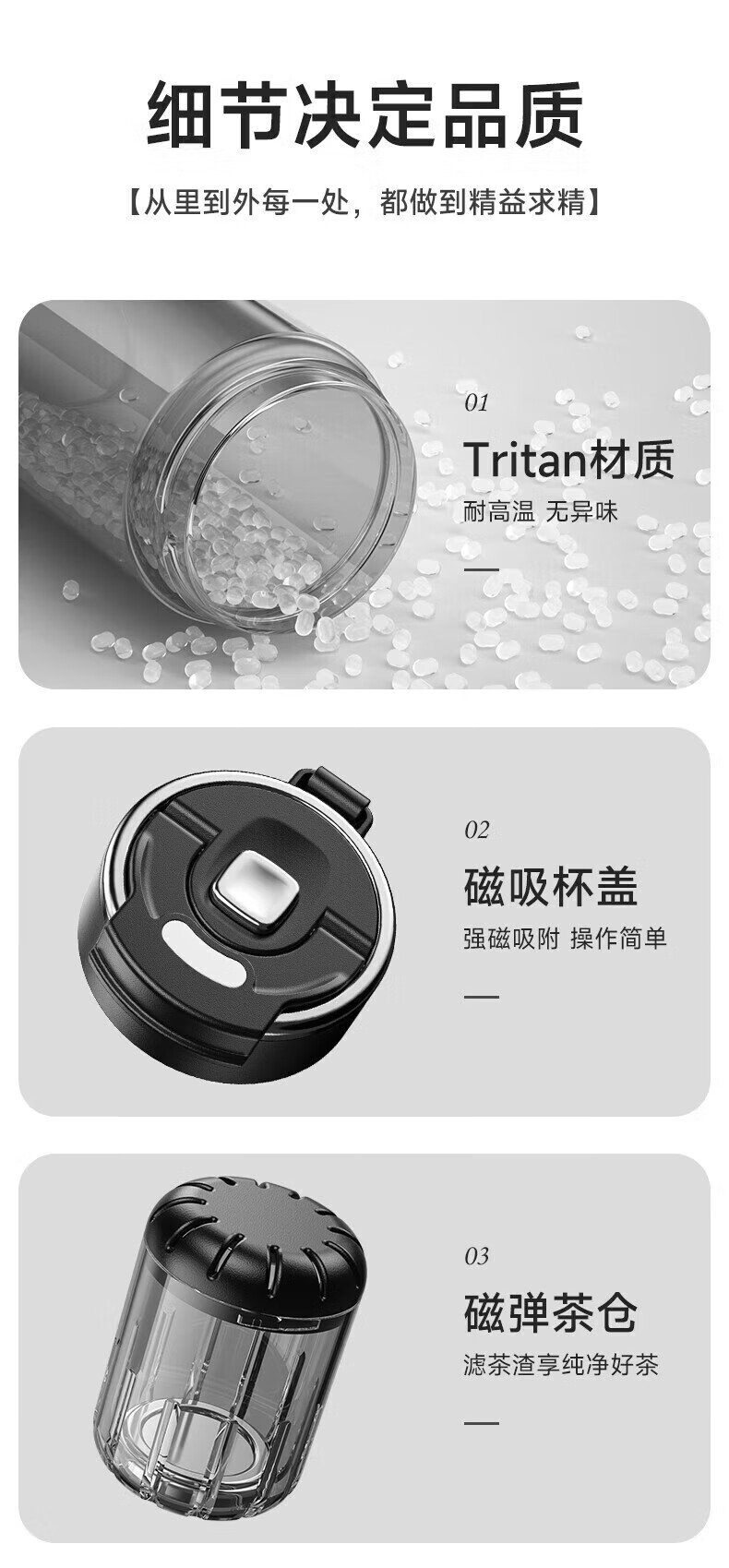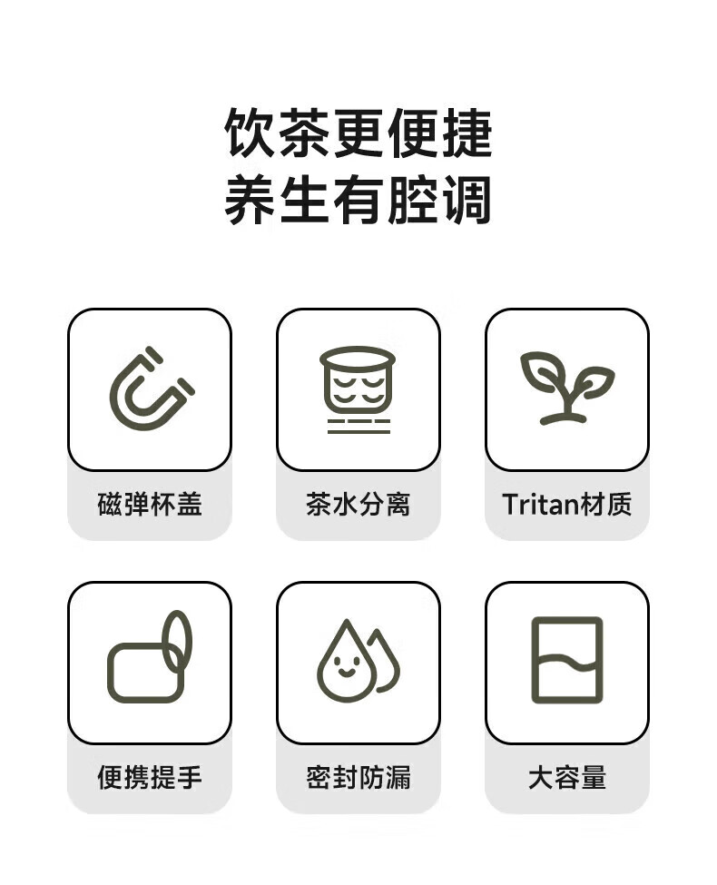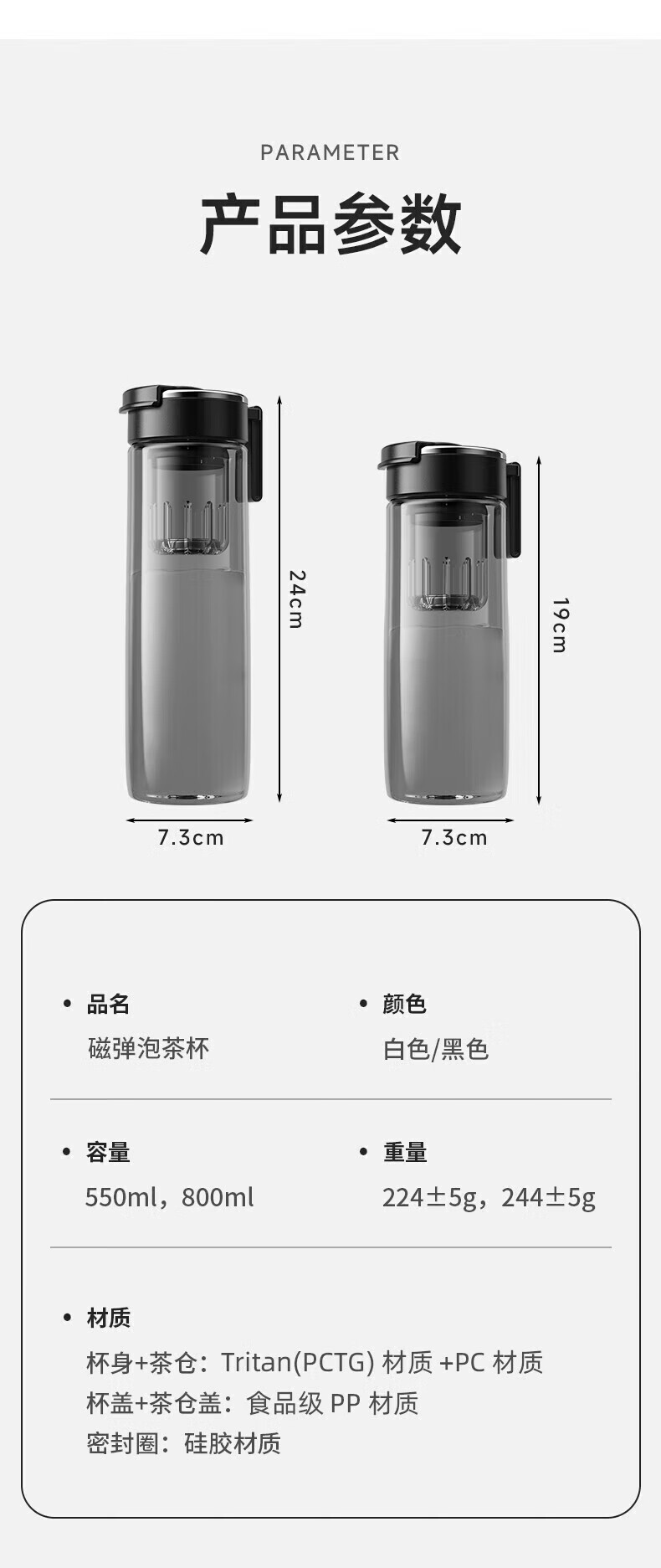 小米生态链同款茶水分离磁弹杯Tritan材质便携带茶隔户外大容量男 800ml 白色 0个
