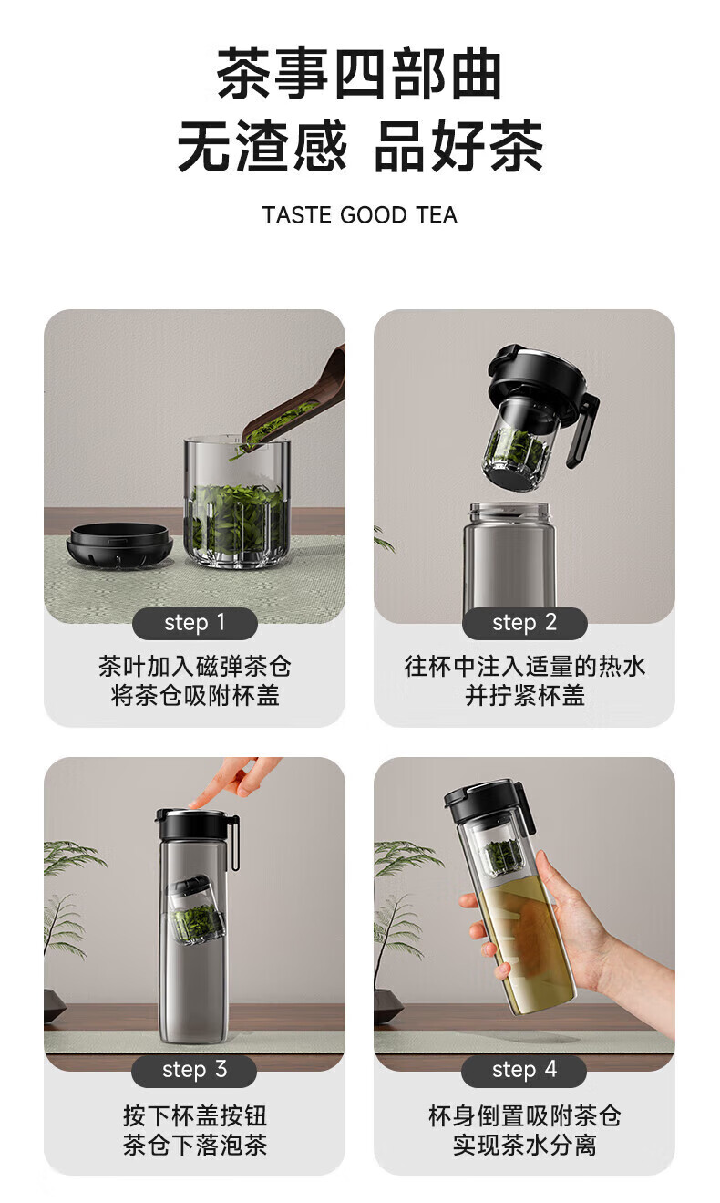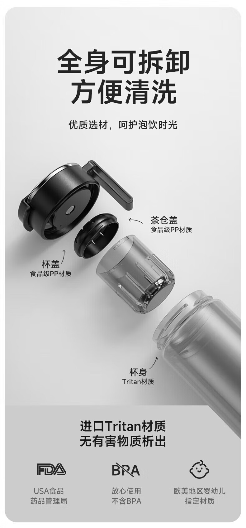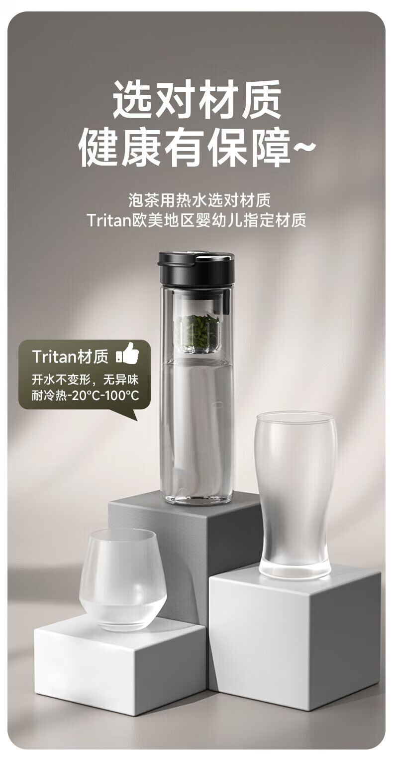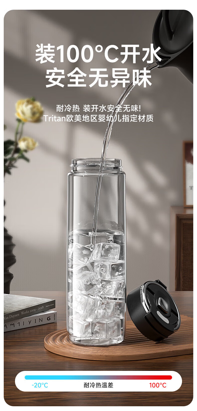 小米生态链同款茶水分离磁弹杯Tritan材质便携带茶隔户外大容量男 800ml 白色 0个