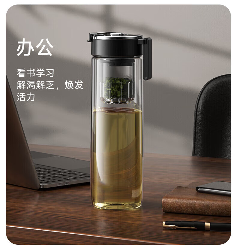 格亚(GEYA)茶水分离保温水杯泡茶杯316不锈钢保温杯便携水杯花茶杯定制刻字 黑色 520ml