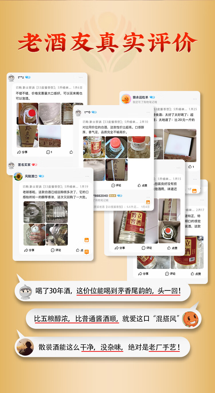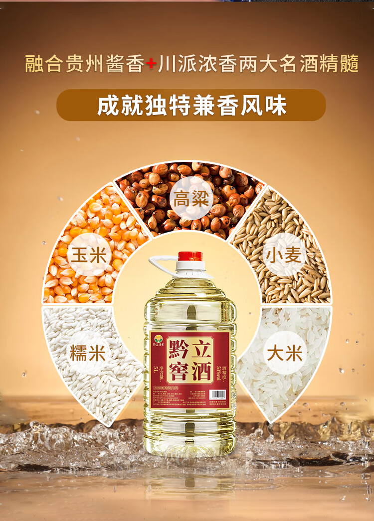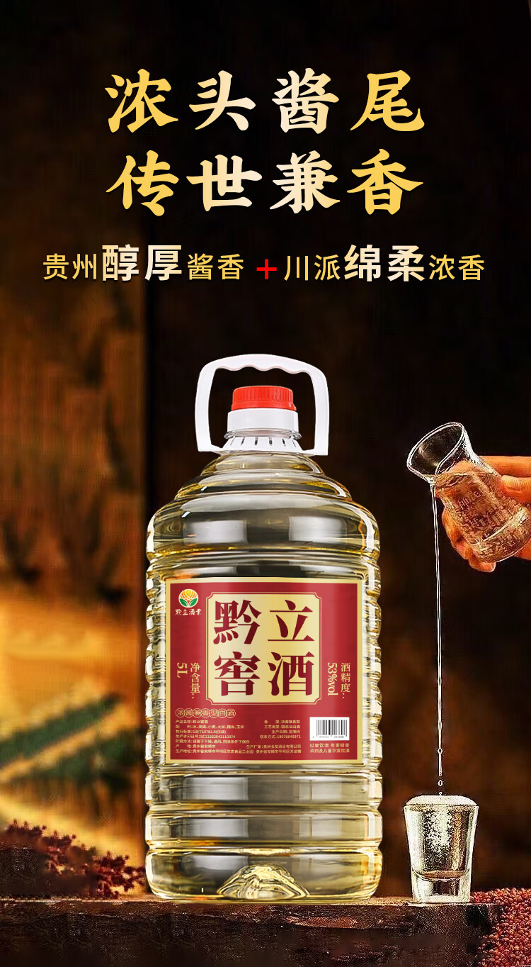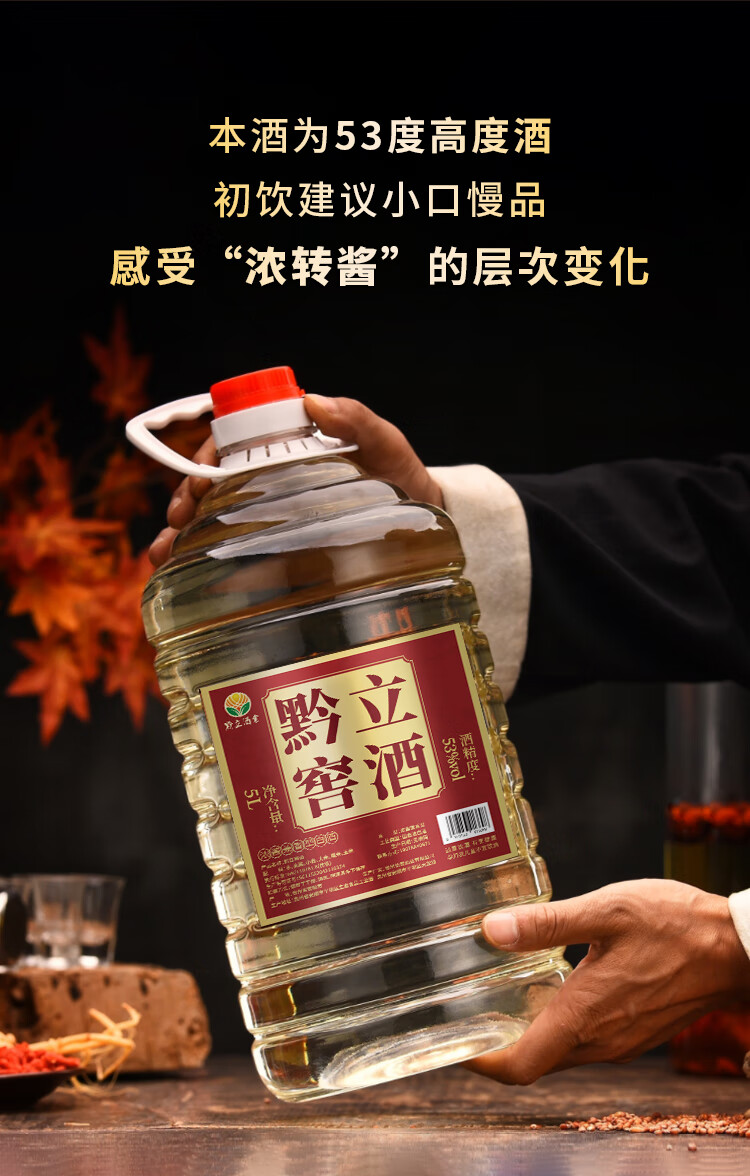 黔立纯粮食53度口粮酒浓酱兼香型固态发酵原浆白酒散装高粱酒桶装10斤 53度 5L 1桶