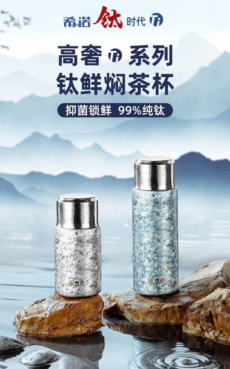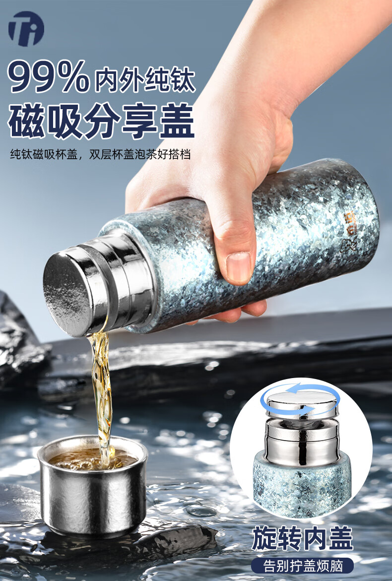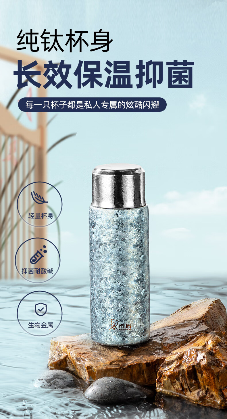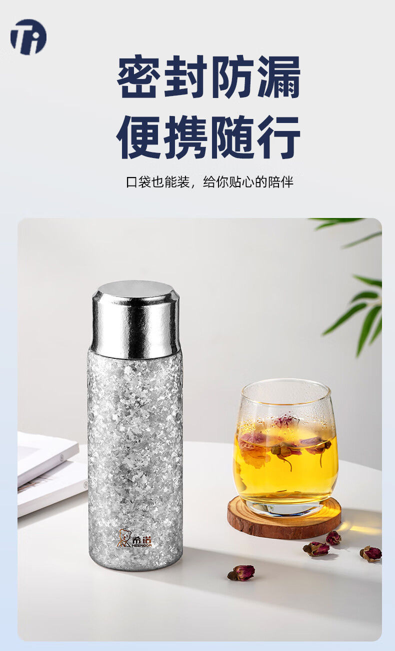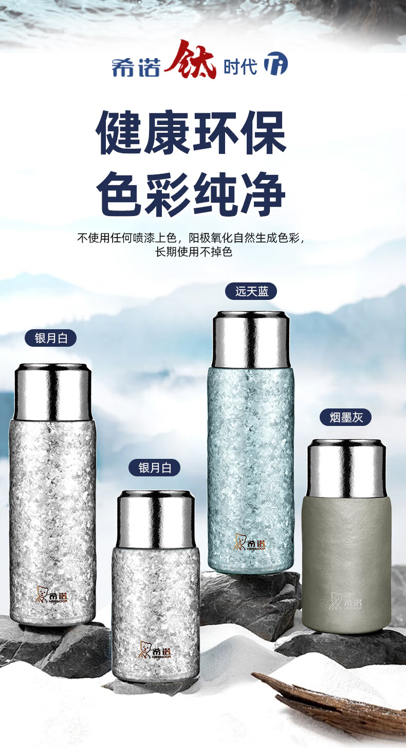 希诺保温杯纯钛内胆大容量茶水分离杯高端水杯养生钛杯男女士杯子 T381银月白290ML