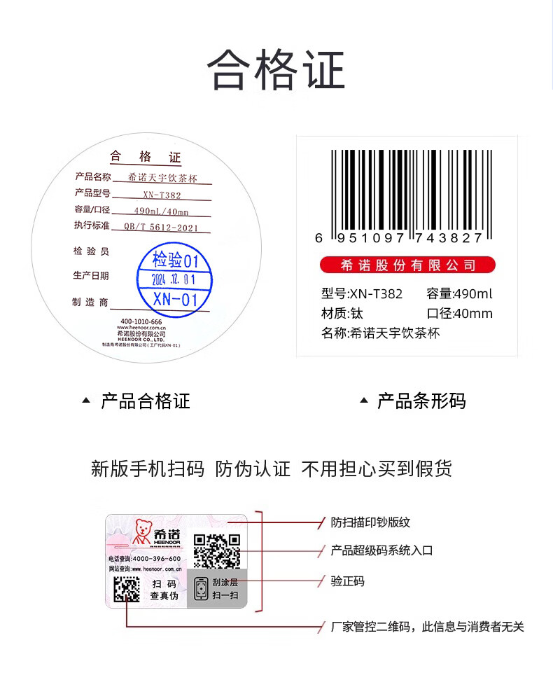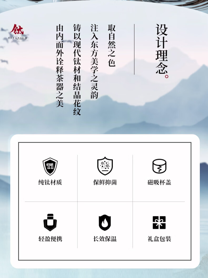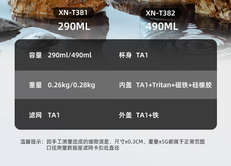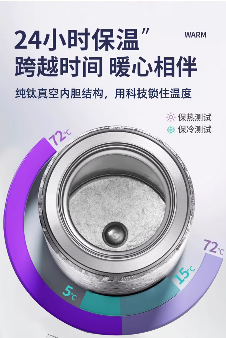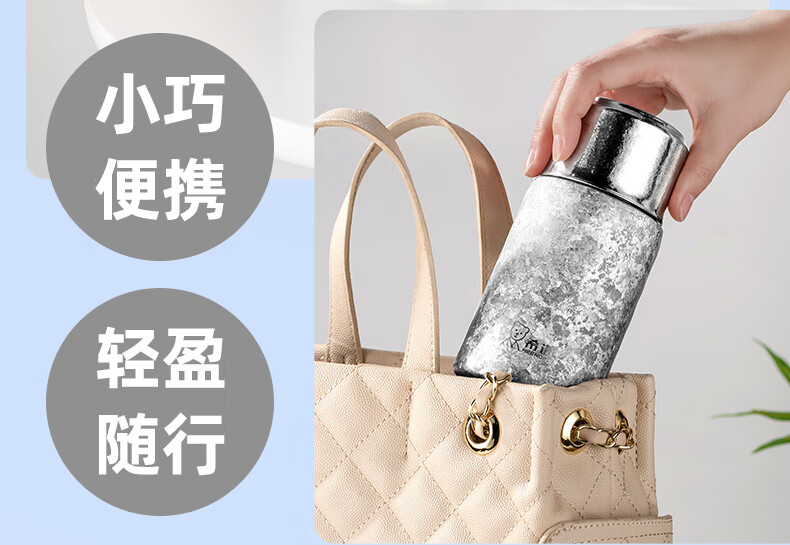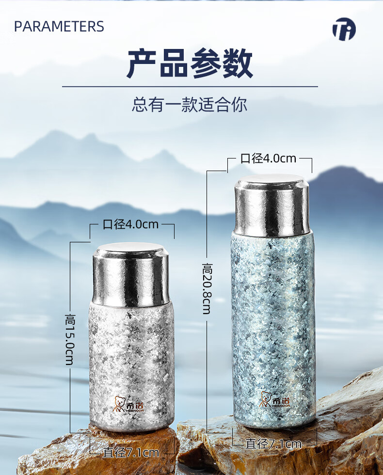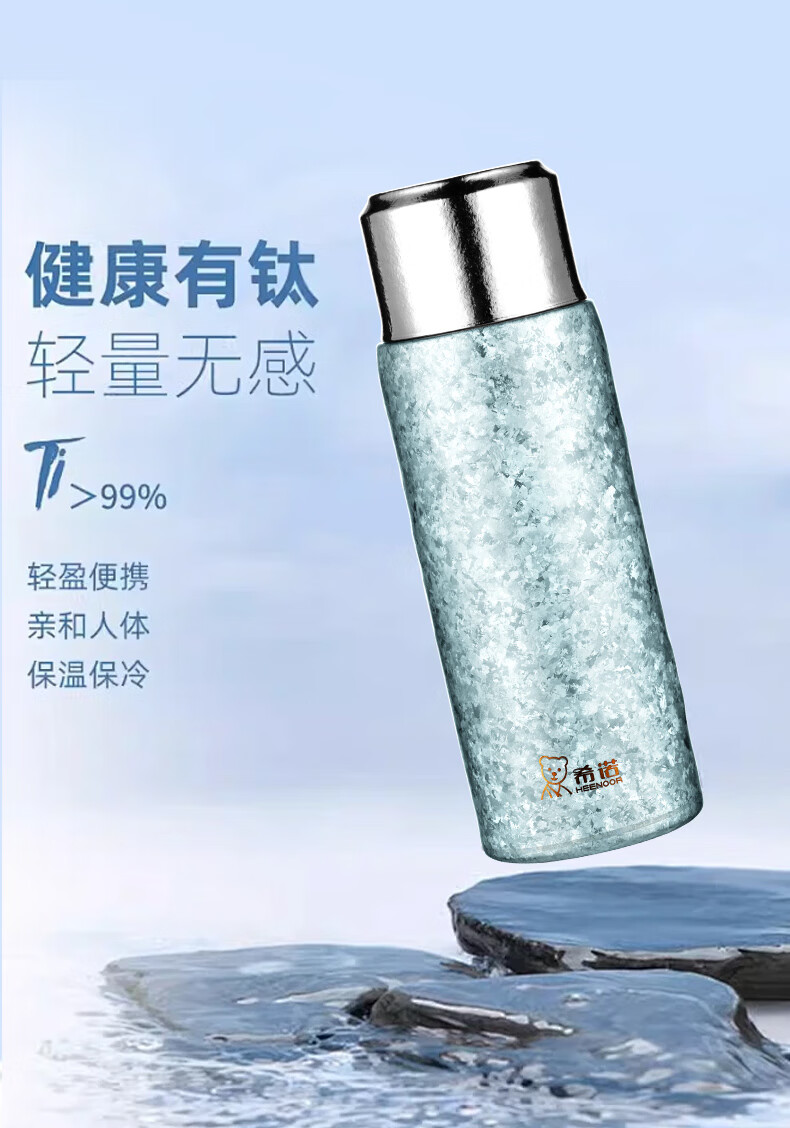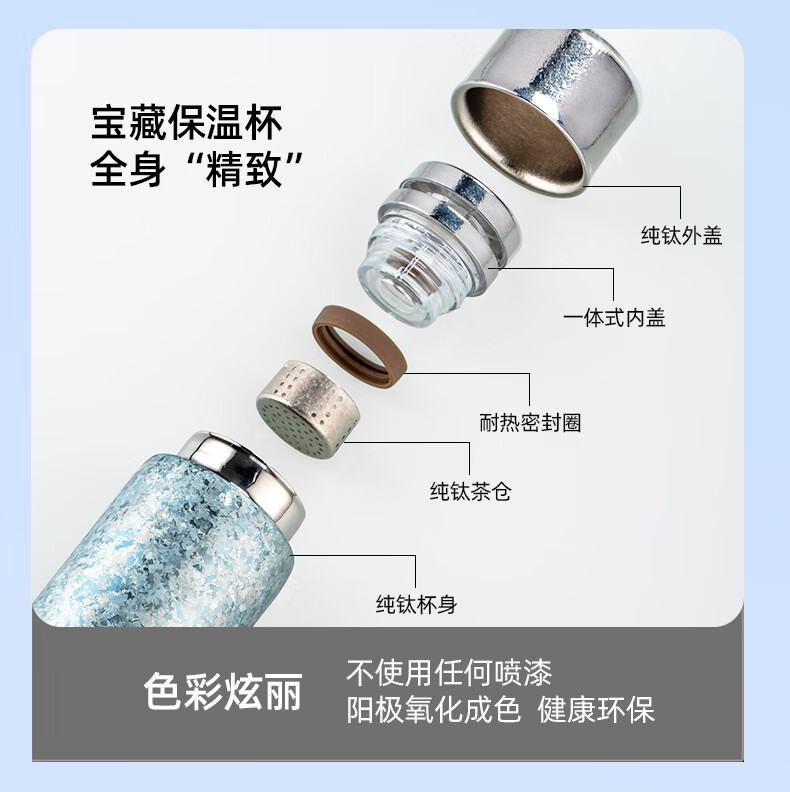 希诺保温杯纯钛内胆大容量茶水分离杯高端水杯养生钛杯男女士杯子 T381银月白290ML