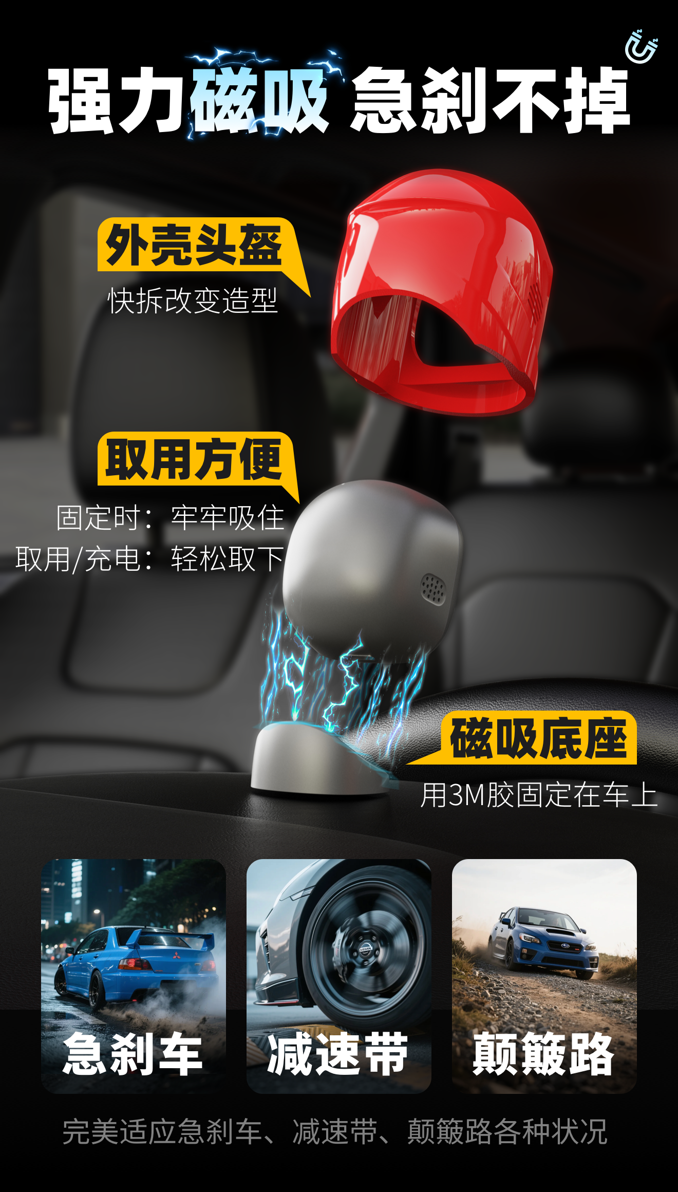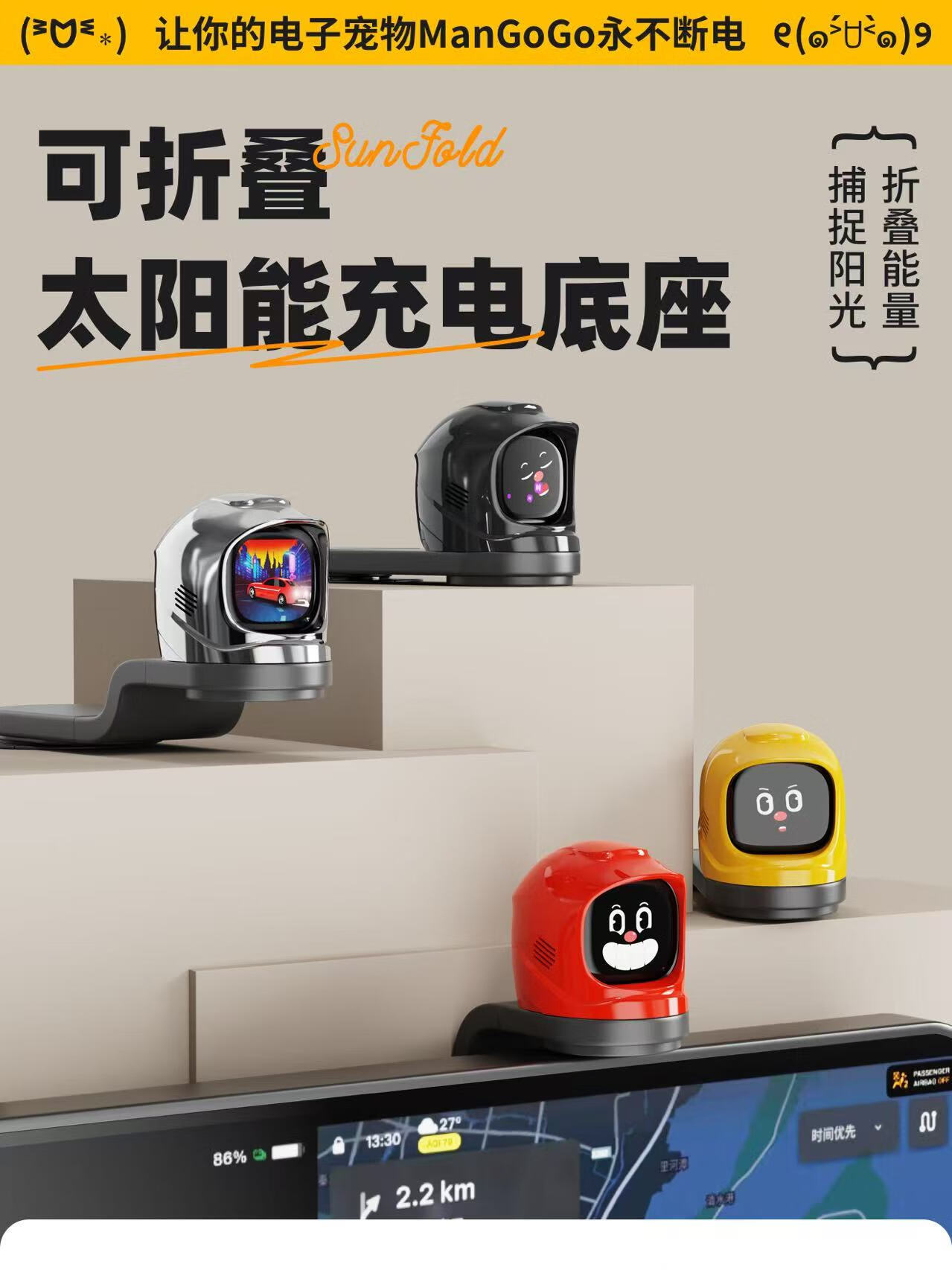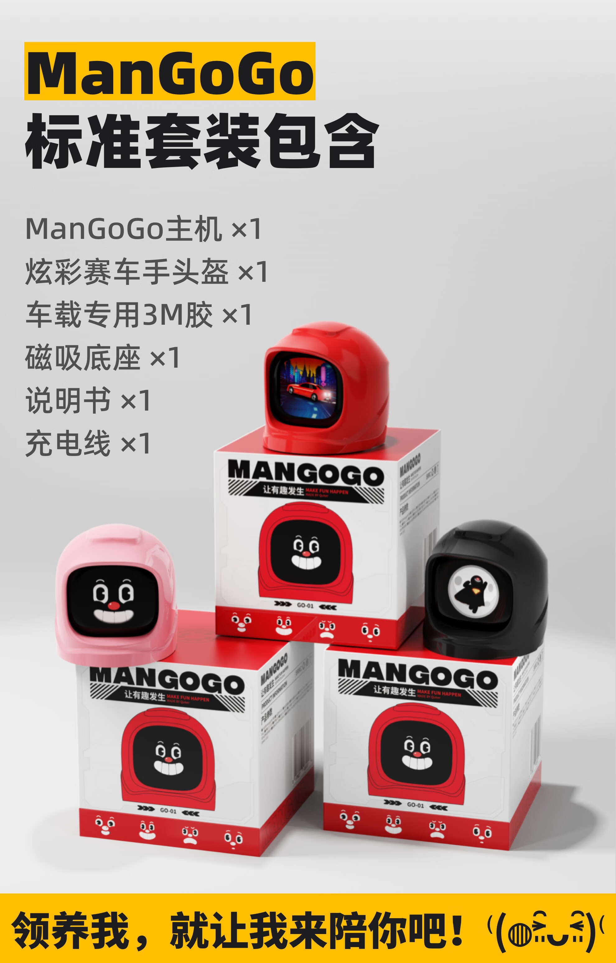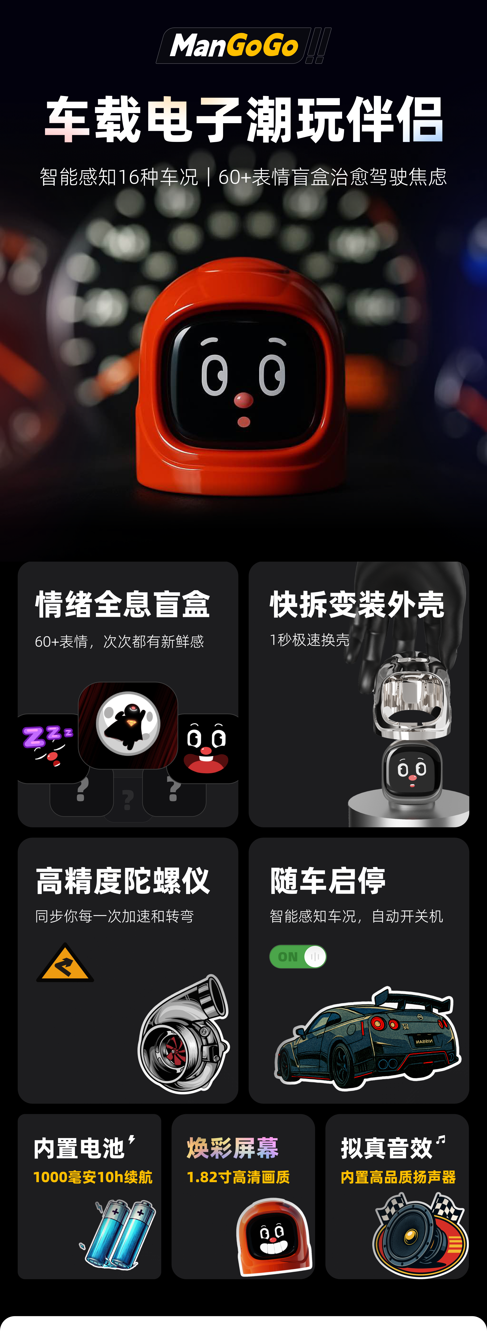 QUKER【车载机器人MANGOGO】电子潮玩伴侣 驾驶陪伴宠物男士中控摆件 曜石黑套装【主机+外壳】
