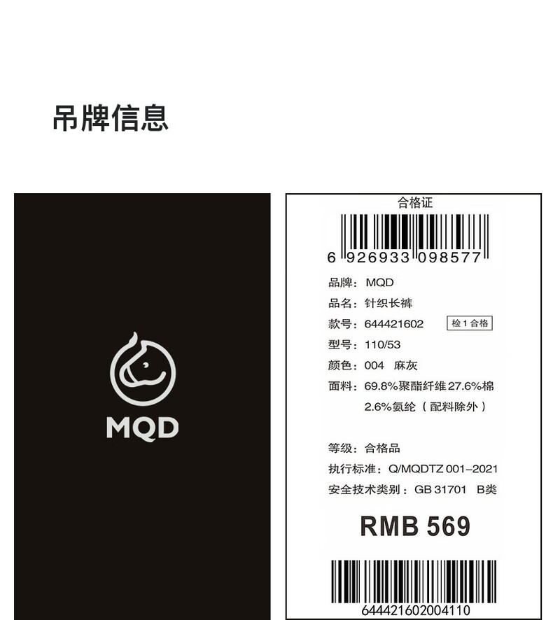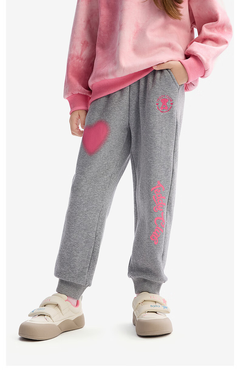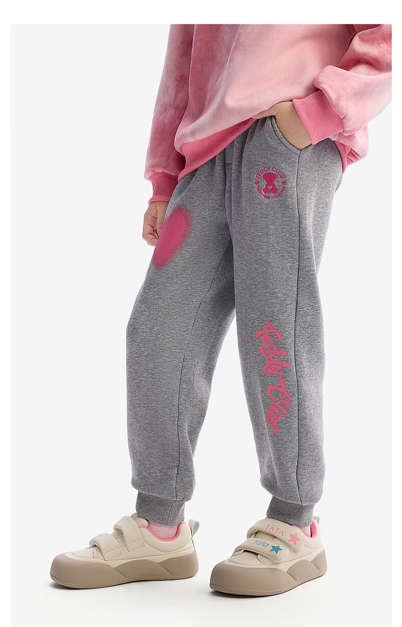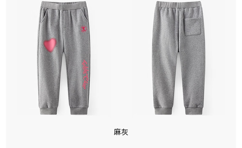 马骑顿(MQD)[泰迪珍藏系列]MQD童装女童加绒运动裤2024冬装儿童保暖长裤 麻灰 120