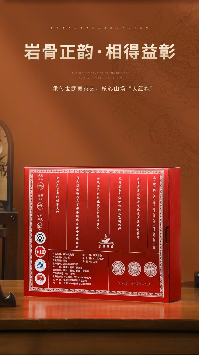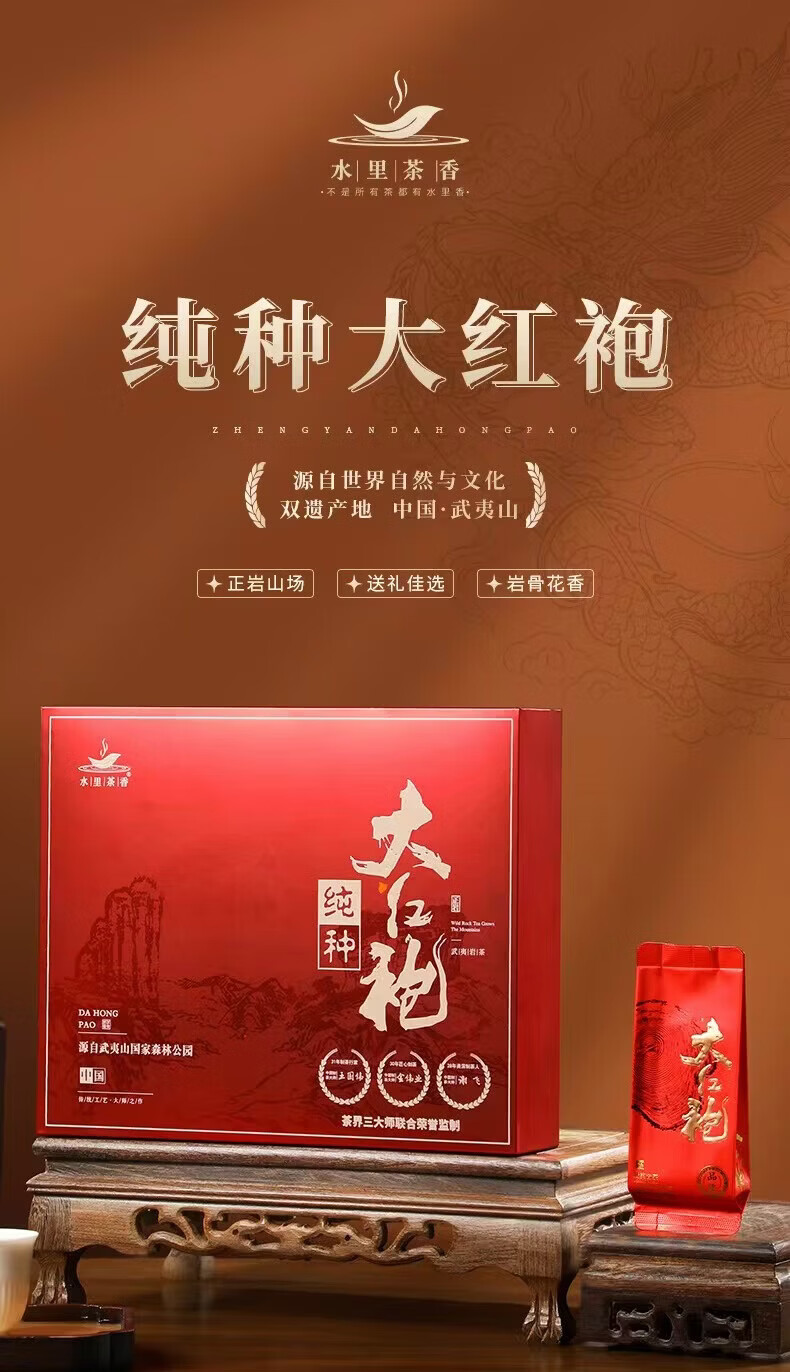 水里茶香武夷岩茶大红袍特级乌龙茶简奢礼盒装250g 年货节茶礼送长辈亲友 武夷岩茶-特级大红袍简奢礼盒装250g