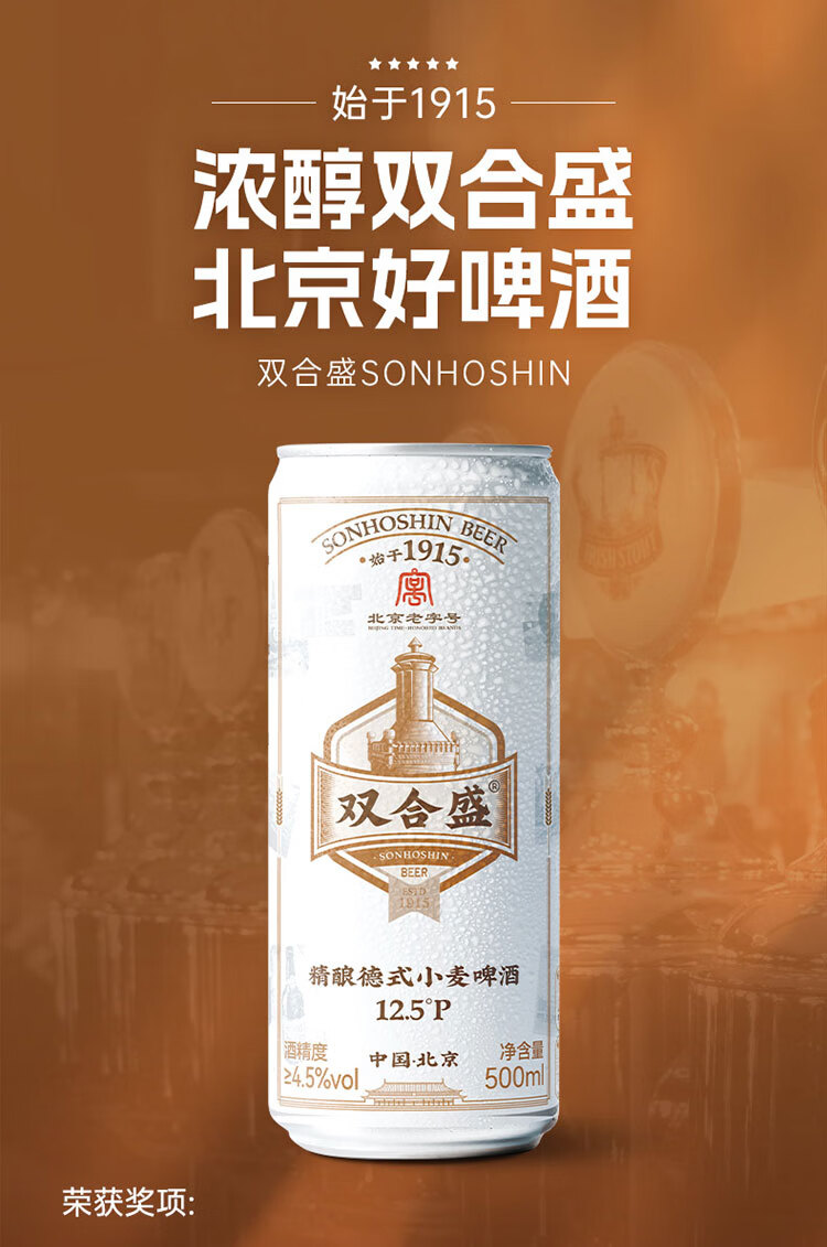双合盛四口味混合啤酒百年老字号年货节送礼 四口味混合 500mL 12罐 组合装