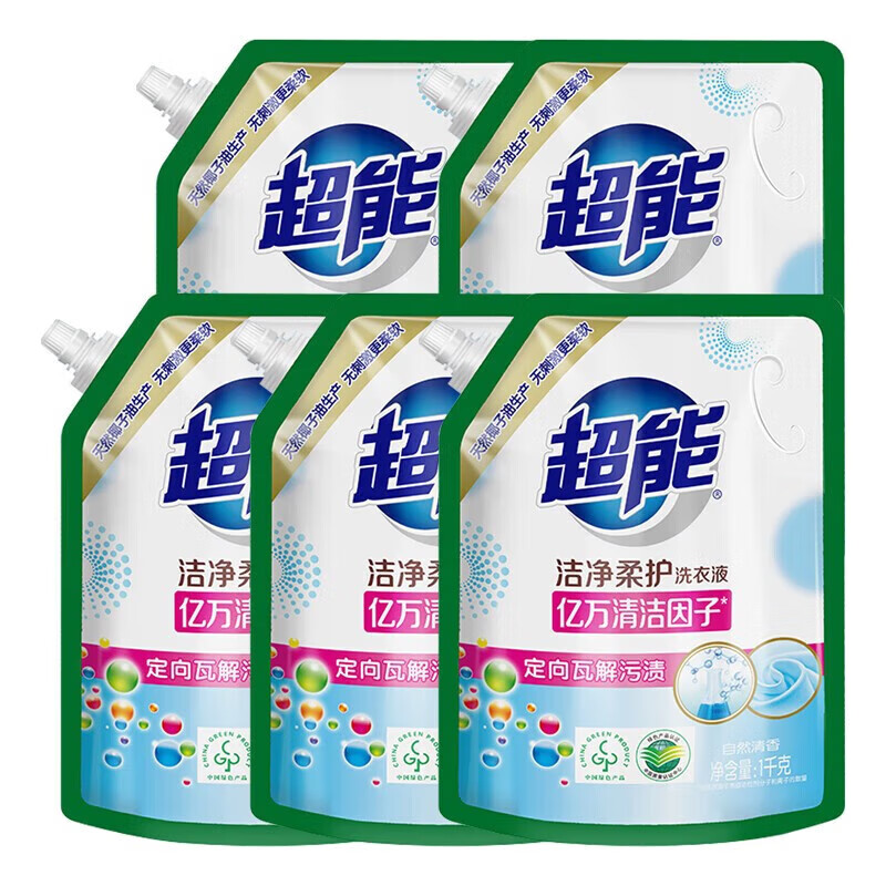 超能植翠1kg洁净柔护天然椰油薰衣草清香机洗低泡易漂 鲜艳亮丽1KG*5袋