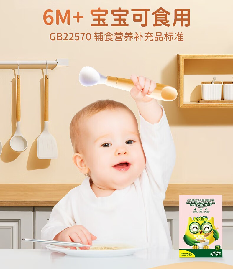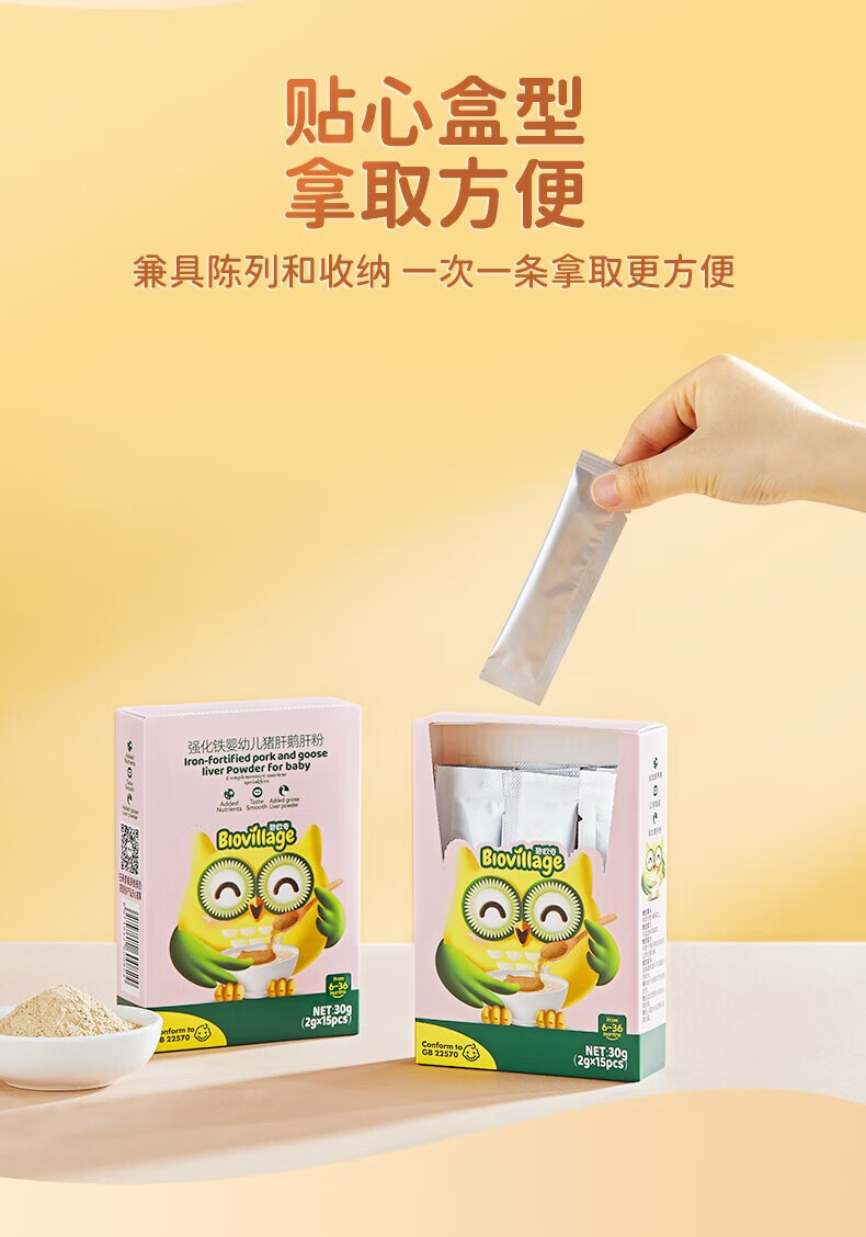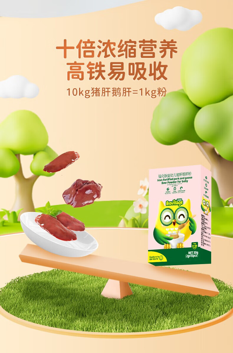 碧欧奇强化高铁猪肝粉鹅肝粉30g6个月以上婴幼儿辅食添加钙铁锌维生素 猪肝鹅肝粉30g*1盒