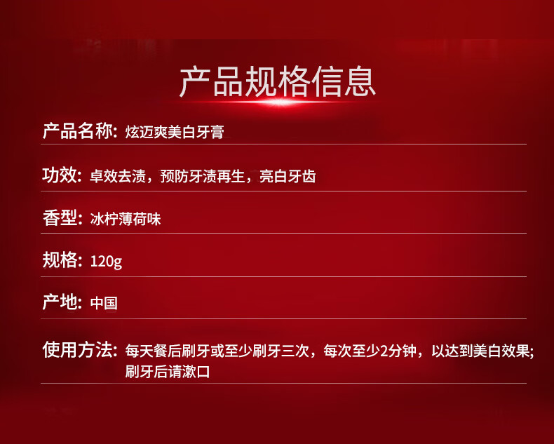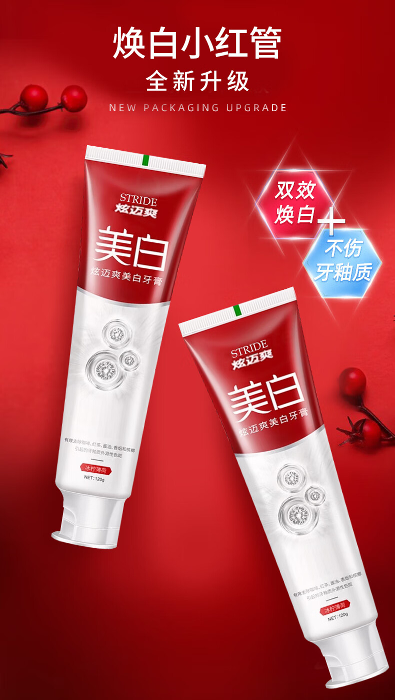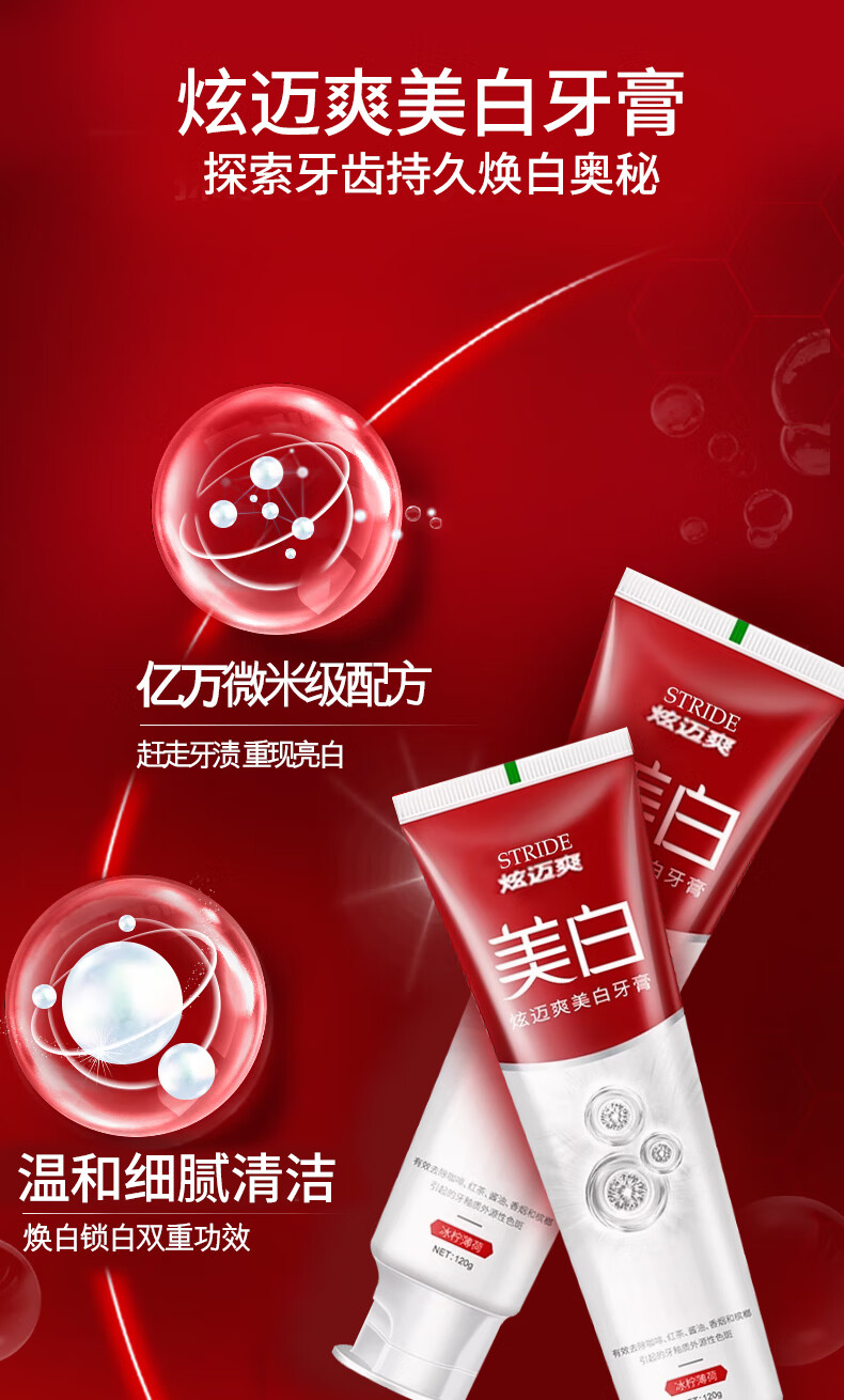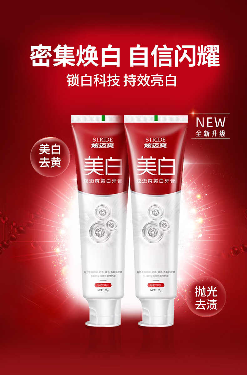 炫迈爽美白牙膏温和去黄烟渍牙渍口臭亮白口腔益生菌洁齿牙膏清新口气 洁齿美白牙膏120g2支