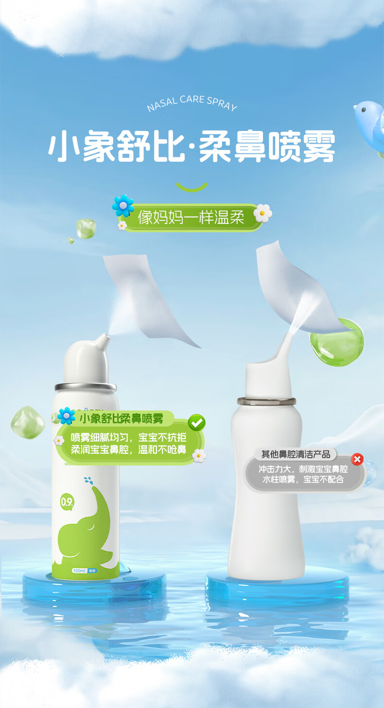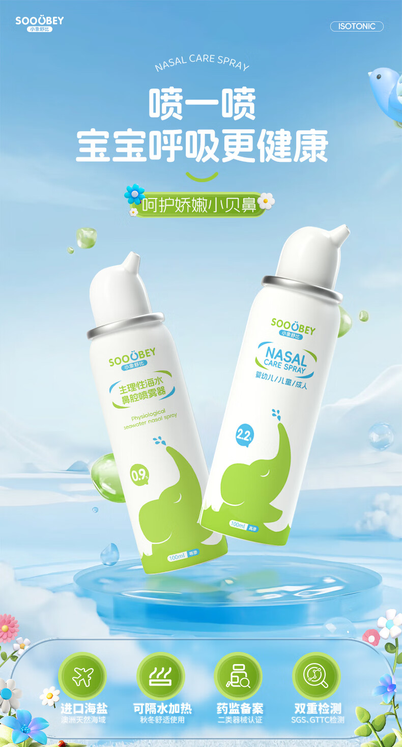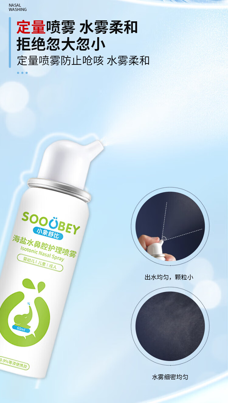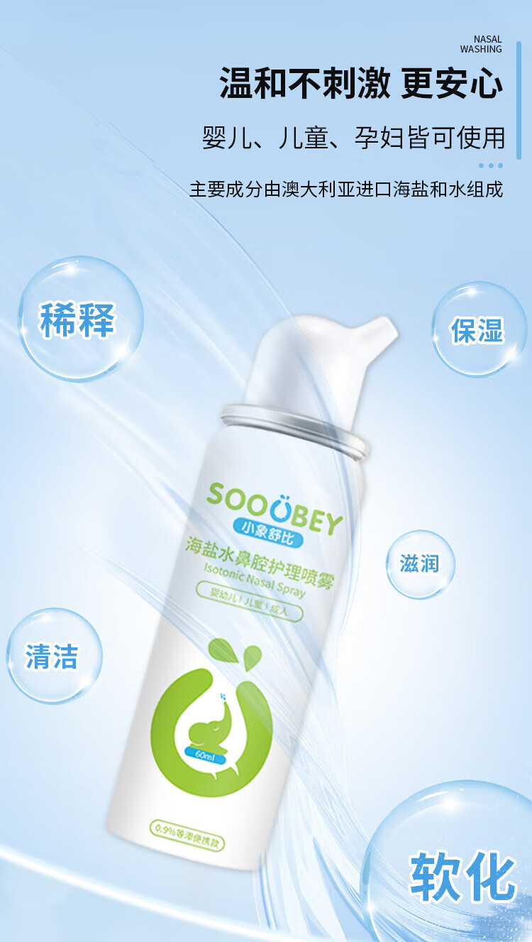 小象舒比海盐水喷鼻婴儿生理盐水洗鼻器儿童成人海水喷雾孕妇便携鼻炎喷剂 【等渗0.9%海水】100ml*1【日常护理】