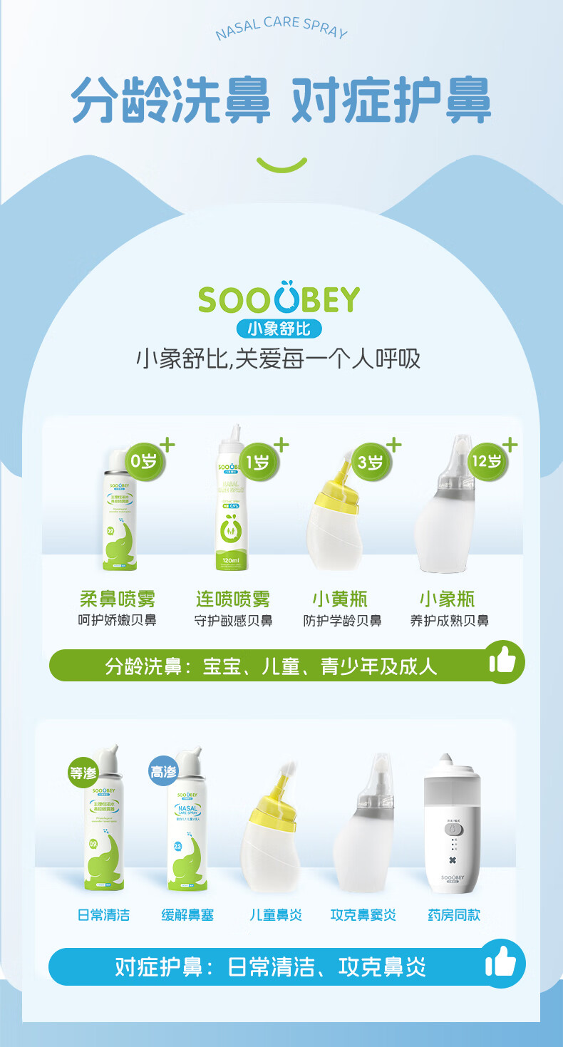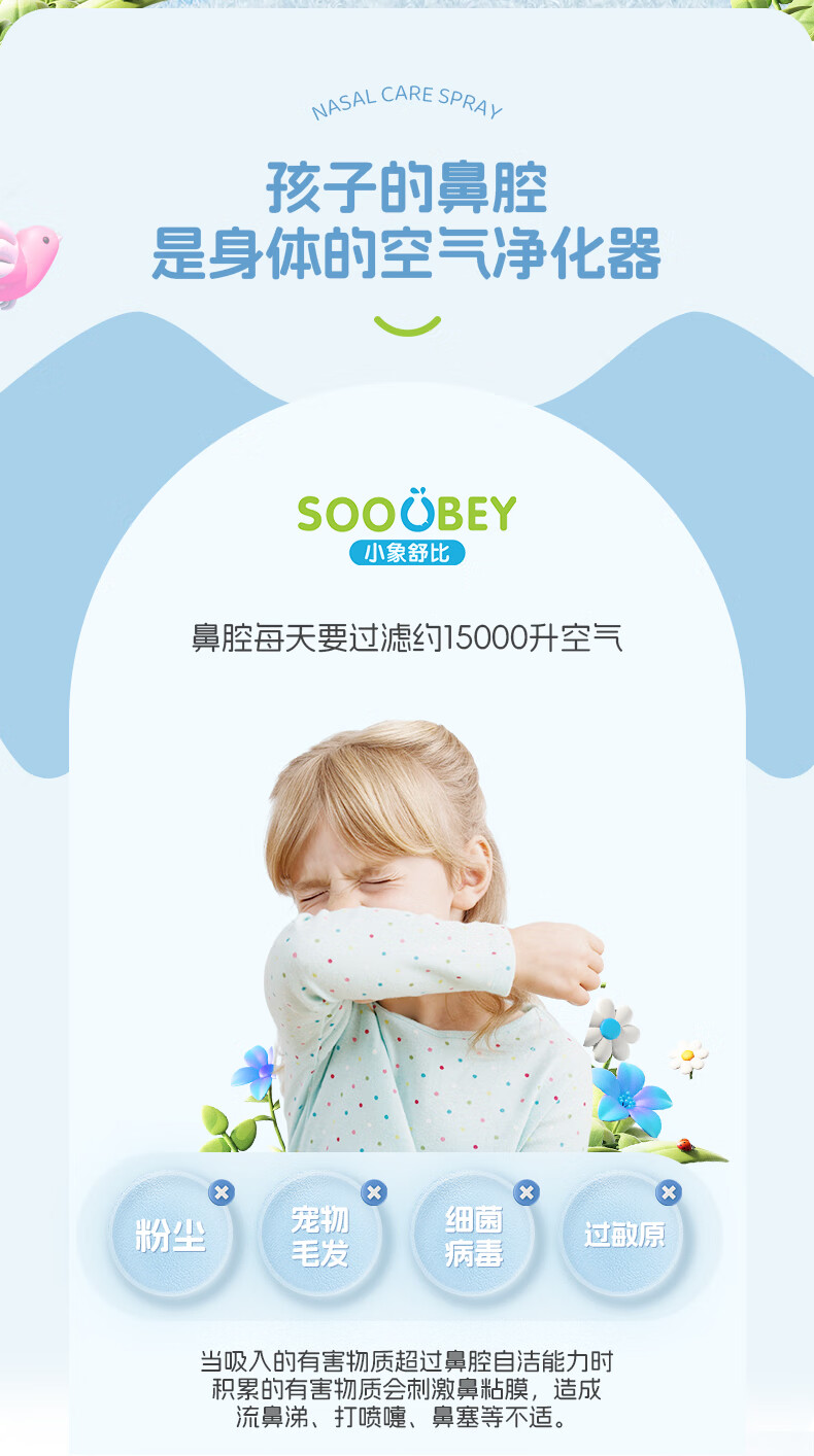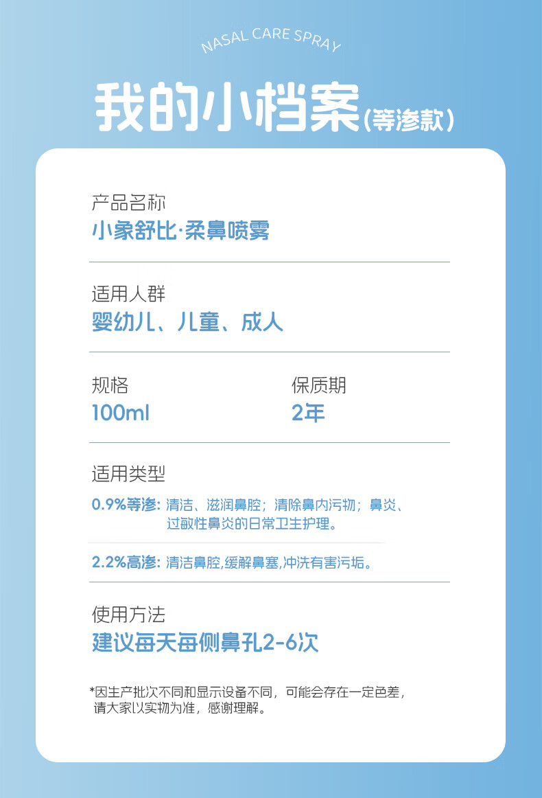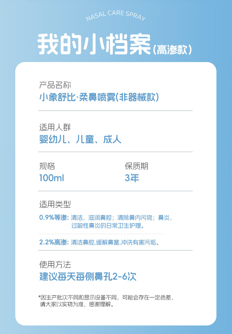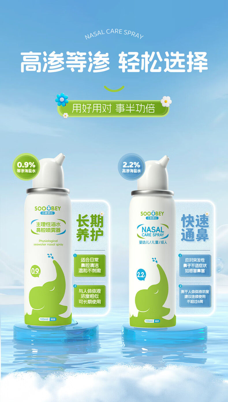 小象舒比海盐水喷鼻婴儿生理盐水洗鼻器儿童成人海水喷雾孕妇便携鼻炎喷剂 【等渗0.9%海水】100ml*1【日常护理】