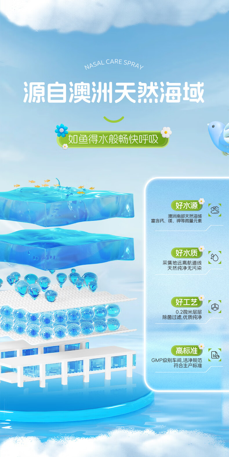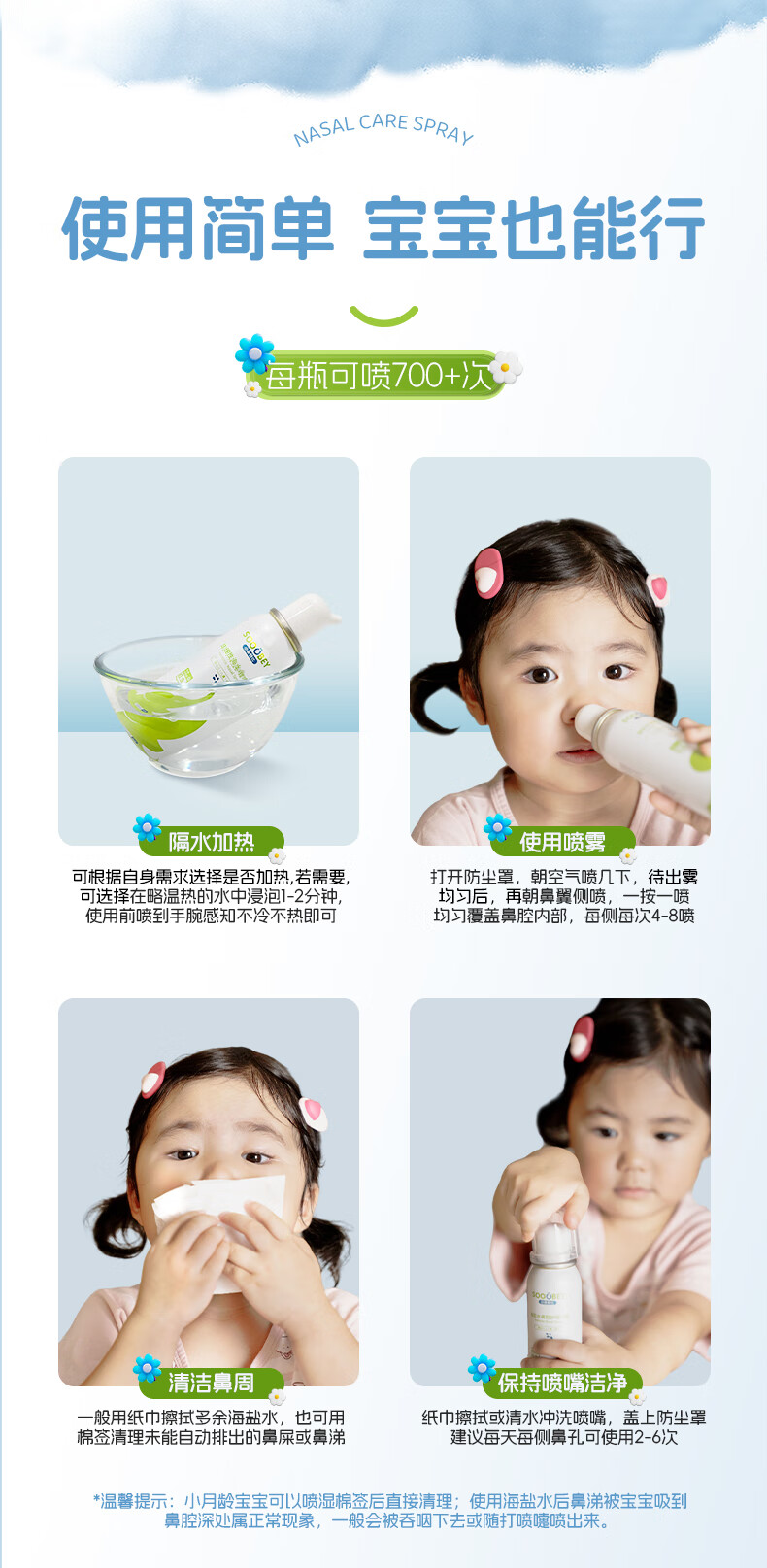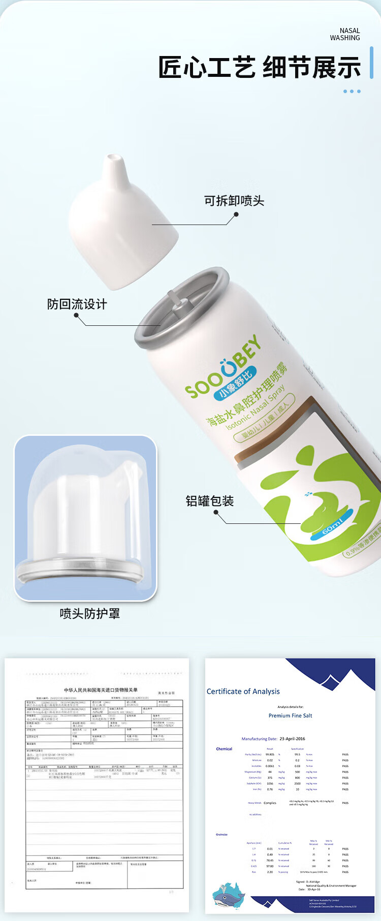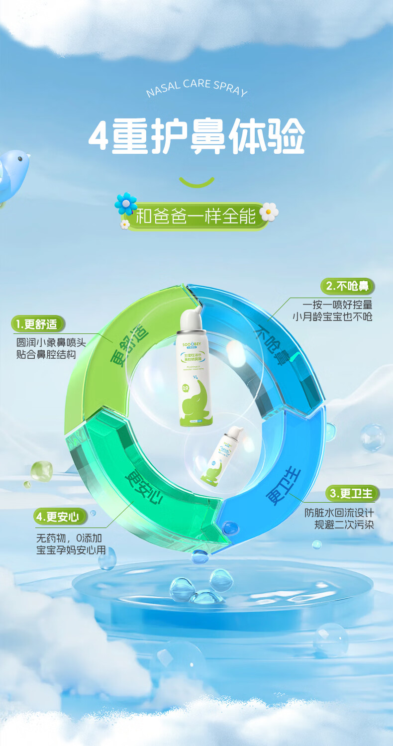 小象舒比海盐水喷鼻婴儿生理盐水洗鼻器儿童成人海水喷雾孕妇便携鼻炎喷剂 【等渗0.9%海水】100ml*1【日常护理】