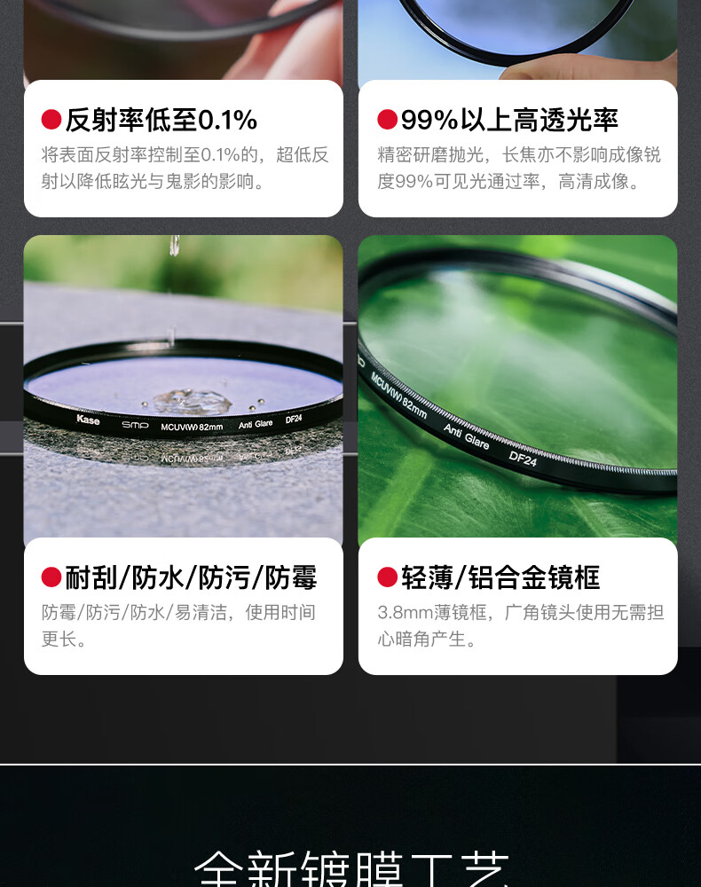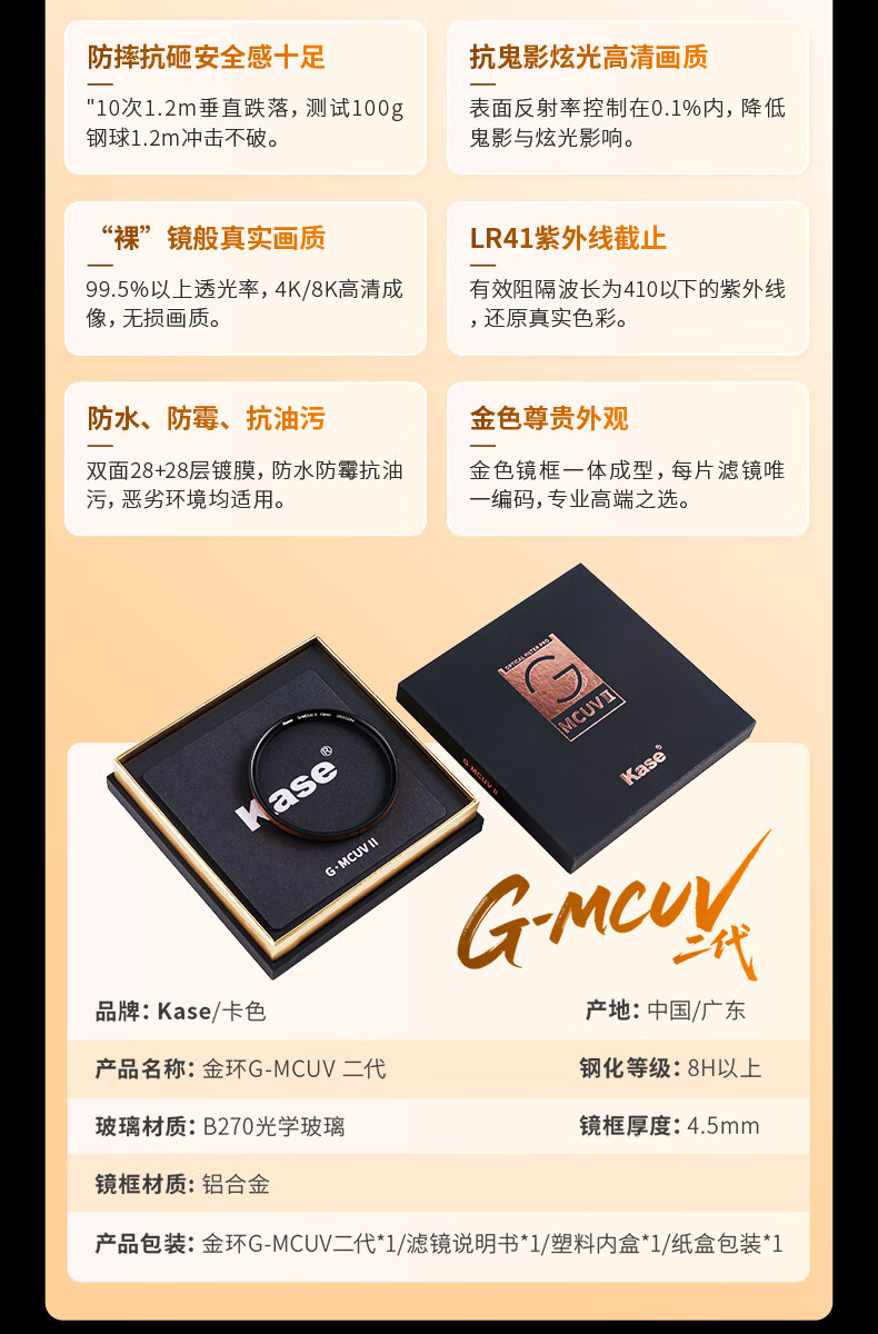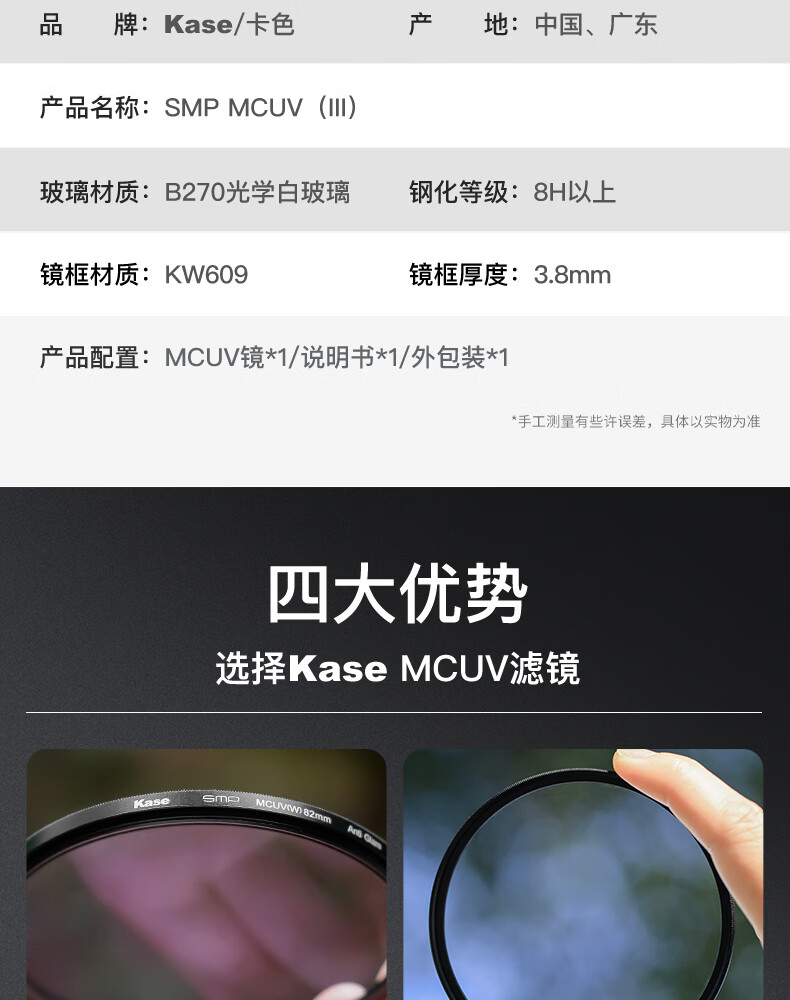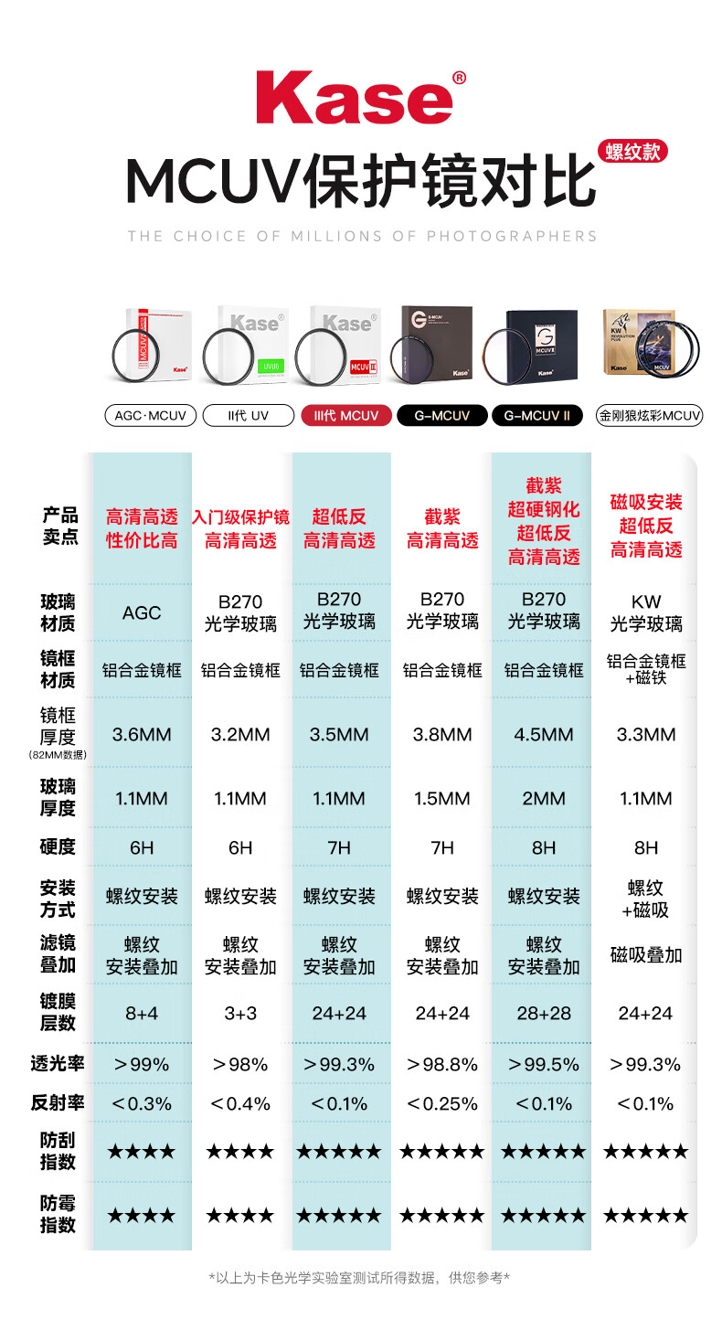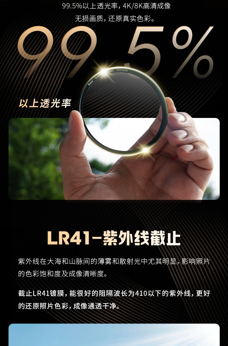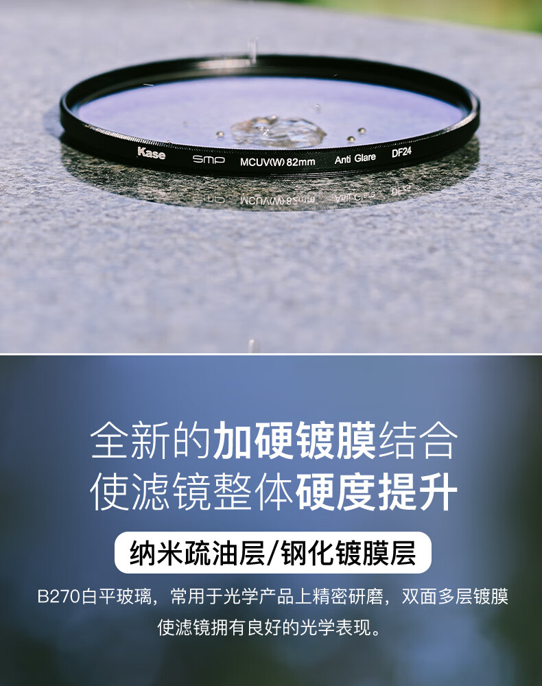 卡色(Kase)uv镜一代二代三代 多层镀膜低反射滤镜 mc uv保护镜适用佳能富士尼康索尼小米单反相机镜头保护镜 MCUV镜三代【99.3%透光率,0.1%低反射】 77mm