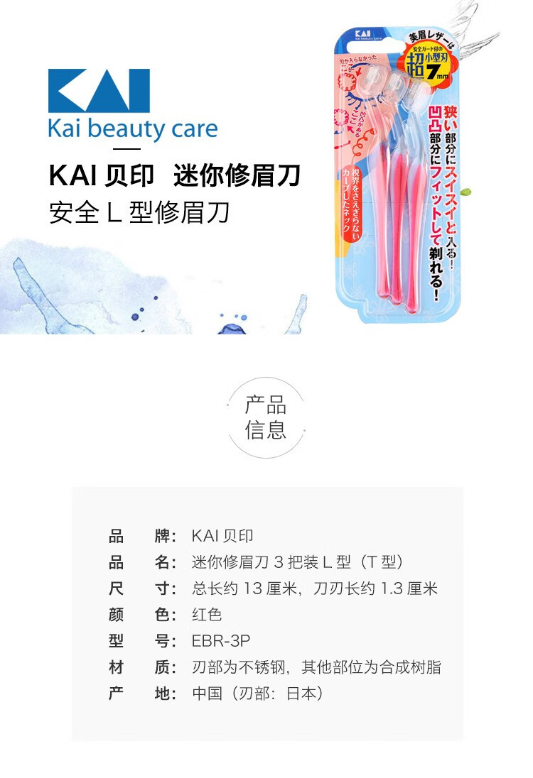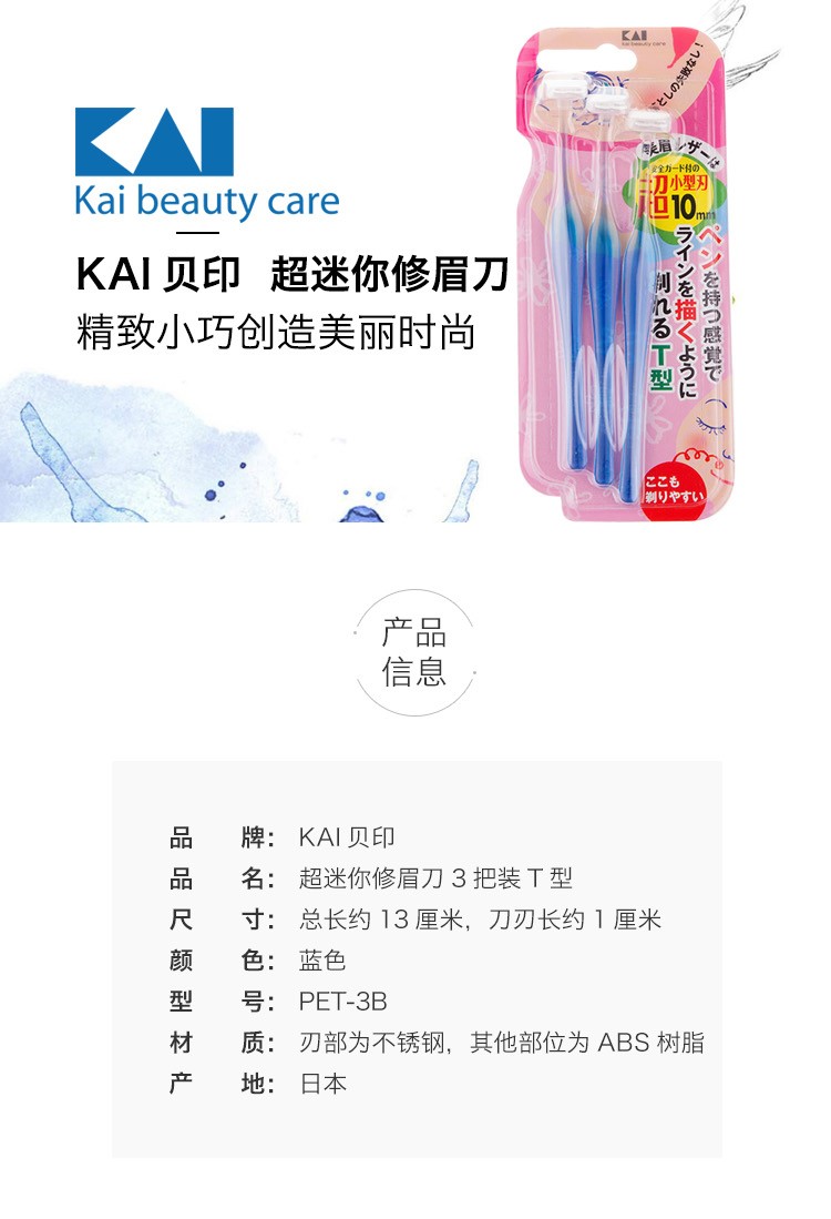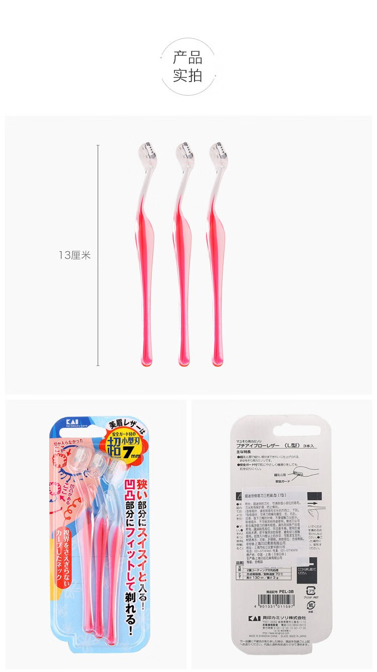 貝印 贝印 KAI修眉刀 日本进口新手画眉修眉工具3把装套装刮眉刀 3支装-T型