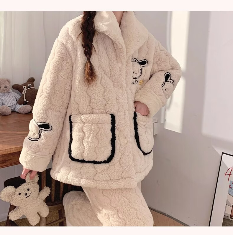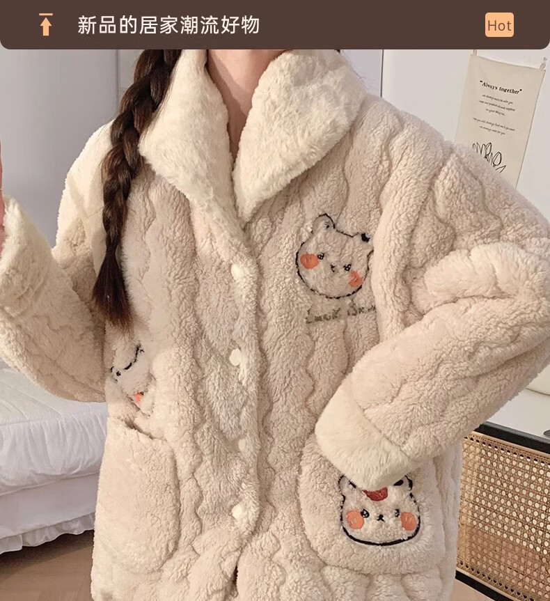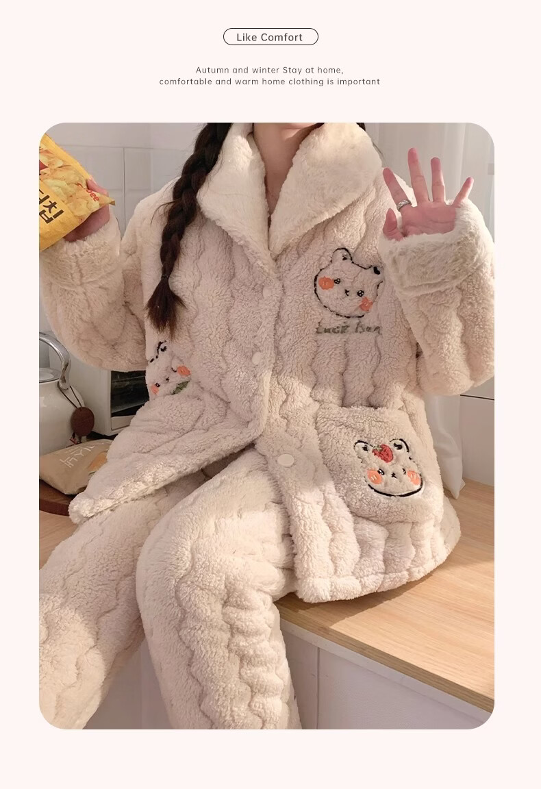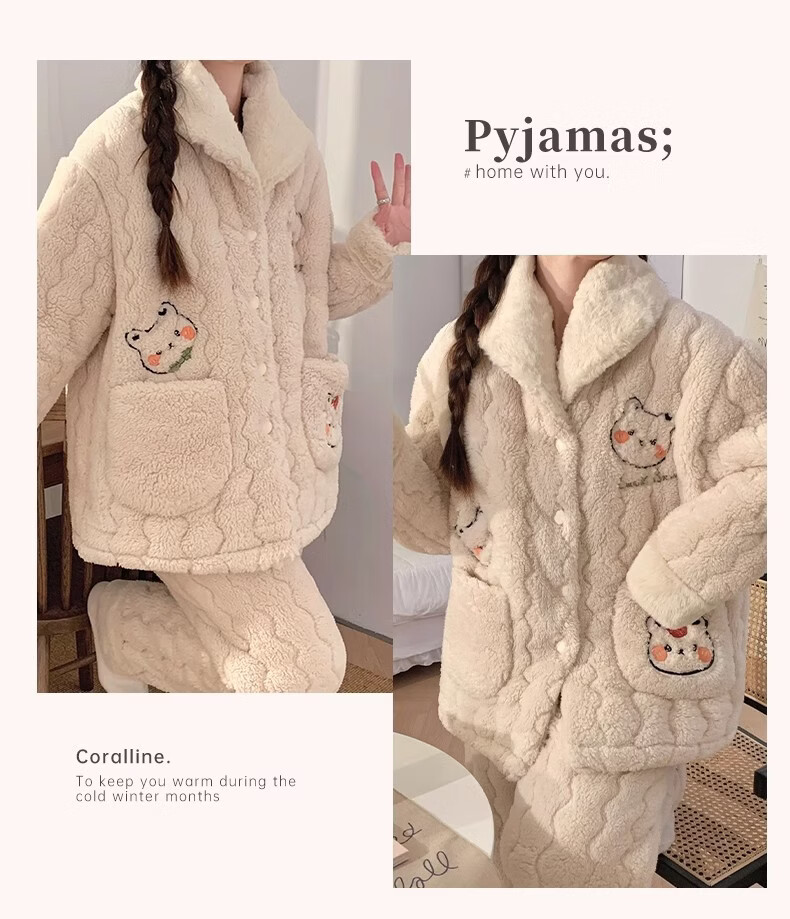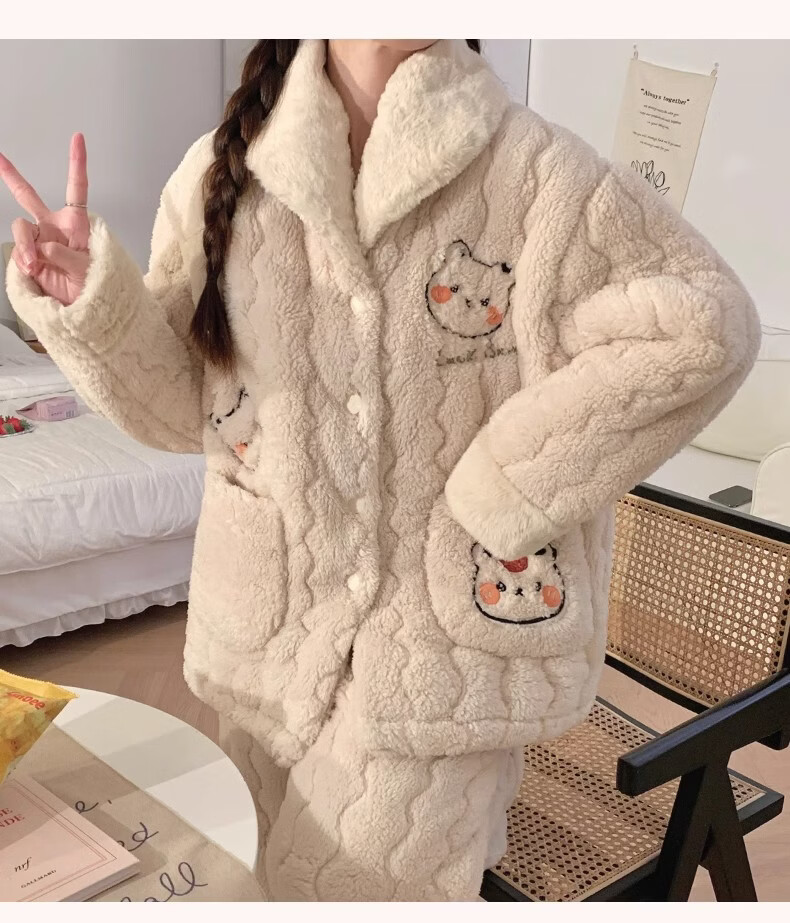 缪黛 MAULTIAY秋冬季三层夹棉睡衣女款珊瑚绒加厚加绒卡通小熊冬天法兰绒家居服 限时秒杀 《少量现货》 M