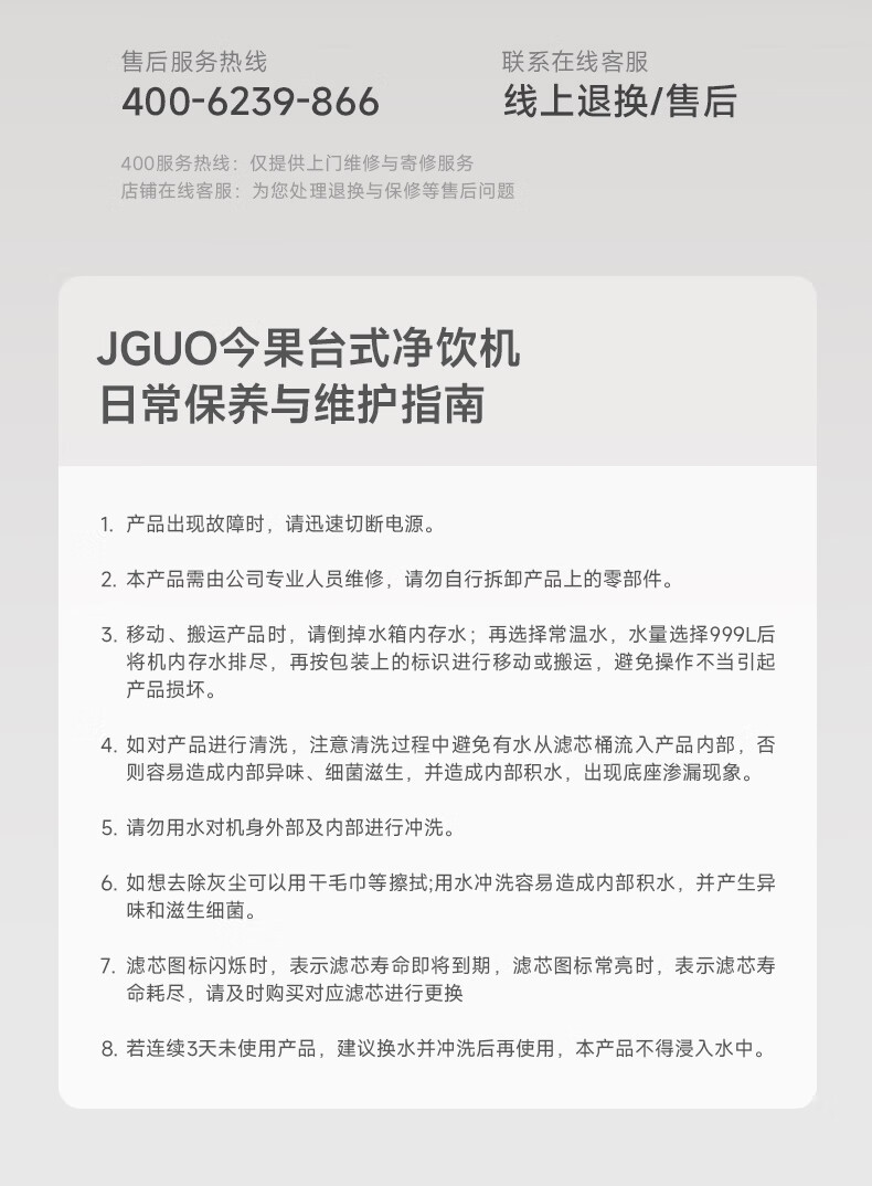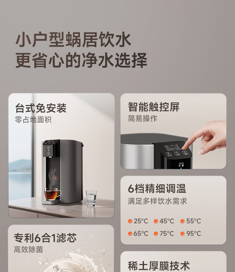 JGUO净水器加热直饮一体机内前置过滤器家庭用即热净饮直饮机水龙头自来水过滤器官方旗舰店 台式3秒即热净饮机 3.2L 搭载6合1反渗透滤芯