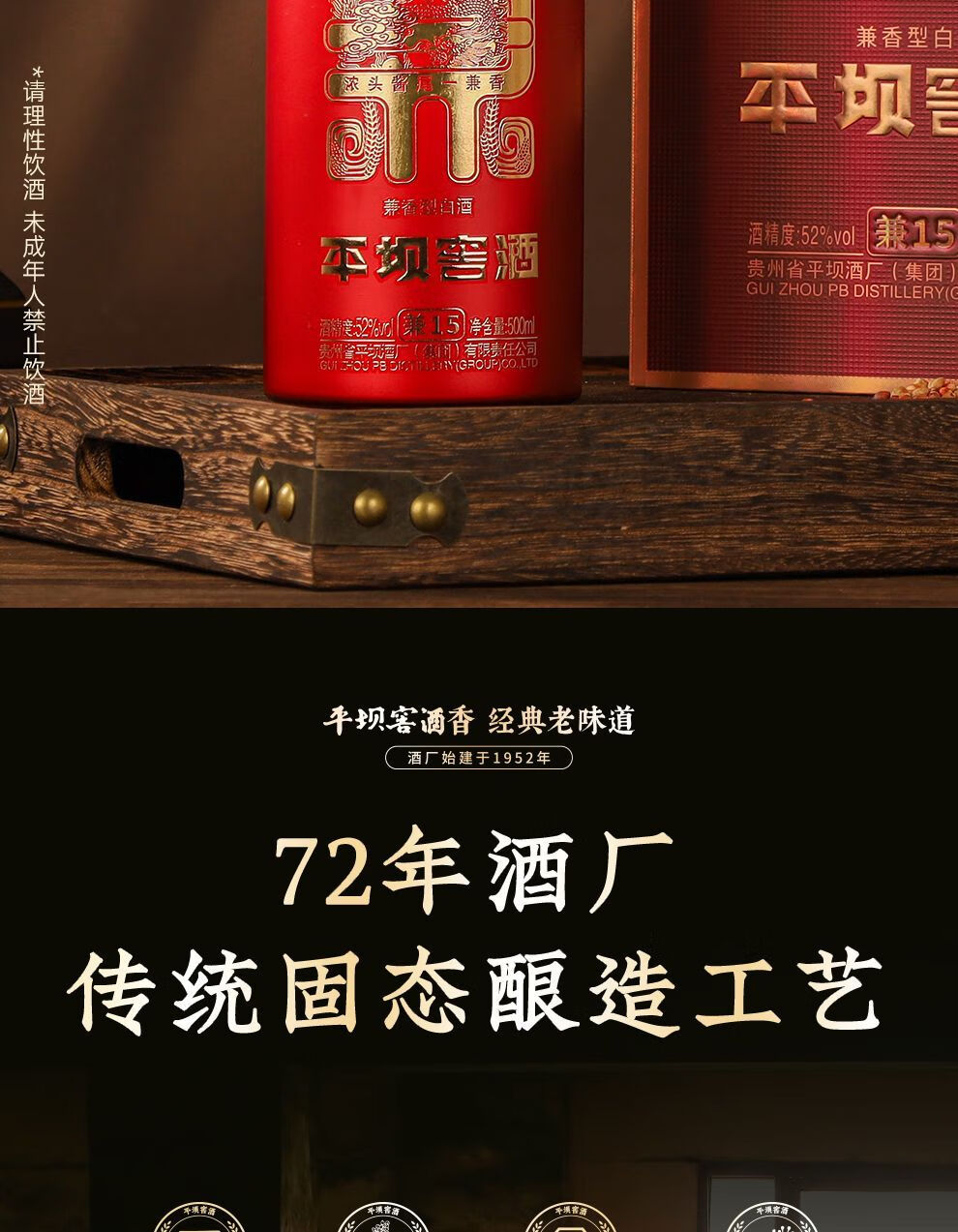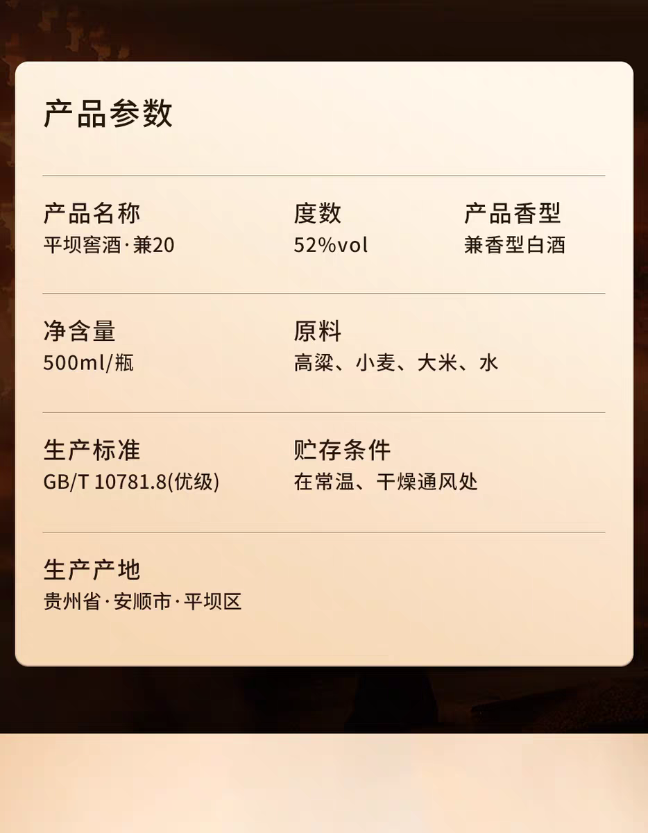 平坝窖酒 兼香型高端白酒 年货送礼礼盒 52度 500mL 1瓶 兼香30 单支装