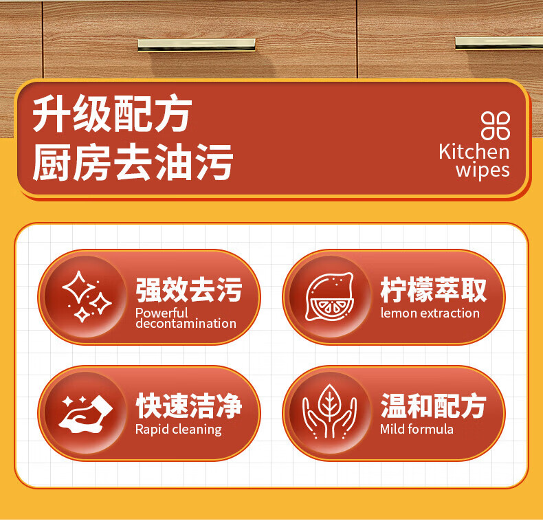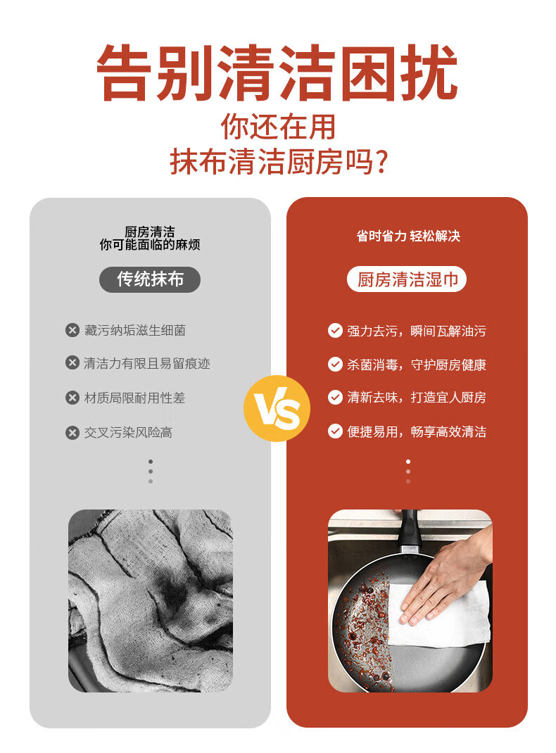 可王超大包厨房湿巾家用一次性厨房纸除油去污油烟机清洁湿 60抽 12*17厨房湿巾