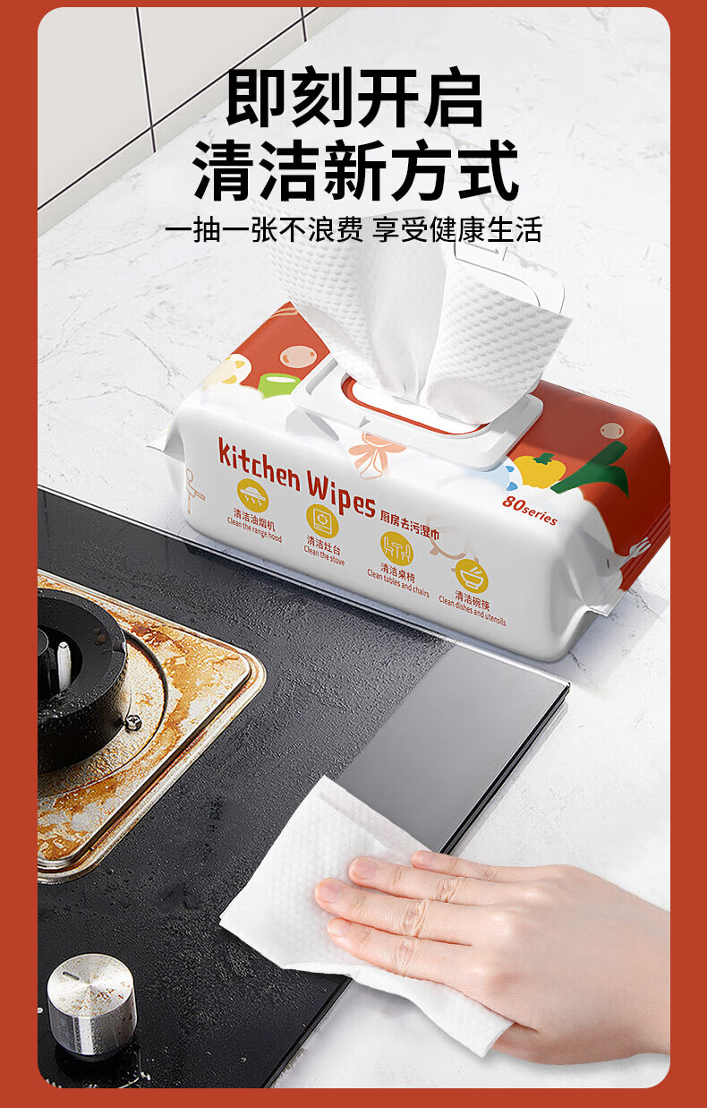 可王超大包厨房湿巾家用一次性厨房纸除油去污油烟机清洁湿 80抽 13*16厨房湿巾