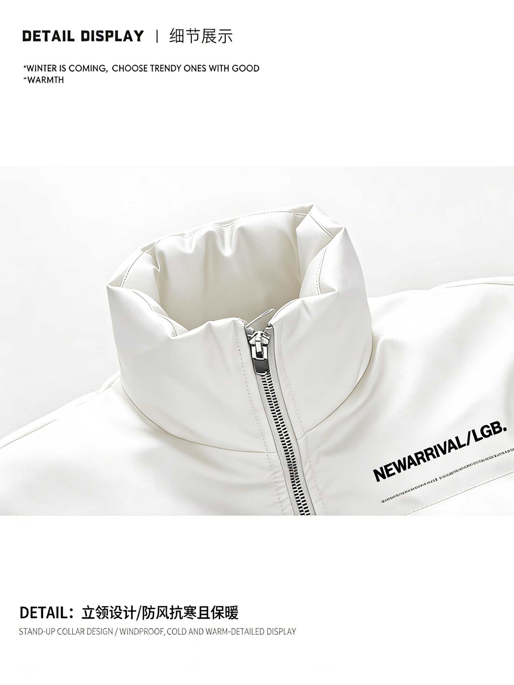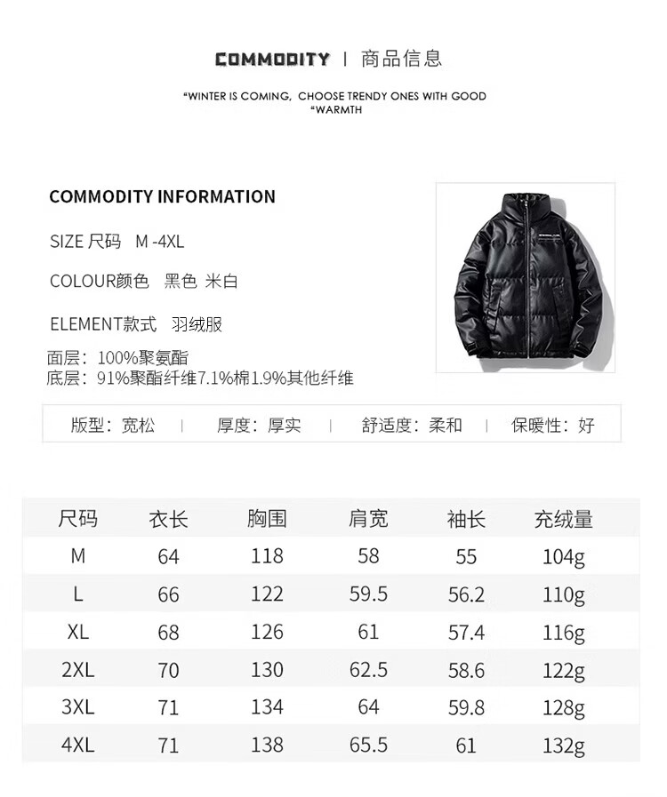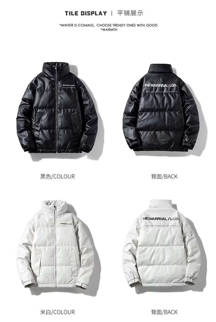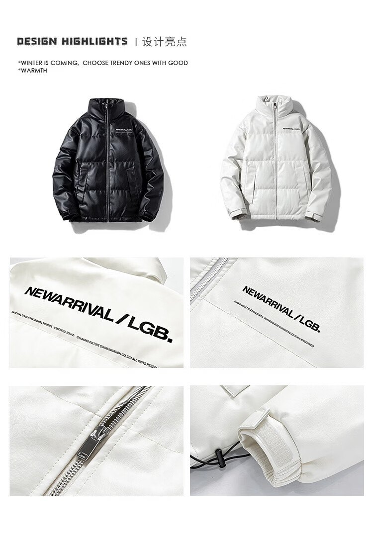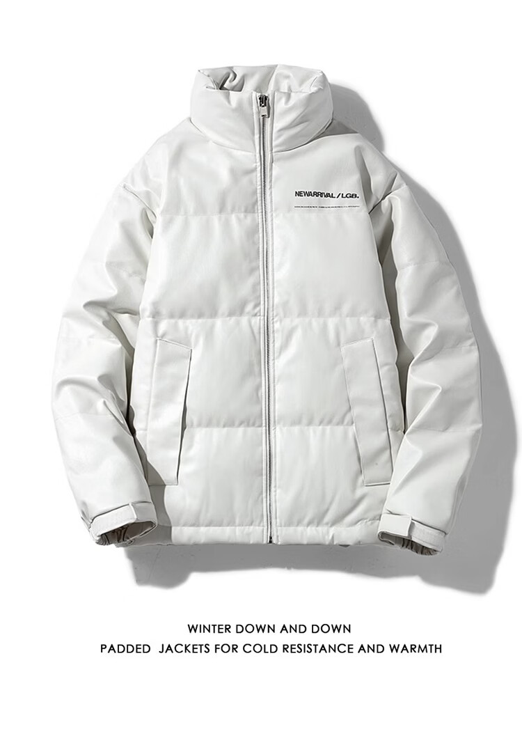 迈途立领冬季短款90白鸭绒皮衣夹克学生保暖潮开衫运动外套PU皮羽绒服 白色 宽松版型,偏大 4XL