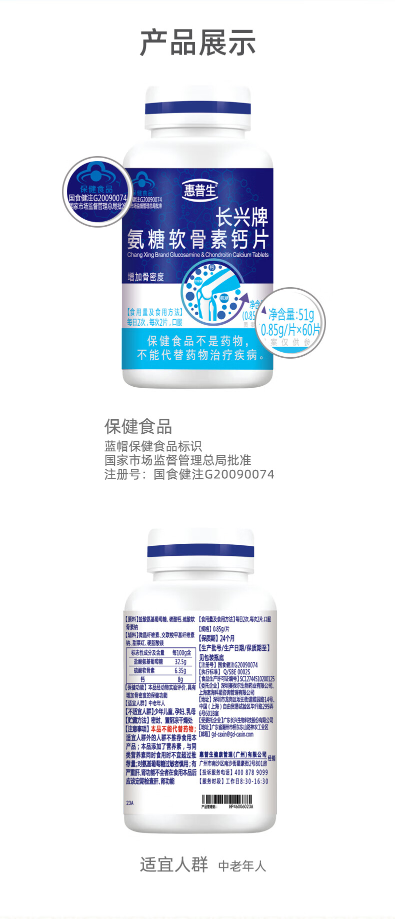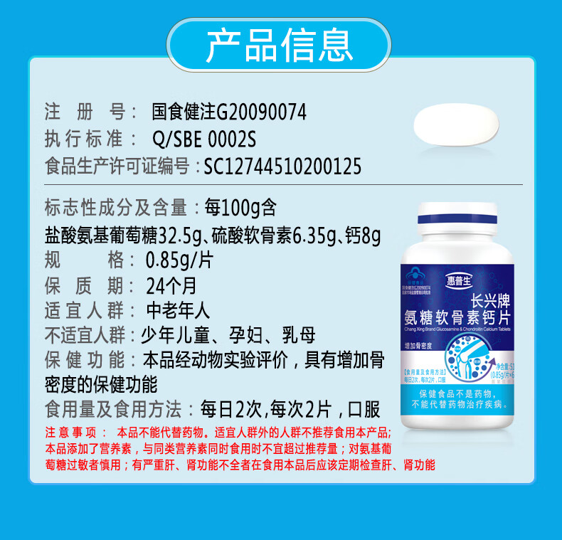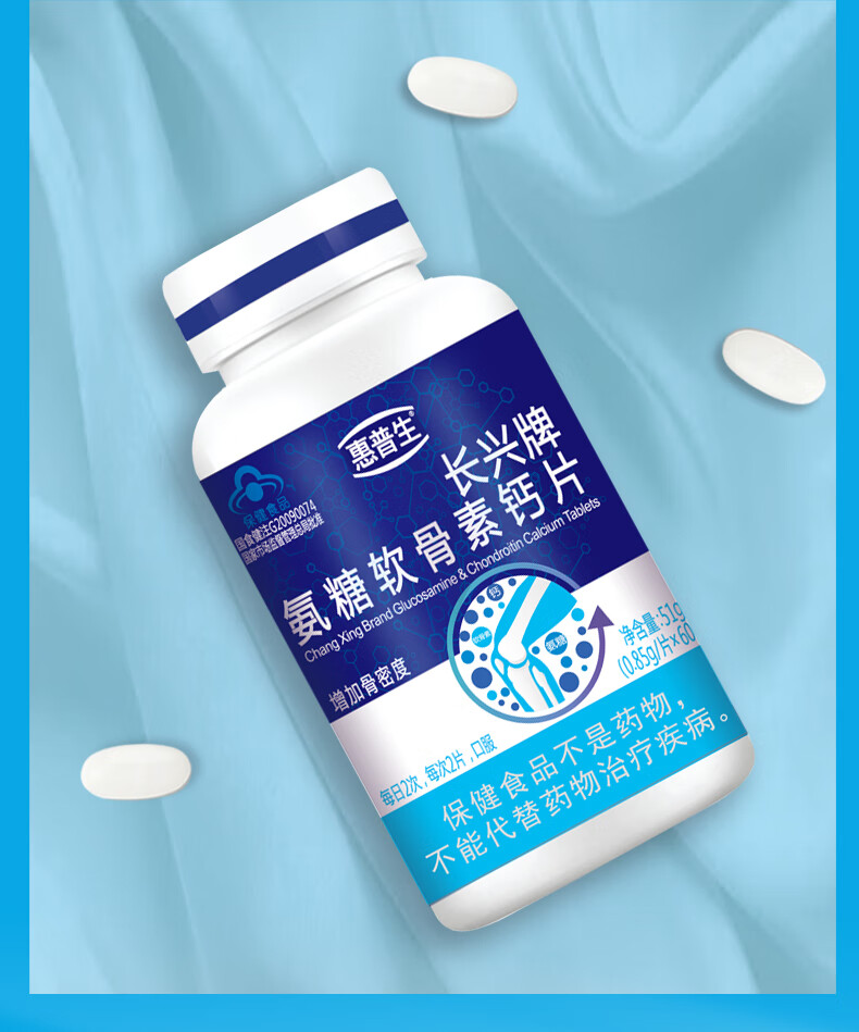 惠普生长兴牌氨糖软骨素钙片60片中老年增加骨密度补软骨护关节组合套装 5瓶300片吃两个半月