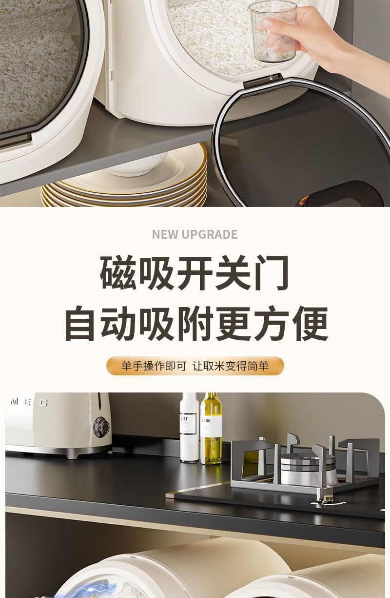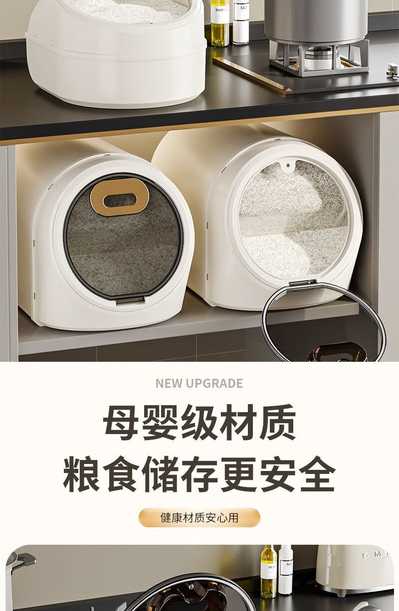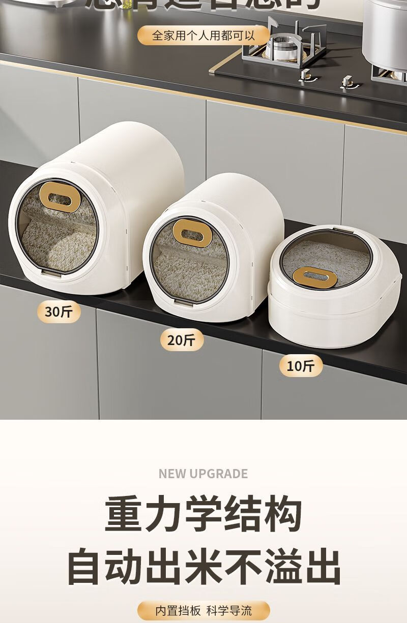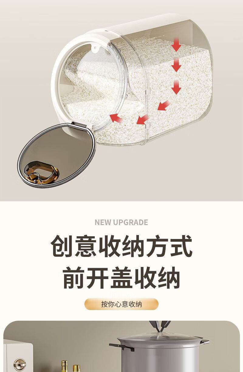 【厂家直发】装米桶家用米缸粮食面粉储存罐杂粮大米收纳盒密封储 回流米桶小号-奶油白