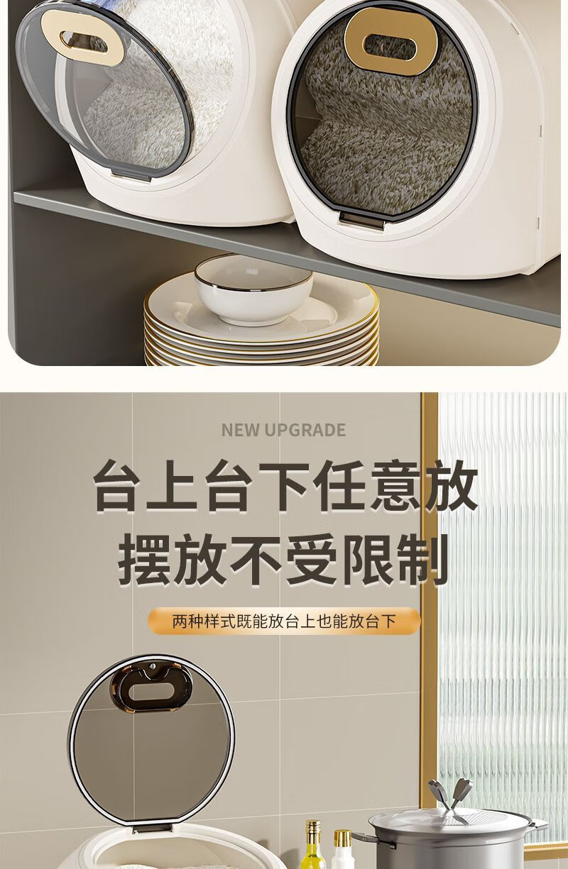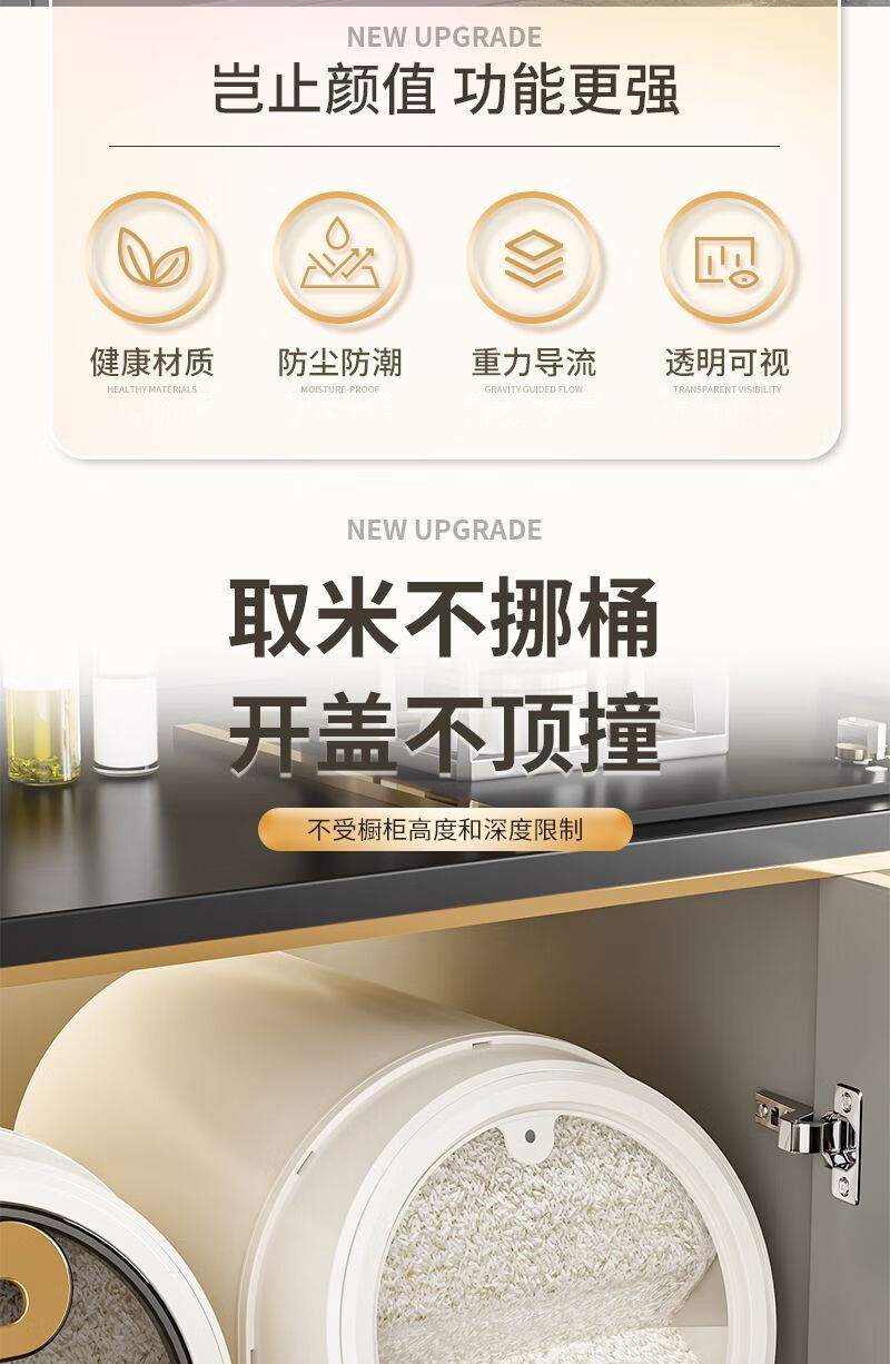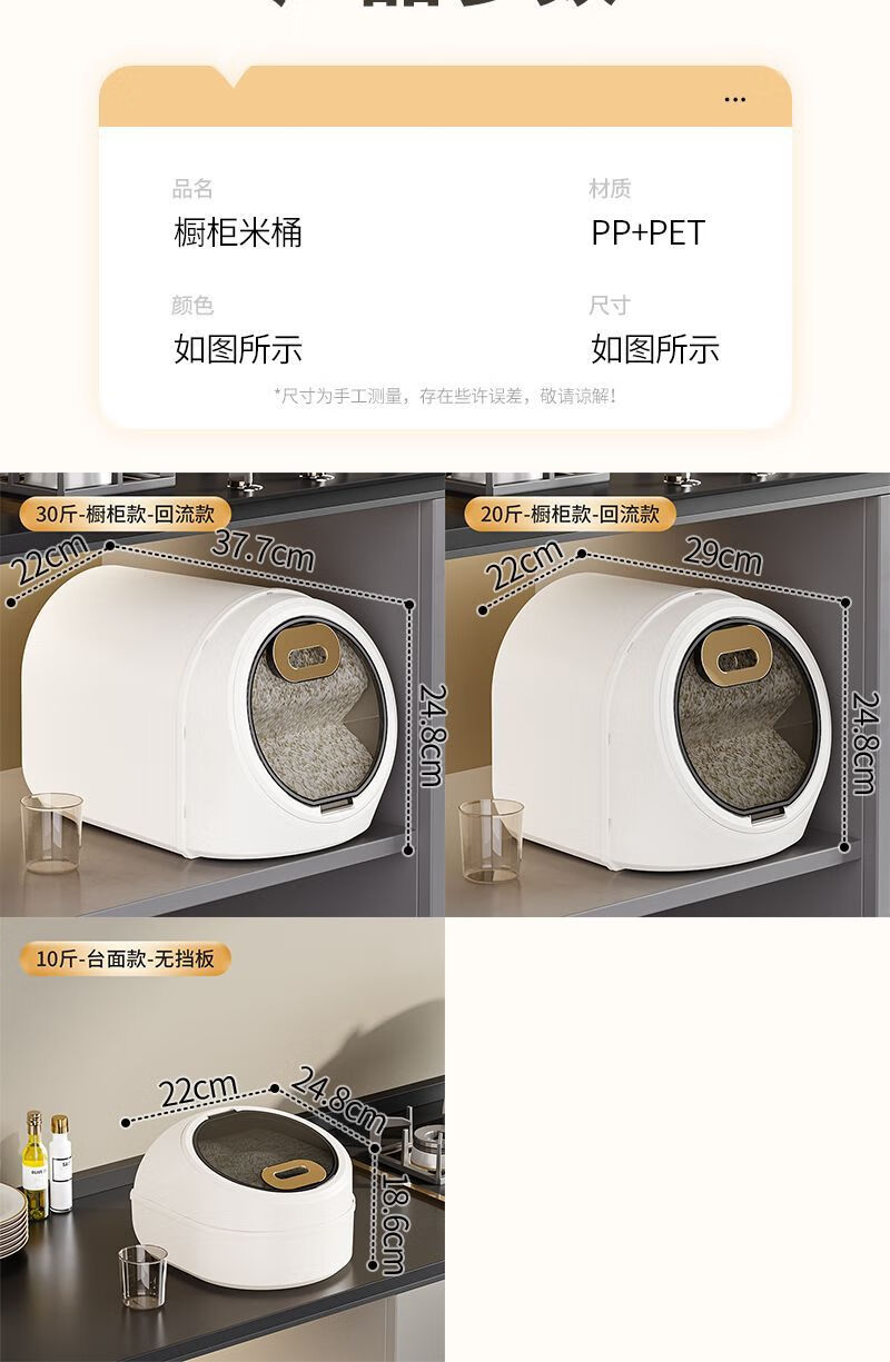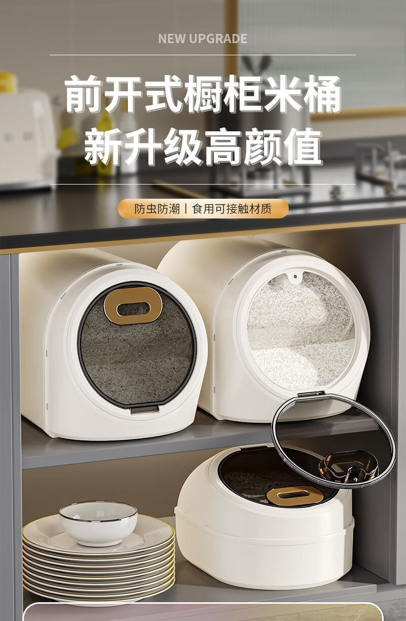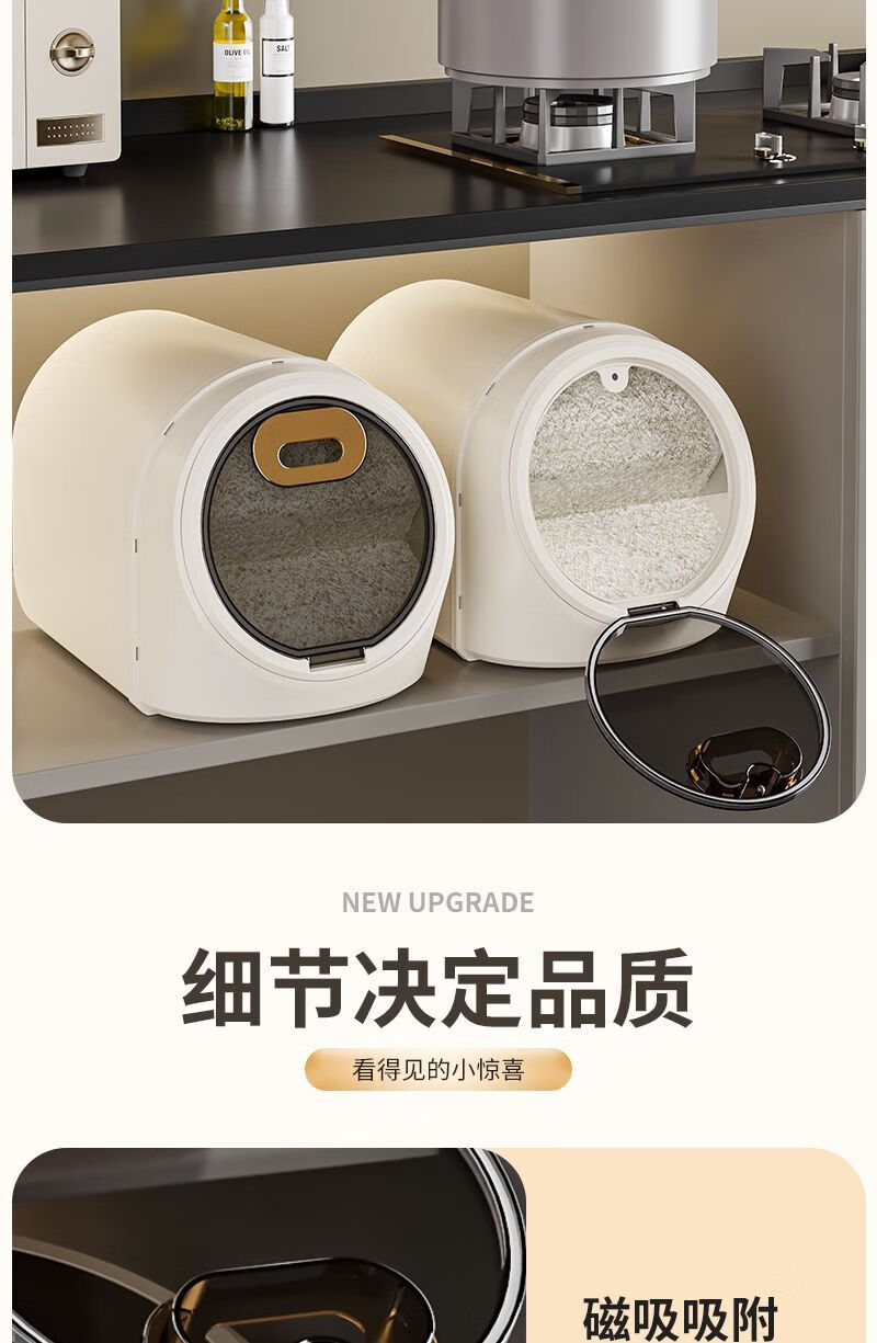 【厂家直发】装米桶家用米缸粮食面粉储存罐杂粮大米收纳盒密封储 回流米桶小号-奶油白