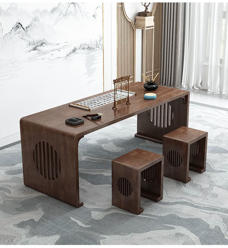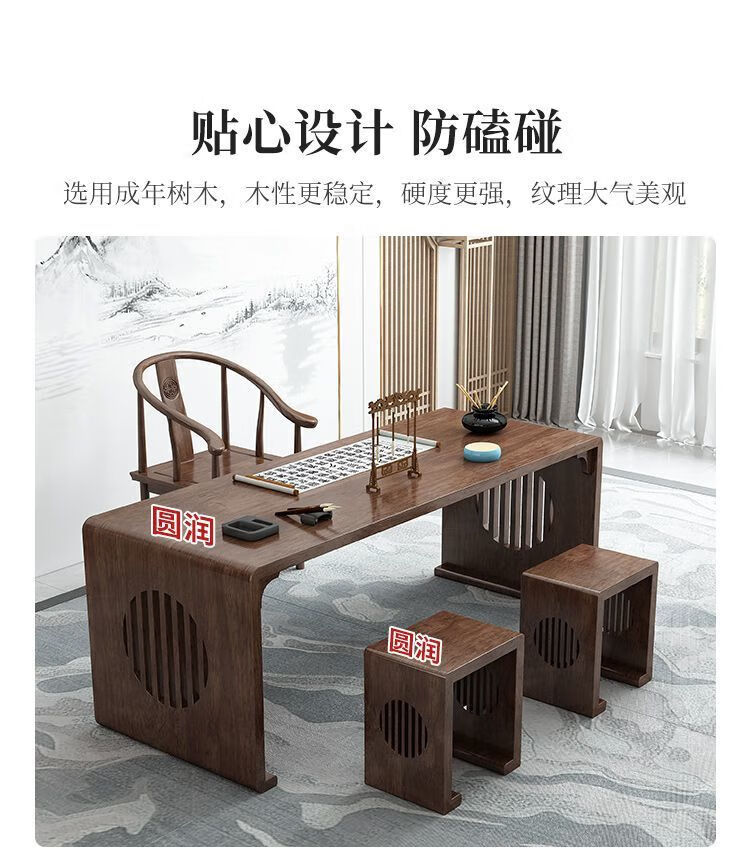 巧谷2025新款新中式实木书法练字桌培训课桌国学桌家用办公仿古诊疗桌 1.2米国学桌配1圈椅