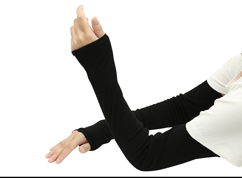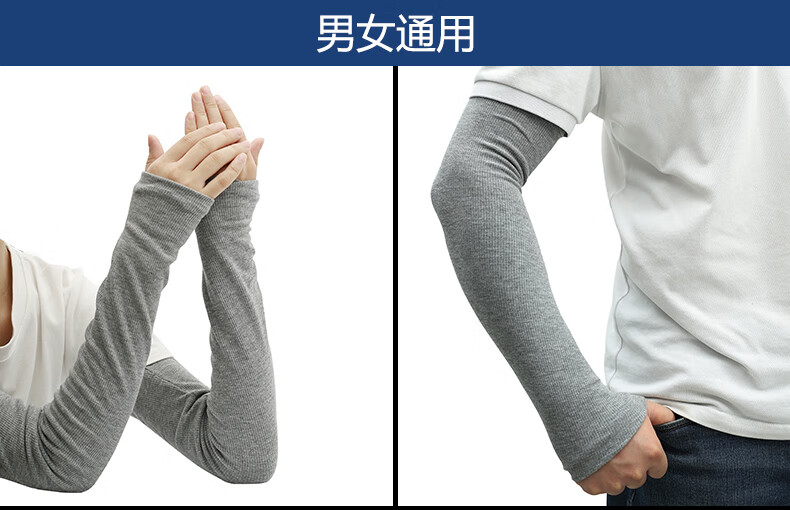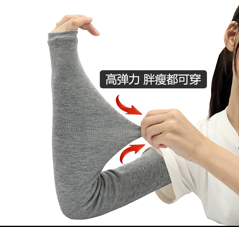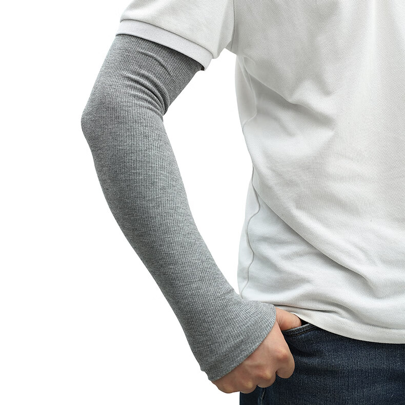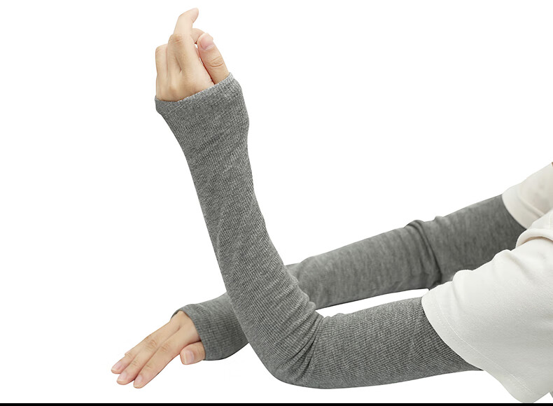珍碧斯秋冬季全棉保暖袖套女男长款双层加厚高弹性防寒护肘胳膊护臂手套 深灰色