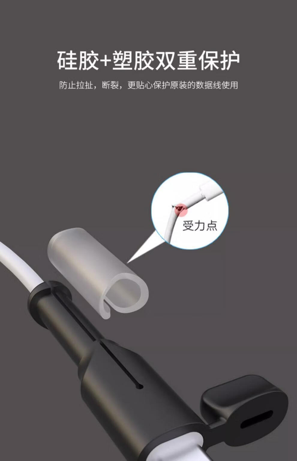 MPPMCK充电器保护套防断头简约苹果35w双口充电器保护套适用iPhone16pro快充线15软壳 35w双孔常规透黑壳【简约标志】电镀黑4件套
