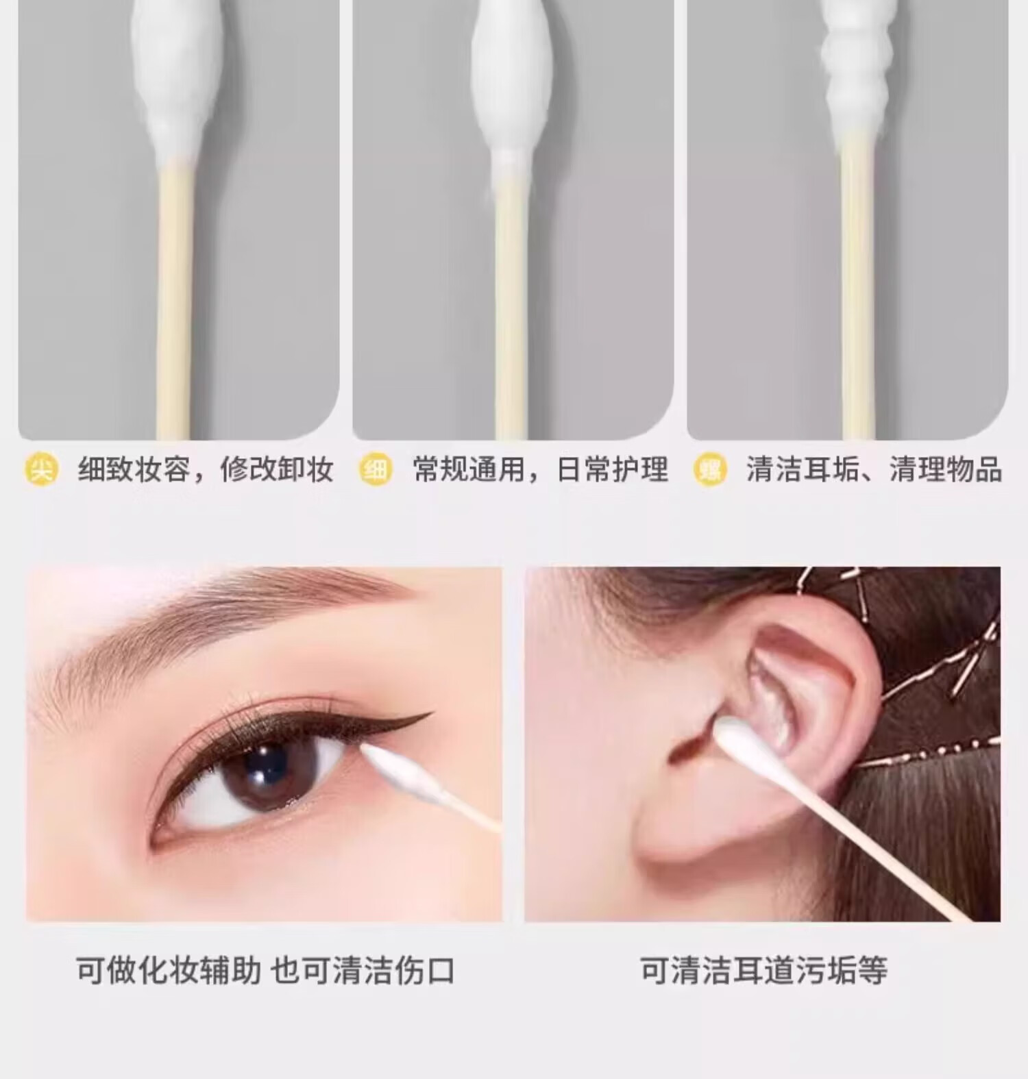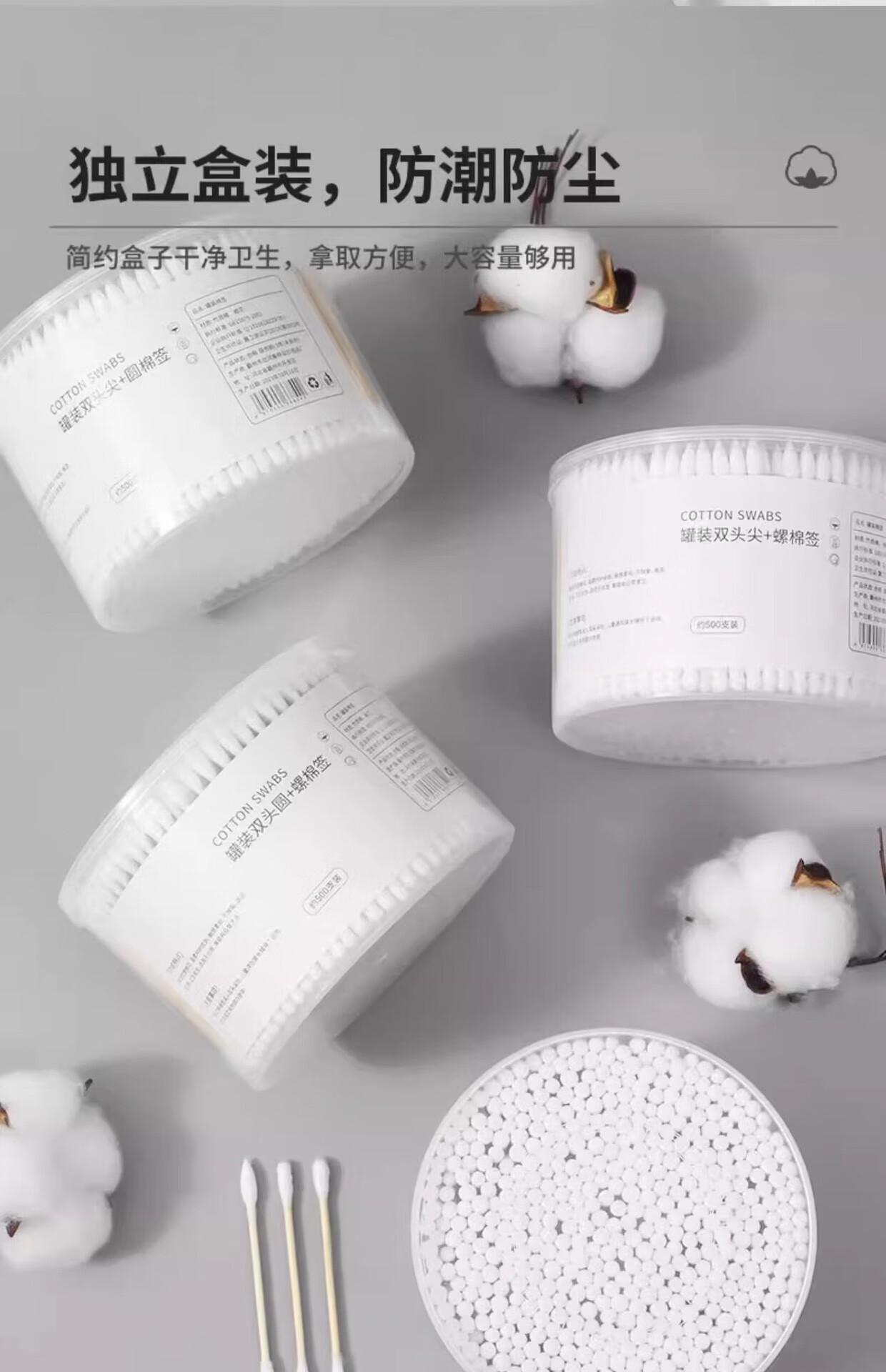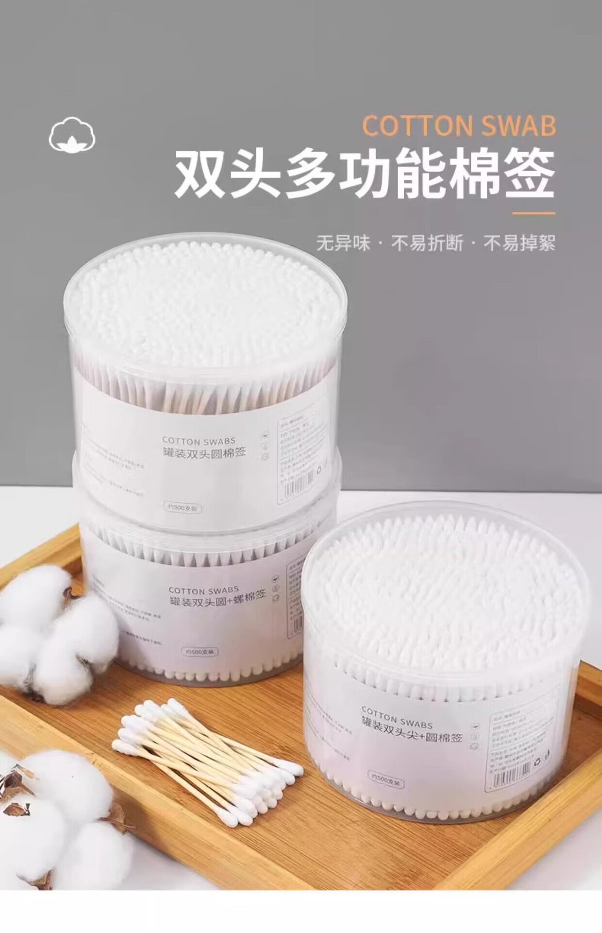 其他【优选】一次性双头棉签盒装掏耳朵棉签棉签卸妆清洁棉签家用 500支(圆+圆)