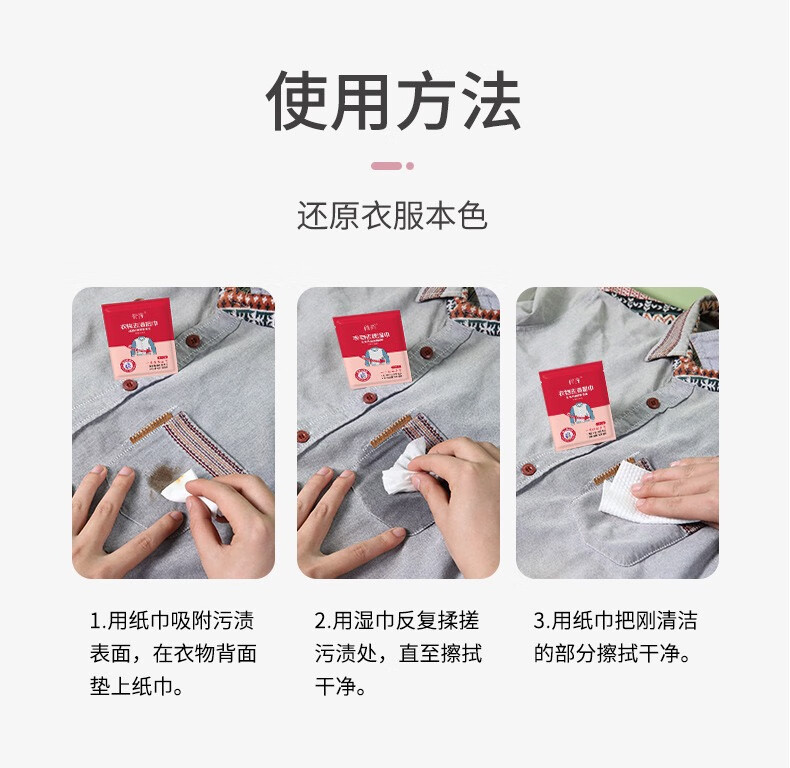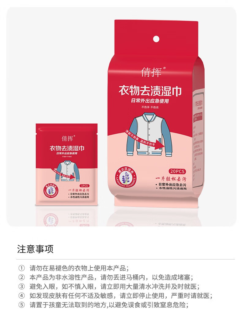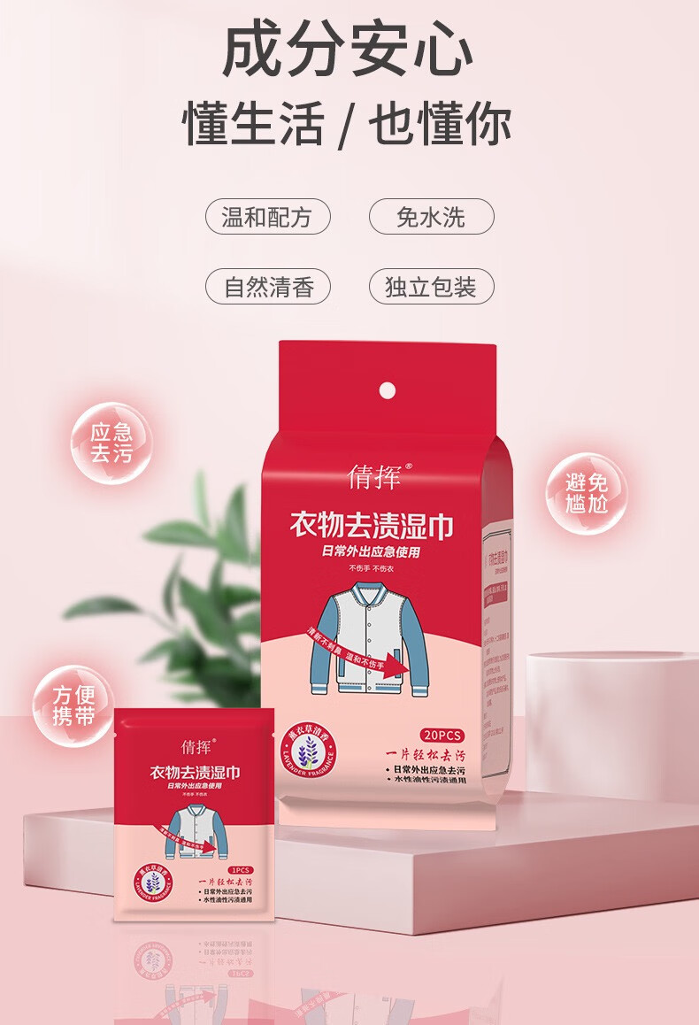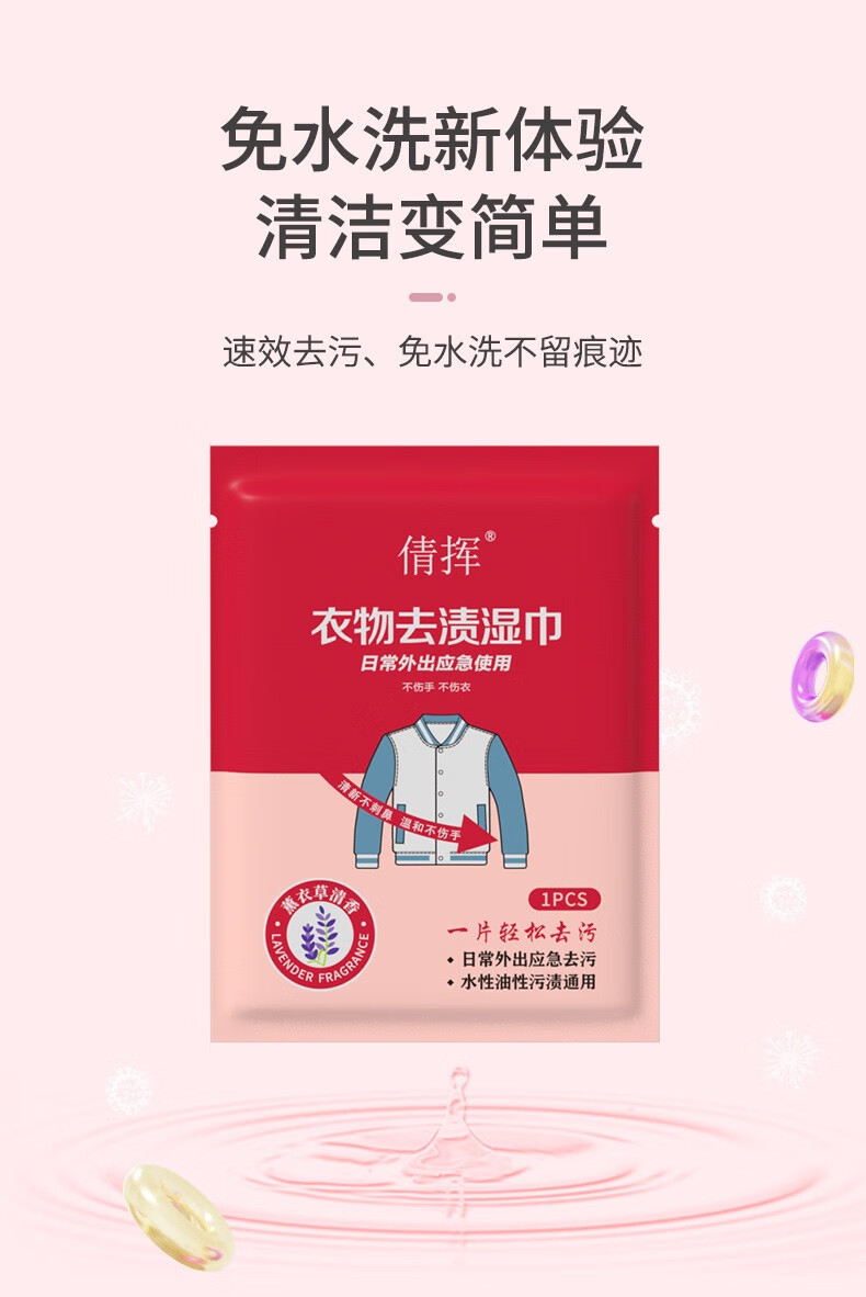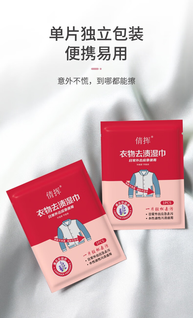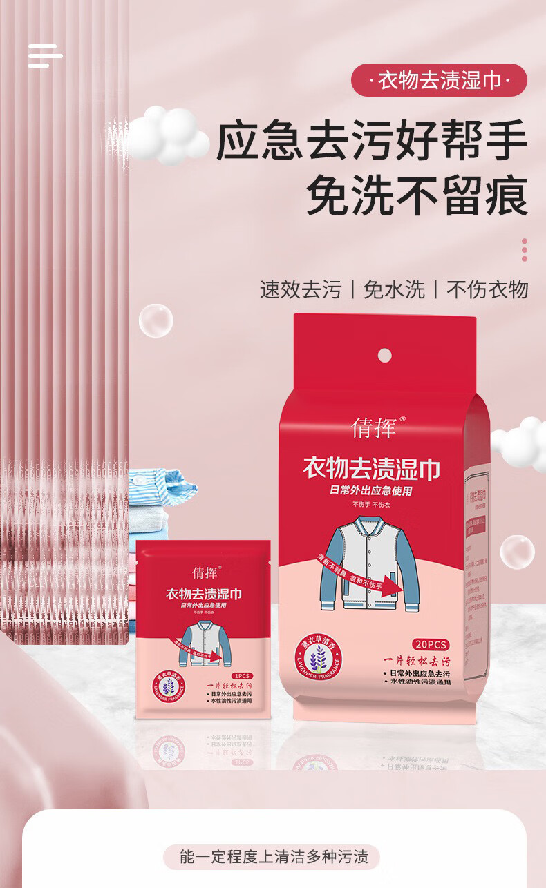 倩挥衣物去渍湿巾应急便携白衬衫专用温和免洗护衣去油擦鞋去污湿纸巾 两包【独立包装】共40片