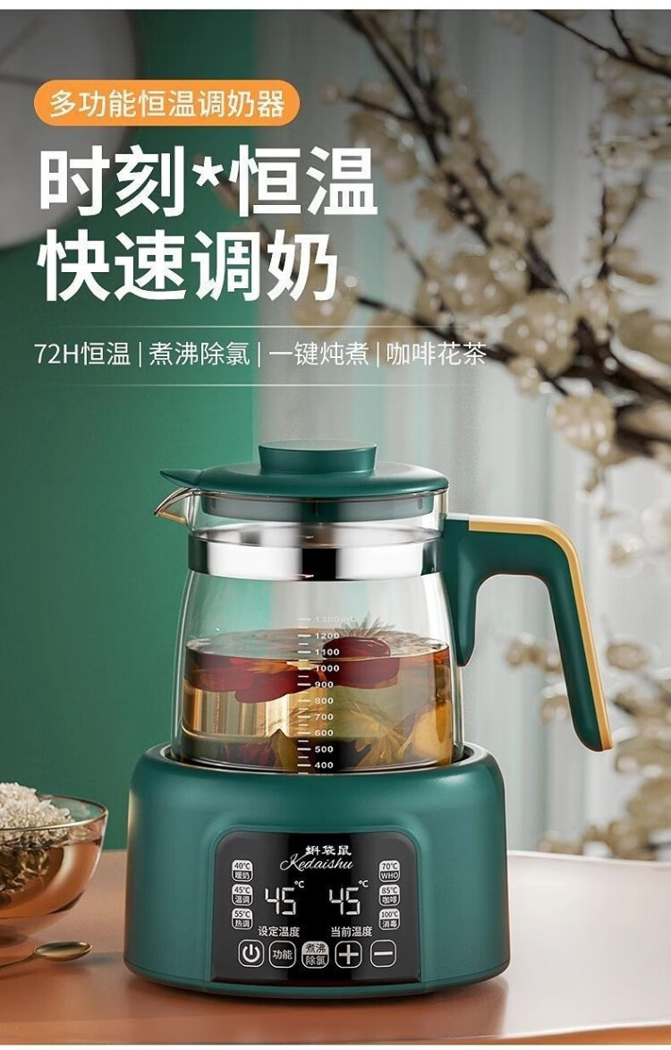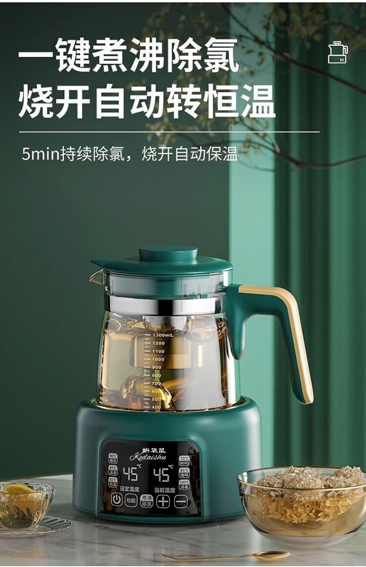 出口110v美国加拿大日本智能恒温电热水壶家用烧水壶养生壶小家电 1.3L 粉110v美日式插热水壶+茶漏
