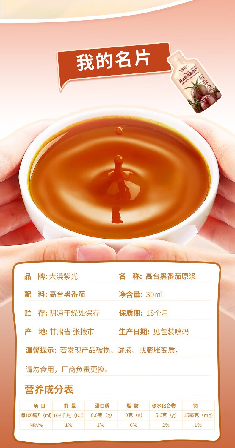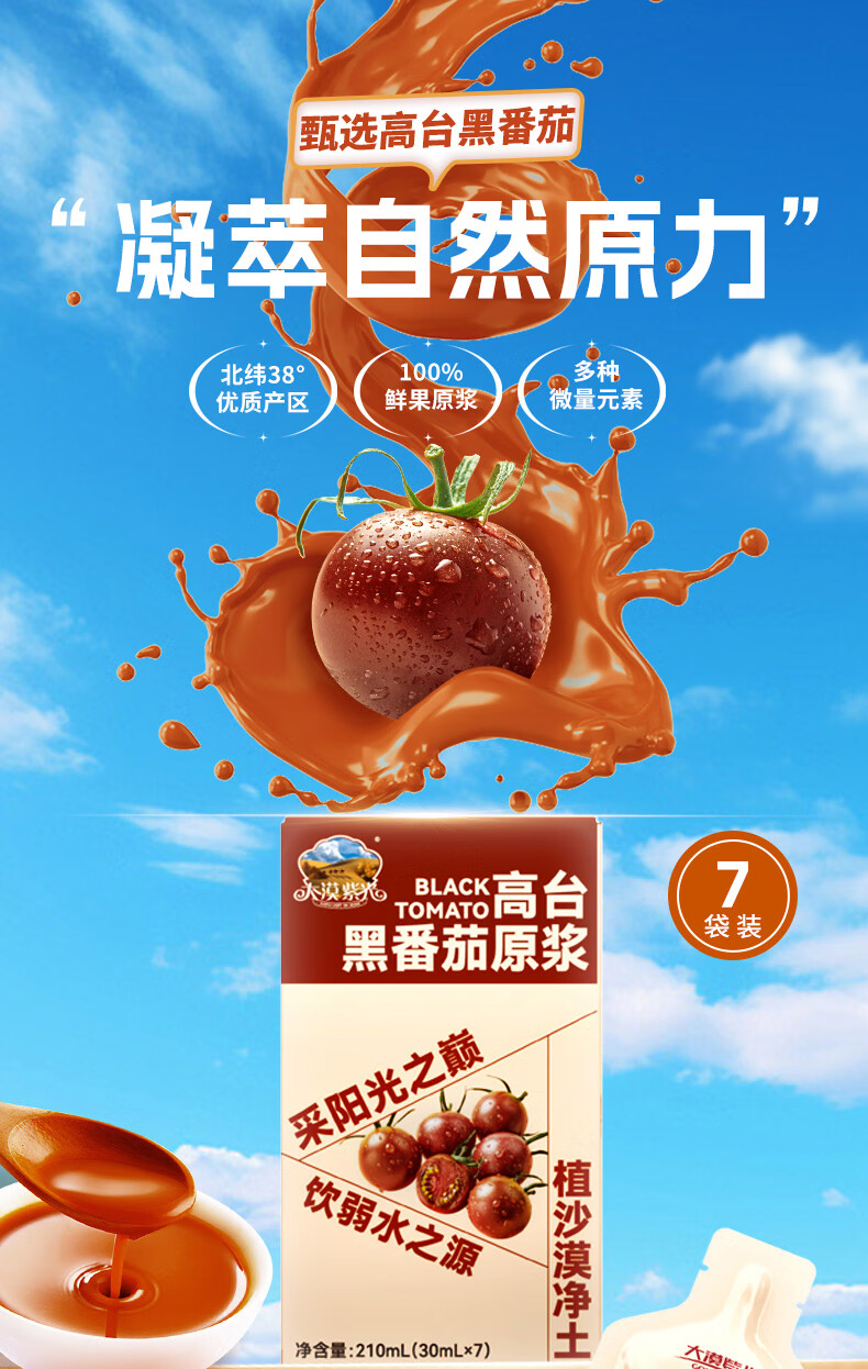 大漠紫光高台黑番茄原浆花青素叶酸减脂果蔬汁饮料30ml×7袋/盒 【2盒特惠】共14袋 - 含多种天然营养420ML