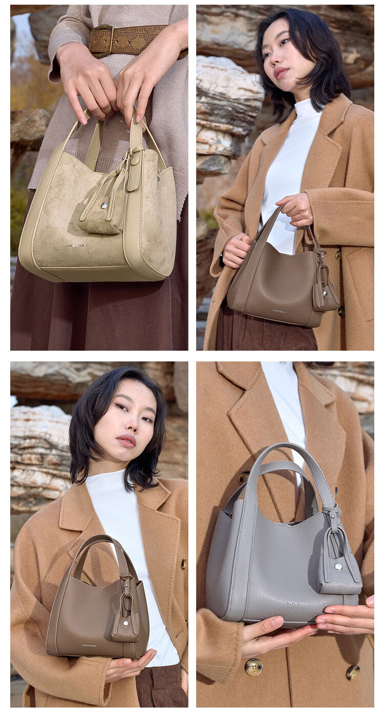 乐其塞文菜篮子大容量女包斜挎单肩手提腋下通勤新款新年礼物送女友 77551 焦木咖(PU革款)