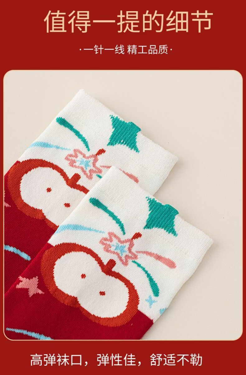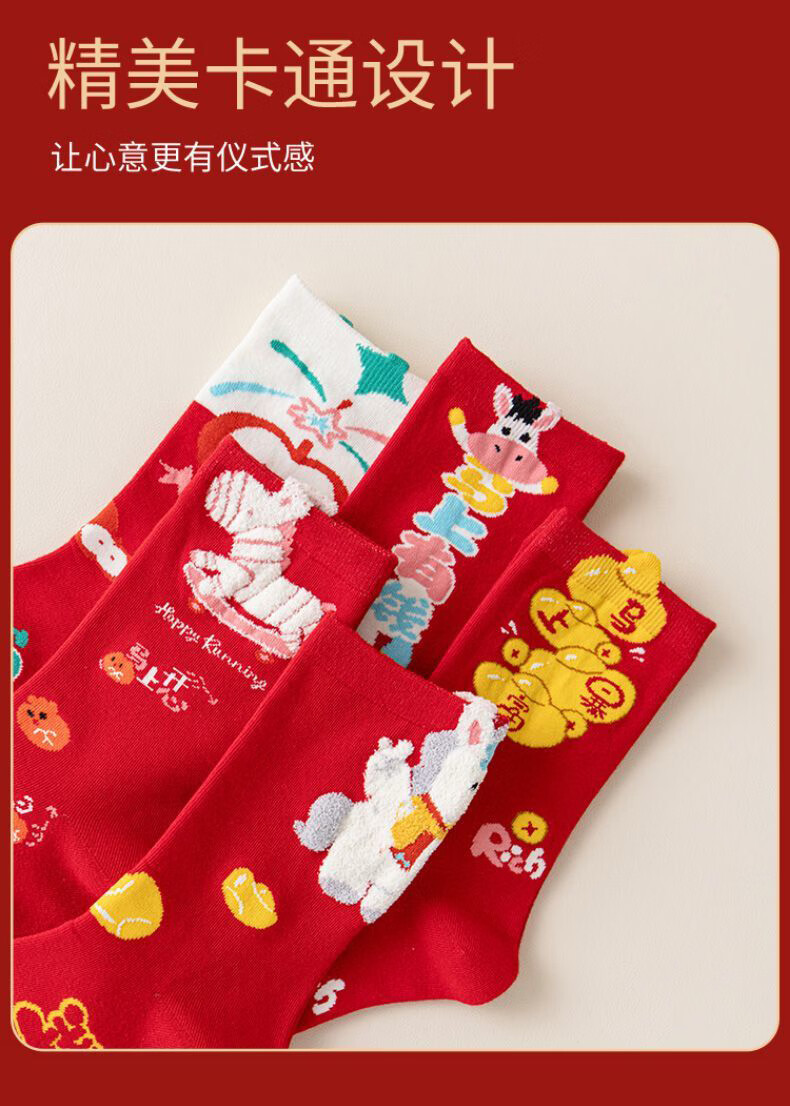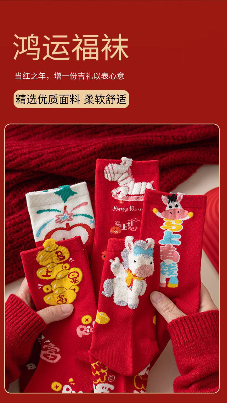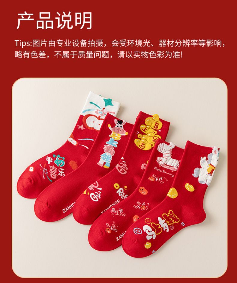 小棉工本命年红袜子女马年卡通大红色喜庆袜中筒袜新婚一对袜子新年礼物 每双1块多】五色各二【共10双】 均码 小棉工 10A抑菌/高弹透气/抗起球