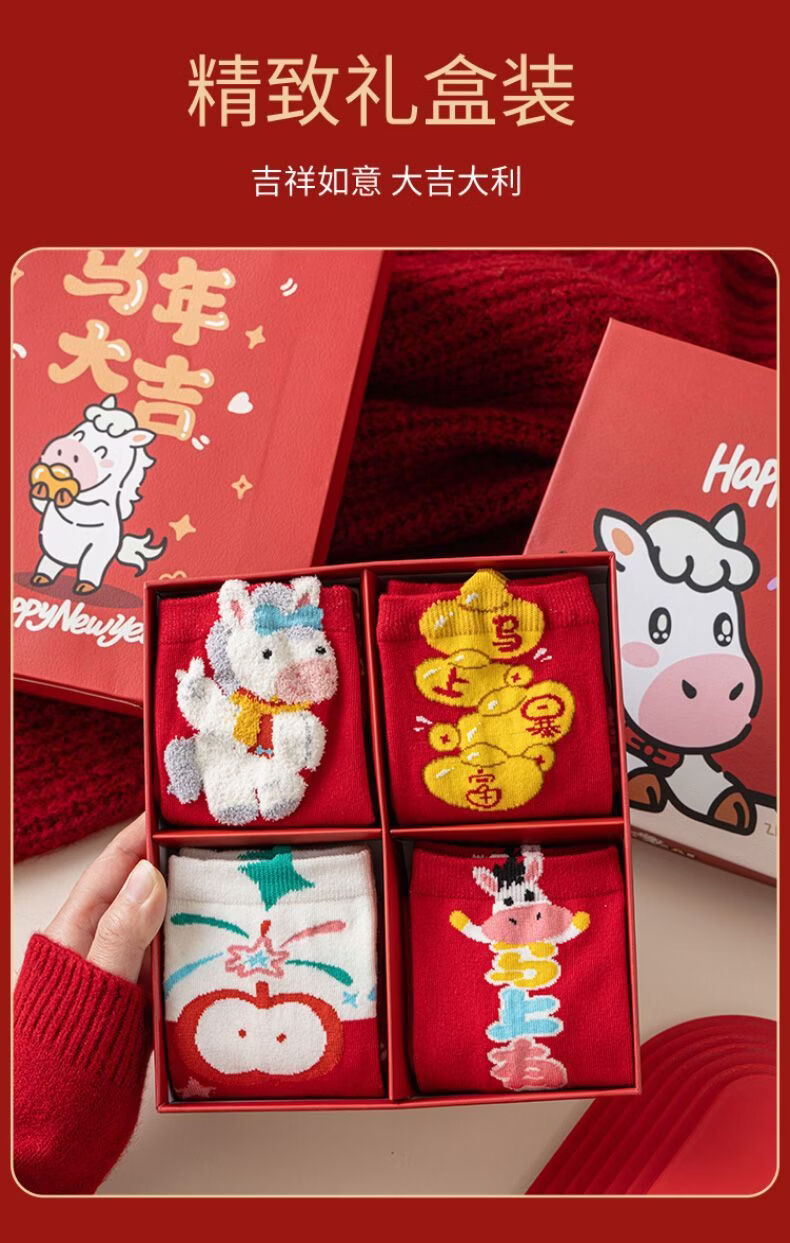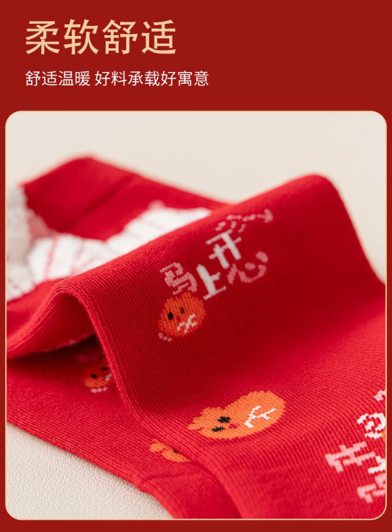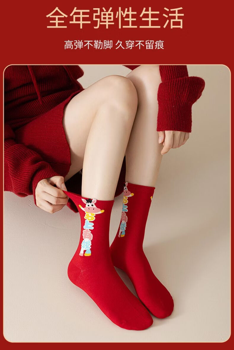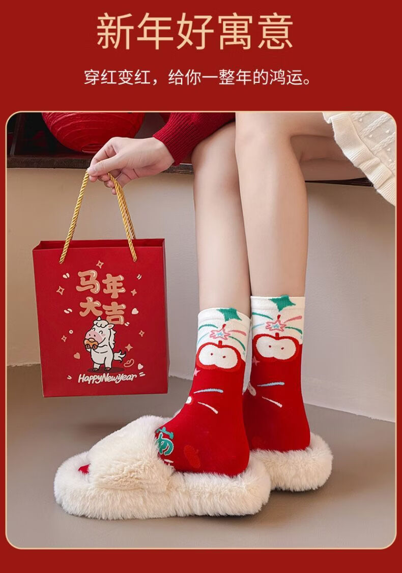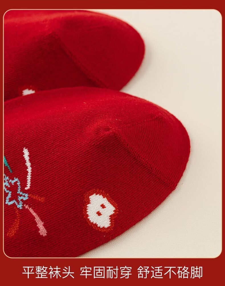 小棉工本命年红袜子女马年卡通大红色喜庆袜中筒袜新婚一对袜子新年礼物 每双1块多】五色各二【共10双】 均码 小棉工 10A抑菌/高弹透气/抗起球
